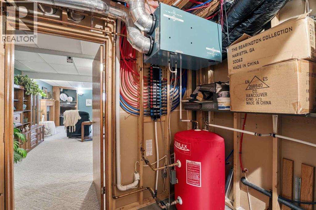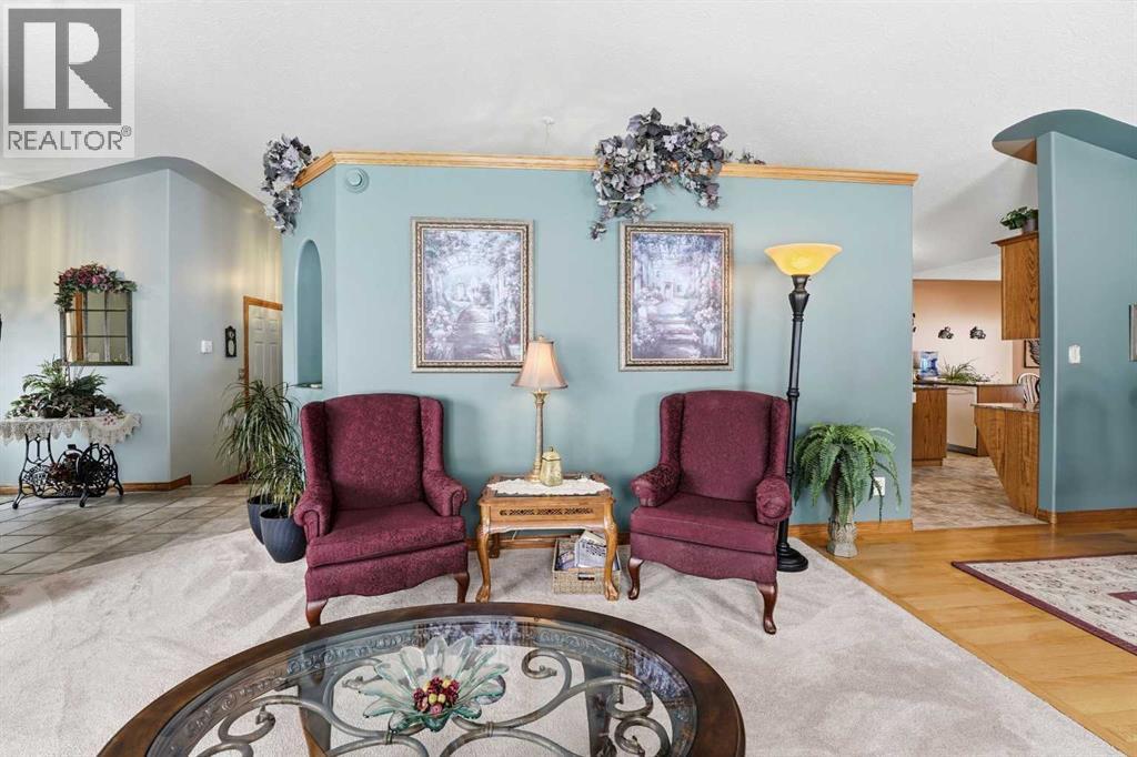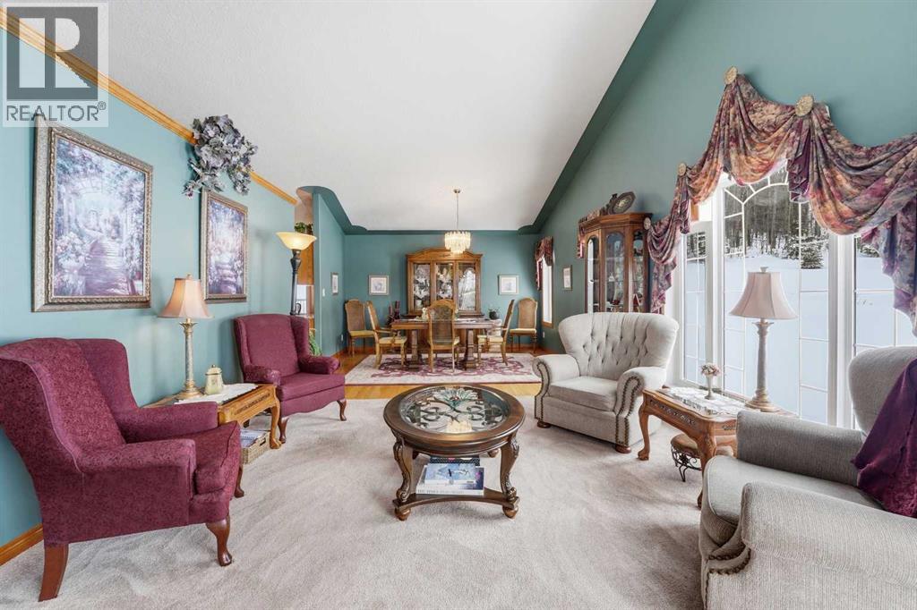 Stunning, Meticulously Maintained Acreage Award-Winning Landscaping & Breathtaking River Valley Views – Only 7 Minutes from Red Deer!Your Private Sanctuary Awaits: Sip morning coffee on the charming front veranda or unwind on the expansive two-tiered deck overlooking the majestic Red Deer River Valley. Every inch of this property is meticulously maintained and picture-perfect—your own private park! Luxury Meets Comfort:Soaring vaulted ceilings in living & dining areasChef-inspired kitchen with granite countertops & ample workspaceMain-floor laundry for ultimate convenienceSpacious primary suite with 3-piece ensuite + second generous bedroomZone-controlled in-floor heating keeps you cozy year-round Entertainment & Flexibility:Fully developed basement with massive family/games room & fireplaceAdditional large bedroom + stylish 3-piece bathVersatile storage room easily transformed into an extra bedroom Lifestyle, Convenience & Privacy:Tranquil, luxurious, and just minutes from Red DeerPerfect blend of space, beauty & accessibilityA home where every day feels like a retreatDon’t Miss Your Chance – Acreage Living at Its Absolute Finest! (id:63190)