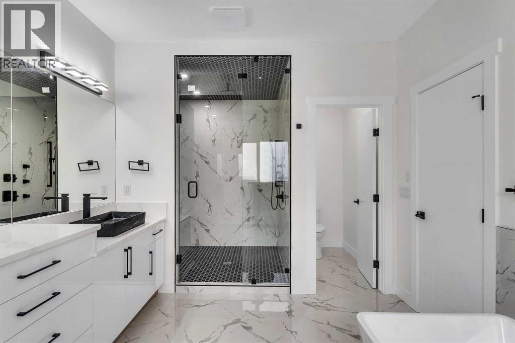NEWLY BUILT!! 2-BED LEGAL BASEMENT SUITE!! SEPARATE ENTRANCE!! SEPARATE LAUNDRY!! OVER 4550 SQFT OF LIVING SPACE!! 7 BEDROOMS + 5 FULL BATHS!! TRIPLE ATTACHED GARAGE!! MAIN FLOOR BEDROOM & FULL BATH!! Step into this stunning new home offering luxury, space, and functionality in every corner. The main floor welcomes you with a spacious living area featuring a cozy fireplace, a beautiful kitchen with a large island, built-in appliances, and an additional spice kitchen for extra convenience. Abundant cabinetry and access to the backyard deck make it perfect for everyday living and entertaining. A main floor bedroom with a 3-piece bath adds flexibility as it can be used as office as well. Upstairs features 4 BEDROOMS and 3 FULL BATHS, including a PRIMARY BEDROOM with a 5PC ENSUITE BATH and walk-in closet. Two bedrooms share a stylish Jack & Jill 5PC BATH, while the fourth bedroom enjoys 4PC BATH. A bonus family room and open-to-below layout complete the upper level, along with laundry on the same floor for convenience. The LEGAL SUITE BASEMENT offers a SEPARATE ENTRANCE, 2 bedrooms, a 4-piece bath, a full kitchen, and a spacious rec room with ample storage, Laundry as well. Located close to Chestermere Lake, the Canal, schools, and shopping, this home combines comfort, style, and practicality in one incredible package. DON’T MISS THIS OPPORTUNITY TO OWN A HOME WITH LUXURY, SPACE, AND INCOME POTENTIAL! (id:63190)