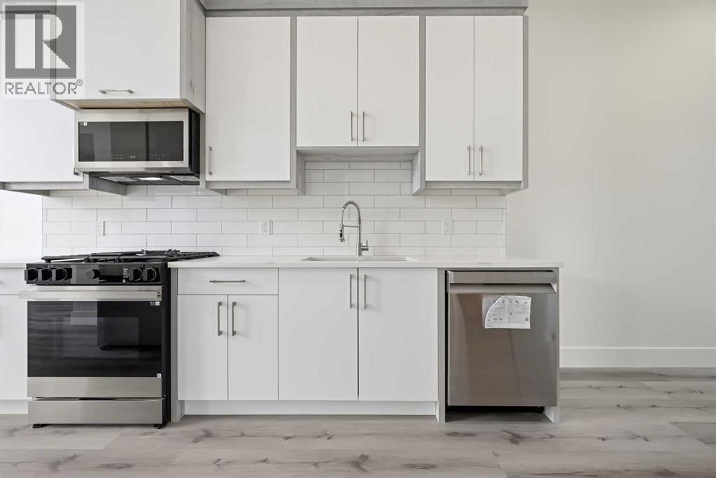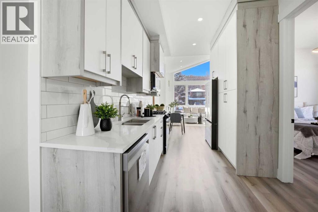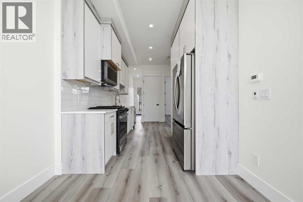 An excellent opportunity to own a newly built, architecturally refined residence in the heart of Bowness, one of Calgary’s most charming and sought-after communities.Thoughtfully designed with both elegance and versatility in mind, this semi-detached home seamlessly blends elevated modern living with outstanding income potential through its full two-bedroom basement legal suite. The main level is defined by dramatic sloped ceilings and an abundance of natural light, creating an airy, sophisticated atmosphere. At the heart of the home, a beautifully curated kitchen showcases premium appliances, sleek contemporary finishes, and refined detailing, a space perfectly suited for quiet mornings and effortless entertaining alike.Two well-appointed bedrooms and a stylish full bath and a powder room complete the main floor, offering comfort and functionality without compromising design.The full 2 bedroom walkup lower-level legal suite continues the home’s elevated aesthetic, featuring rare high ceilings, a fireplace, a bright and thoughtfully designed layout, and a private patio that enhances its strong rental appeal. Whether for extended family, guests, or additional income, the flexibility is exceptional.Outside, a private backyard and detached double garage provide everyday convenience, while the location offers immediate access to river pathways, parks, and outdoor recreation. Just minutes from Canada Olympic Park, with quick connections to downtown Calgary and the mountains, this address delivers an unbeatable lifestyle balance.A rare combination of architectural design, income versatility, and location. This is modern living redefined. (id:63190)