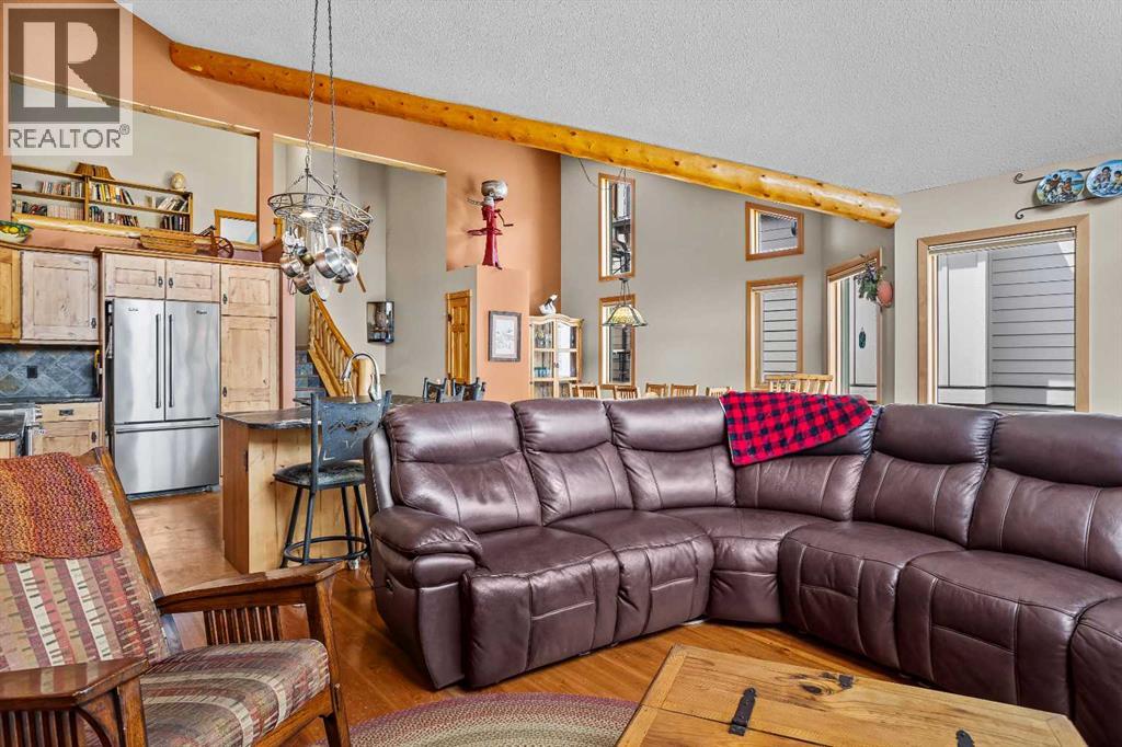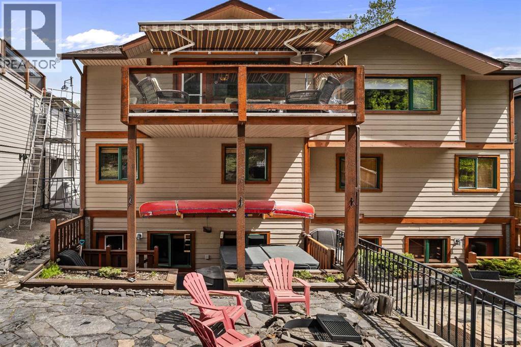 This 3 bed, 3-bath mountain retreat offers over 2,400 sq ft of beautifully designed living space, ideal for full-time living or as a luxurious getaway. Step into the main floor where soaring vaulted ceilings and expansive windows flood the open-concept living area with natural light. The gourmet kitchen is a chef’s dream, featuring stainless steel appliances, leathered granite countertops, abundant cabinetry, and a seamless flow into the dining and living spaces. A striking stone fireplace anchors the living room, creating a warm and inviting atmosphere, while the spacious deck invites you to soak in unobstructed mountain views. The private primary suite occupies its own floor—a true sanctuary complete with a walk-in closet, private deck, and a spa-inspired 4-piece ensuite. Enjoy quartz countertops, double vanities, and a large walk-in shower in this peaceful retreat. The second level includes two generous bedrooms, a full 4-piece bath, and a convenient laundry area. The lower level can be used as an illegal suite or additional living space for guests or multi-generational living, with its separate entrance, cozy living area, Murphy bed, bathroom, storage, and a handy countertop range. Step outside to a private backyard oasis with a hot tub, fire pit, and plenty of seating for entertaining under the stars. Whether you're enjoying a quiet evening by the fire or hosting friends on the deck with panoramic views, this home offers the perfect blend of comfort, luxury, and mountain lifestyle. (id:63190)