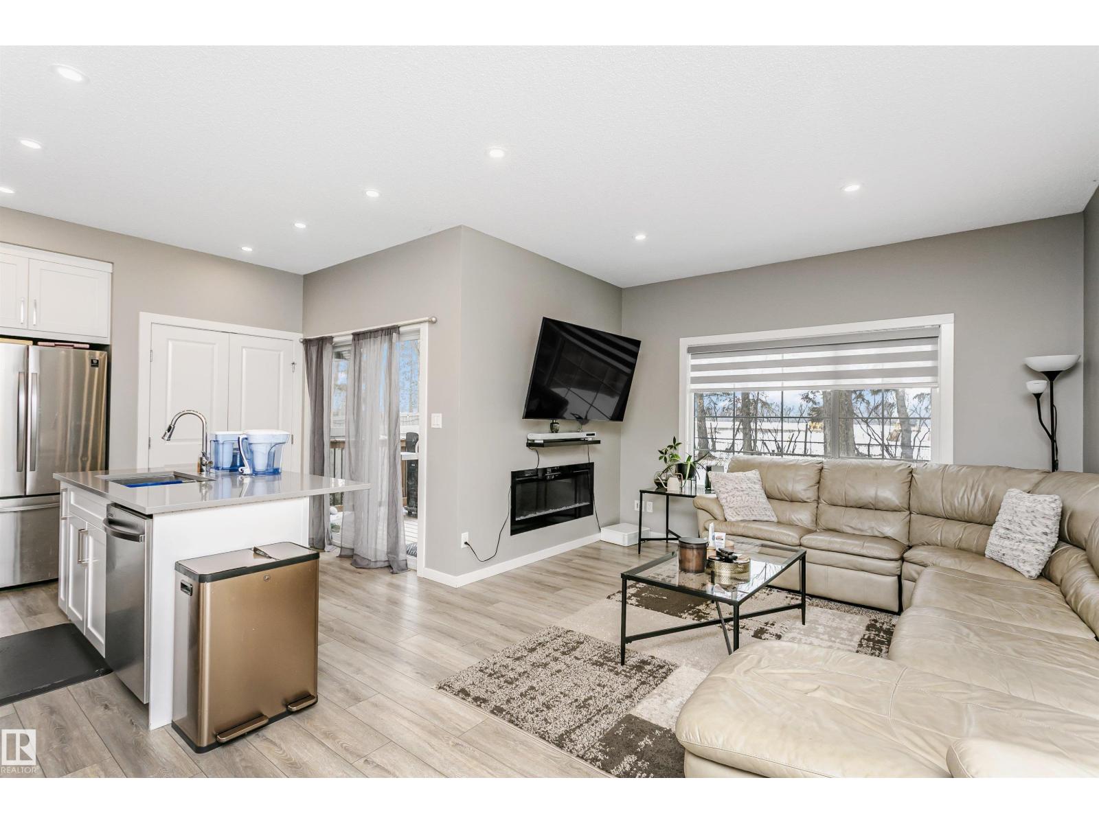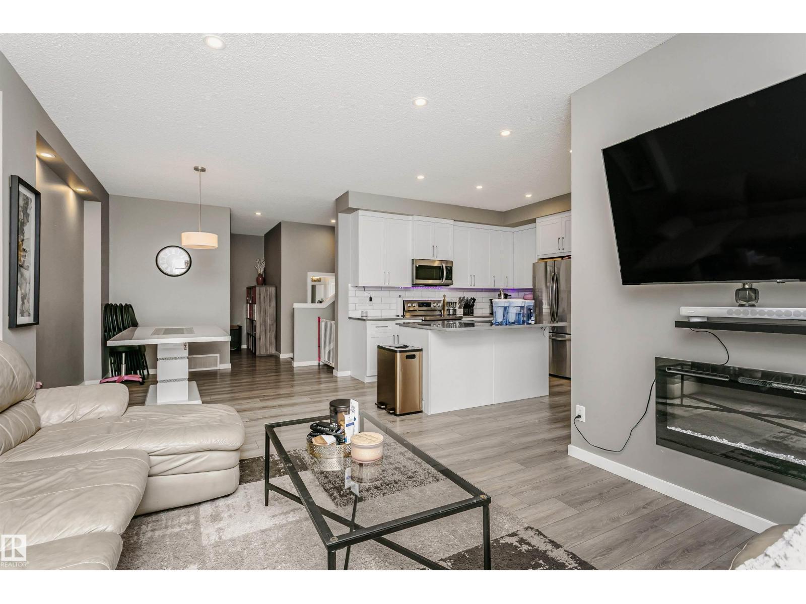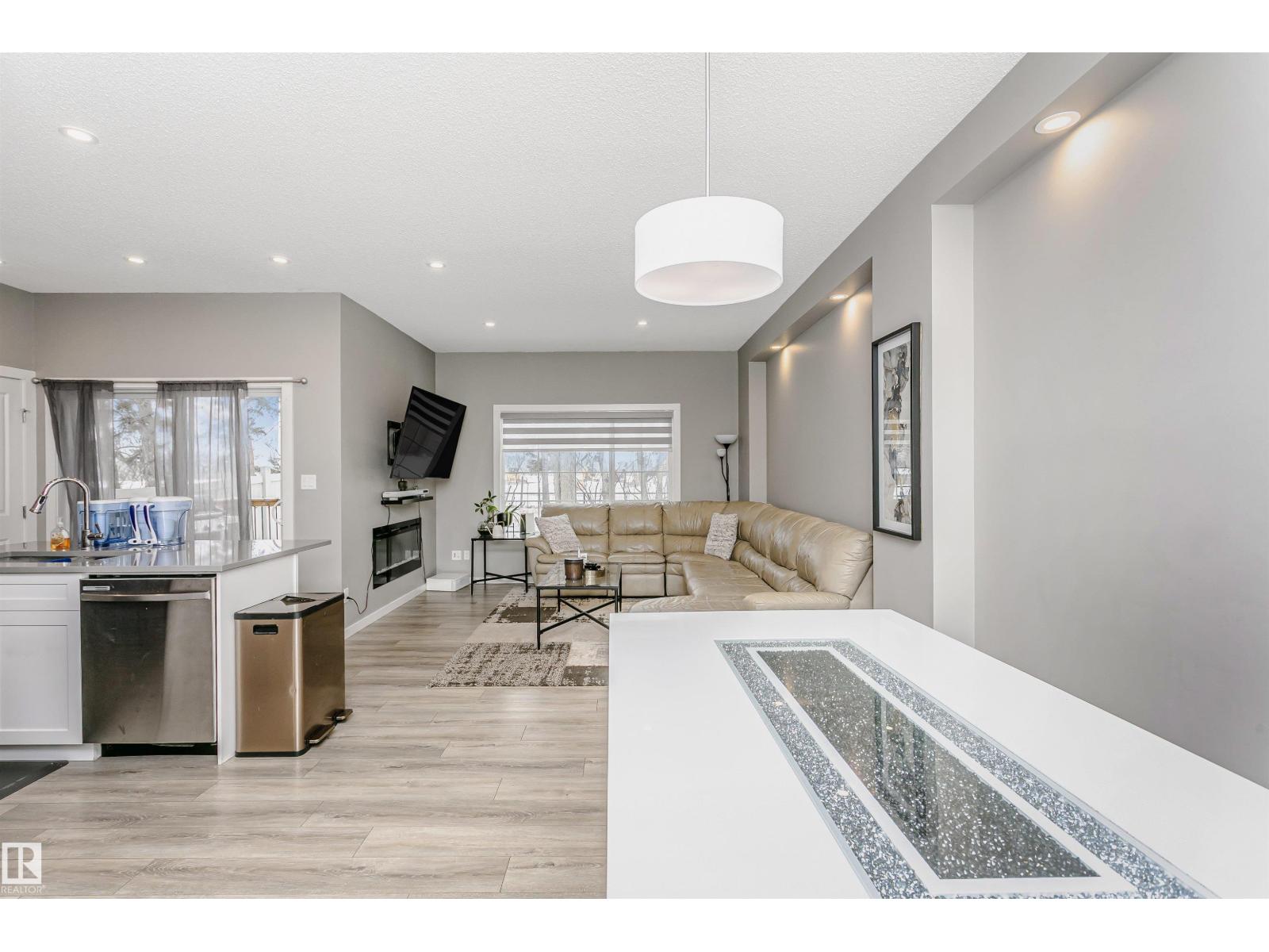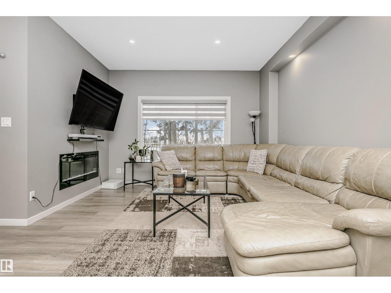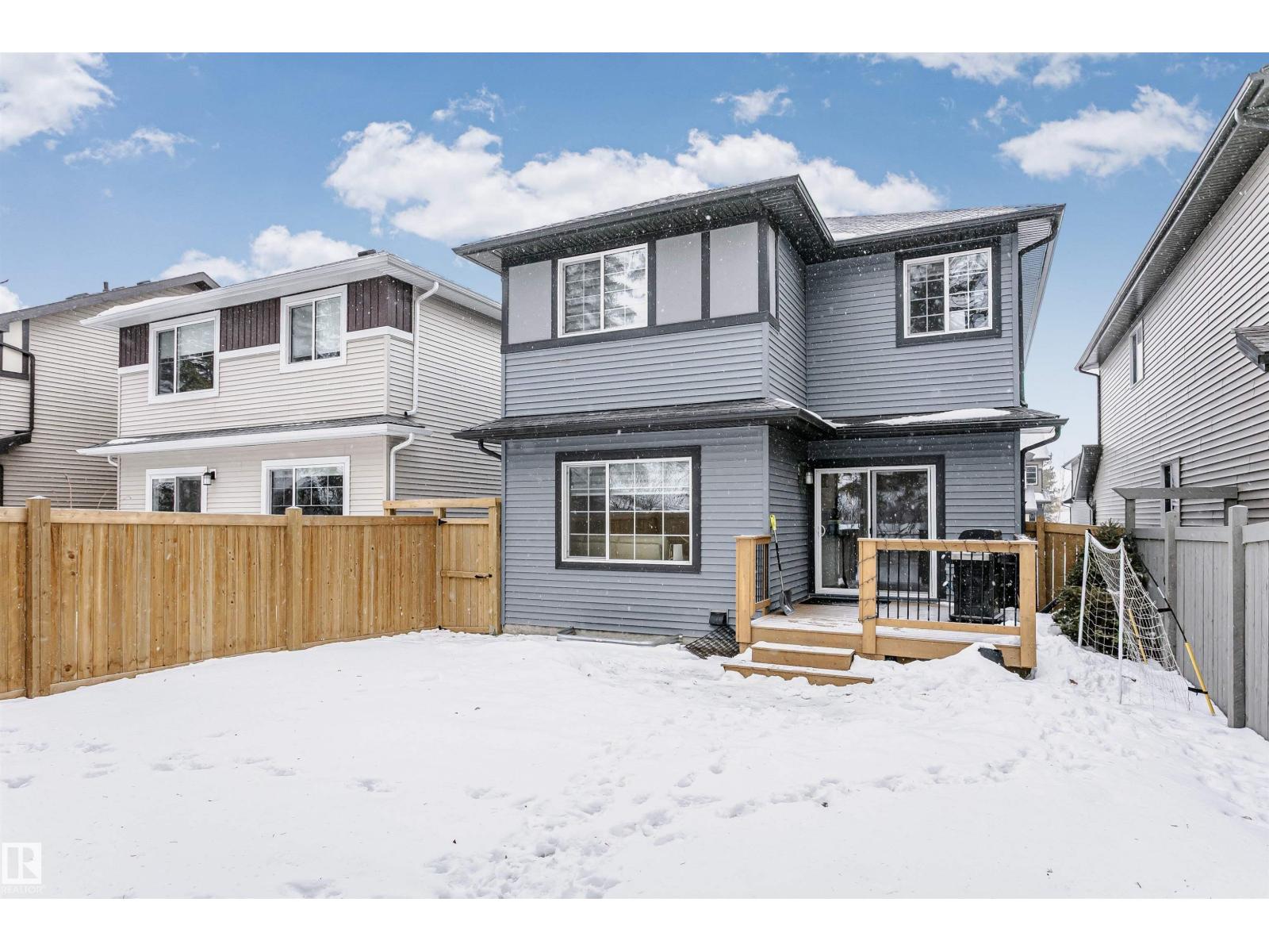 Welcome to this desirable community of Chappelle in SW Edmonton. This a charming 2-storey, 3 bedrooms, 2.5 bathroom home, which features a bright & open layout. On the main floor, designed for comfortable living & entertaining, you will find a kitchen w/ tall cabinets and quartz countertops, large island, pantry & S.S appliances. A good-sized dining room can fit 6-8 people table. The great room at the rear of the house has an electric linear fireplace & backs West onto a serene tree-line. It gives you a natural light & privacy abound. Upstairs you'll find a central bonus room separating the owners suite from the additional two bedrooms, main bathroom, & a laundry room. Primary bedroom has a large walk in closet, and ensuite with two sinks and walk-in shower! 9' ceilings on the main floor, triple pane windows, LED pot lights. Step outside to enjoy your fenced backyard, neighboring w/ a green space, and a deck, which is perfect for outdoor living. Double attached garage. Close to shopping, parks & schools (id:63190)