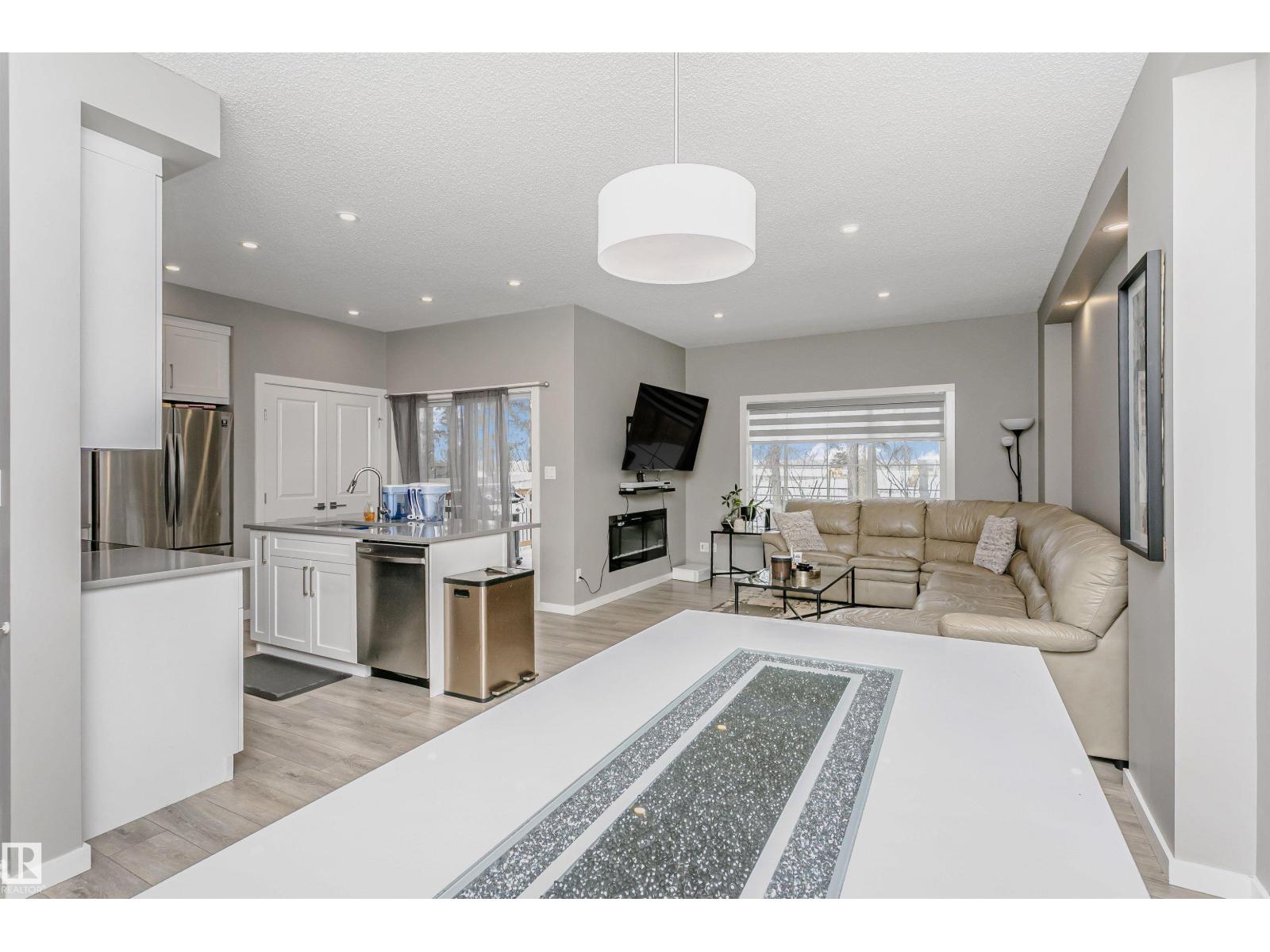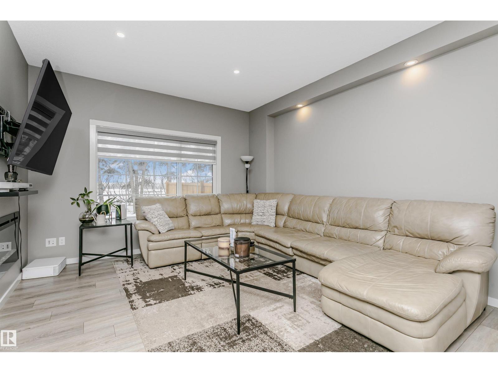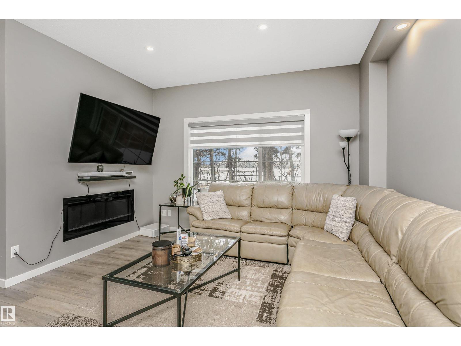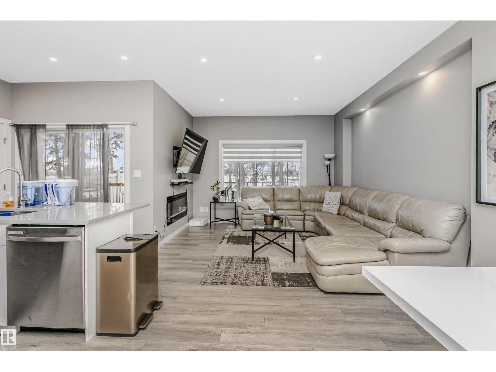 Welcome to this desirable community of Chappelle in SW Edmonton. This a charming 2-storey, 3 bedrooms, 2.5 bathroom home, which features a bright & open layout. On the main floor, designed for comfortable living & entertaining, you will find a kitchen w/ tall cabinets and quartz countertops, large island, pantry & S.S appliances. A good-sized dining room can fit 6-8 people table. The great room at the rear of the house has an electric linear fireplace & backs West onto a serene tree-line. It gives you a natural light & privacy abound. Upstairs you'll find a central bonus room separating the owners suite from the additional two bedrooms, main bathroom, & a laundry room. Primary bedroom has a large walk in closet, and ensuite with two sinks and walk-in shower! 9' ceilings on the main floor, triple pane windows, LED pot lights. Step outside to enjoy your fenced backyard, neighboring w/ a green space, and a deck, which is perfect for outdoor living. Double attached garage. Close to shopping, parks & schools (id:63190)