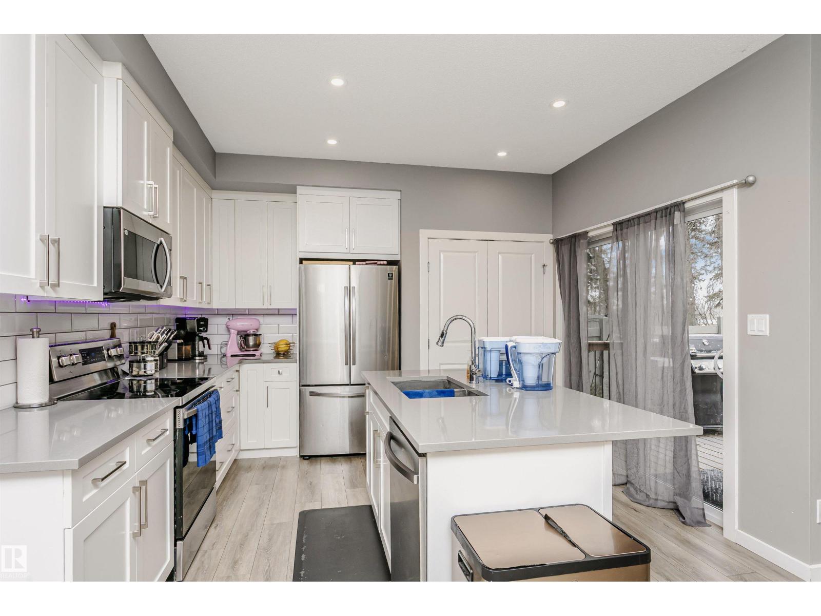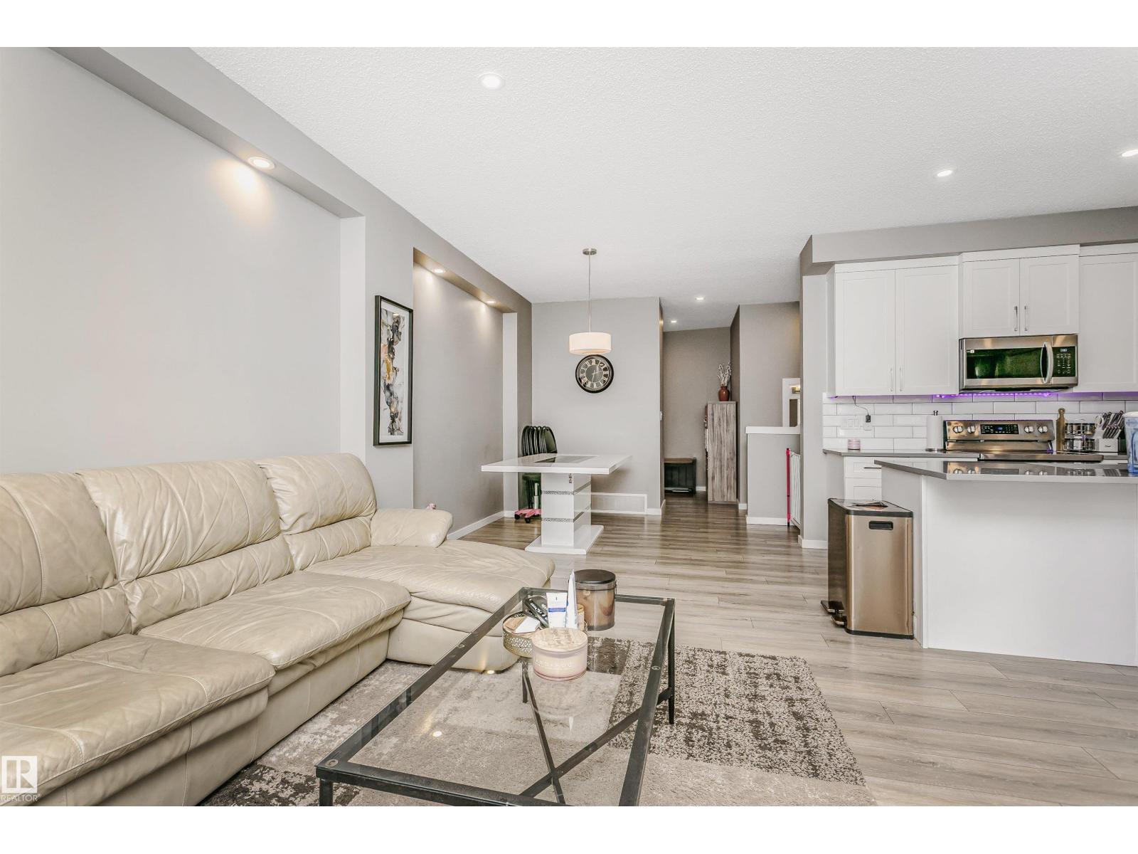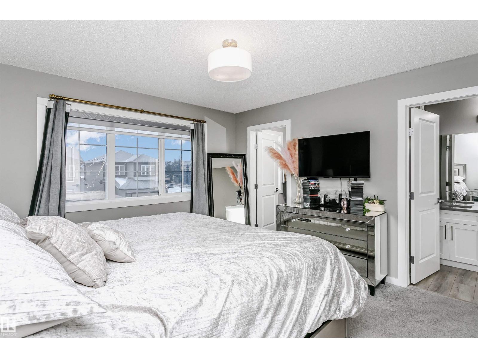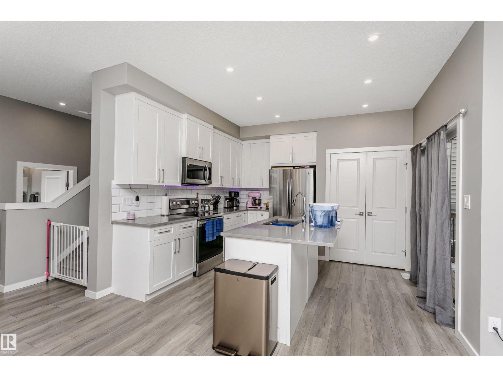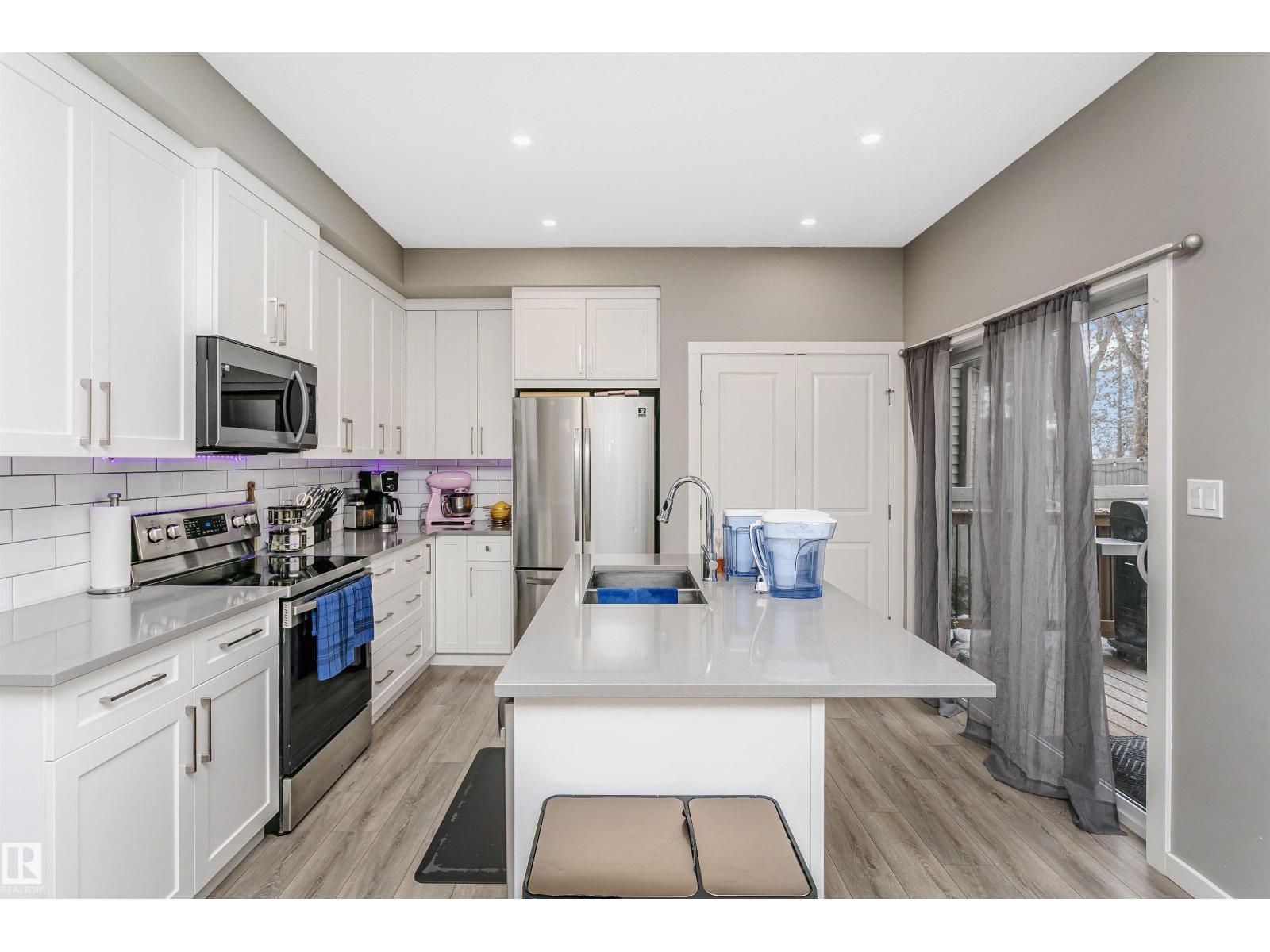 Welcome to this desirable community of Chappelle in SW Edmonton. This a charming 2-storey, 3 bedrooms, 2.5 bathroom home, which features a bright & open layout. On the main floor, designed for comfortable living & entertaining, you will find a kitchen w/ tall cabinets and quartz countertops, large island, pantry & S.S appliances. A good-sized dining room can fit 6-8 people table. The great room at the rear of the house has an electric linear fireplace & backs West onto a serene tree-line. It gives you a natural light & privacy abound. Upstairs you'll find a central bonus room separating the owners suite from the additional two bedrooms, main bathroom, & a laundry room. Primary bedroom has a large walk in closet, and ensuite with two sinks and walk-in shower! 9' ceilings on the main floor, triple pane windows, LED pot lights. Step outside to enjoy your fenced backyard, neighboring w/ a green space, and a deck, which is perfect for outdoor living. Double attached garage. Close to shopping, parks & schools (id:63190)