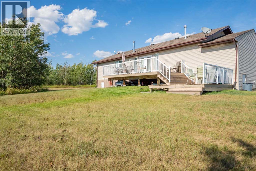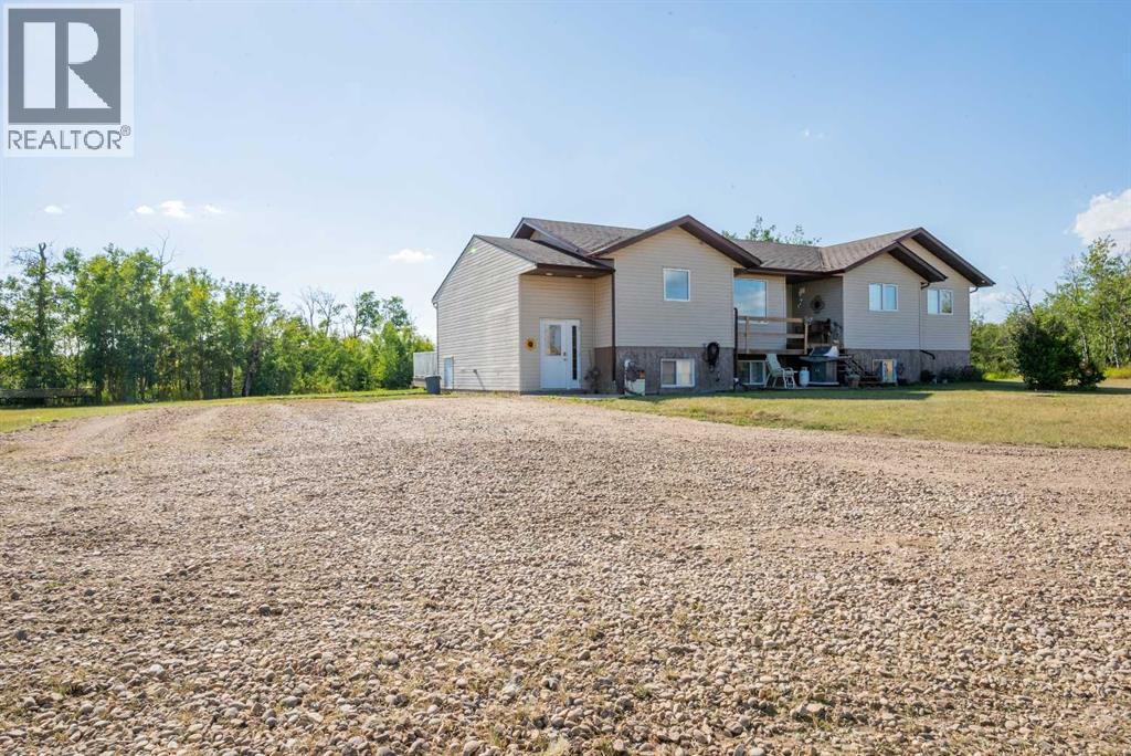 Nestled on 27.87 acres, this spacious home offers the perfect blend of comfort, functionality, and country living. With 7 bedrooms and 3.5 bathrooms, there’s plenty of room for family and guests alike. The main floor showcases a bright open-concept layout with large windows that fill the home with natural light. At the heart of it all is a generous kitchen featuring an island, pantry, and eat-up bar—perfect for both everyday living and entertaining. Just off the living room, step out onto the deck and soak in the peace and quiet of your private acreage.The primary suite is a true retreat with a 5-piece ensuite and walk-in closet. Convenient main floor laundry, a spacious entryway, and an additional storage room—ideal for freezers or an extra fridge—add to the home’s practicality.The fully finished basement expands your living space with a welcoming family room and cozy wood fireplace, 4 additional bedrooms, and a full bathroom—making it ideal for children, guests, or home offices. A dedicated cold room provides excellent storage for canning, produce, and preserves, while a wood room with exterior access makes refilling the fireplace simple and efficient.Outdoors, you’ll find a large gravel driveway with plenty of parking, a garden spot, and multiple sheds for storage or hobbies. Whether you’re looking for space for your family, a small hobby farm, or simply more privacy, this acreage truly has it all. (id:63190)