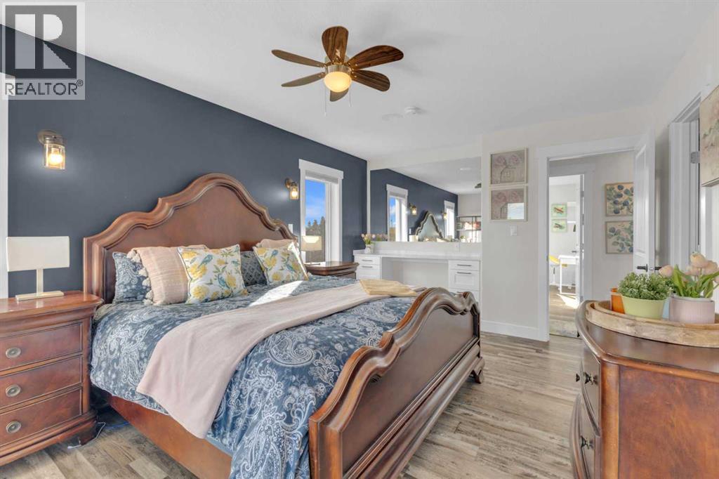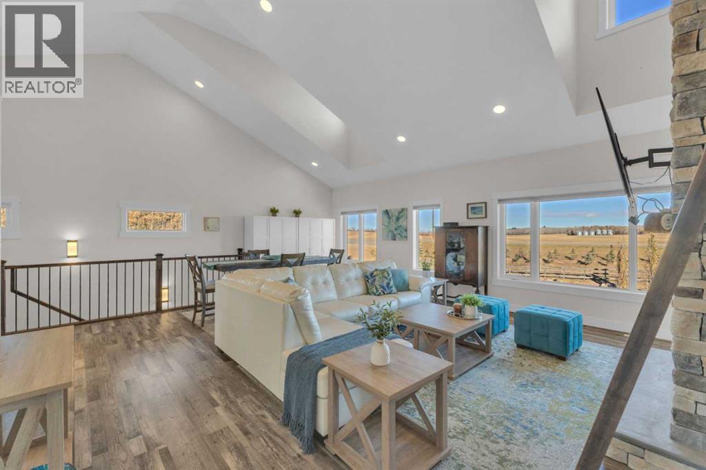 Spring is finally in the air, and with it comes a fresh opportunity to claim something truly rare. Properties like this do not come up often. Three private acres just minutes from town, a dream shop that feels more like a sanctuary, and a home that blends country warmth with elevated design. It is the kind of place people wait for. Just north of Sylvan Lake, this property gives you the rare mix of freedom, space, and connection. The waters edge is a short stroll , downtown is just 7 minutes away and Red Deer is only 20, but it feels like a different world in Silver Springs.For anyone who lights up at the idea of a dream garage, this one’s something else. Heated by gas or the wood stove, with 13-foot ceilings, drive-through doors, a half bath and nearly 1,300 square feet to play with, it’s more than a garage. It’s a shop, a retreat, a space to build, fix, create, workout or just hang out.Upstairs, the home is a pinch of country, but heavy on luxury. Think wide-open spaces, vaulted ceilings, skylit dormers, and a show-stopping stone fireplace. The kitchen pops with white cabinetry, quartz waterfall counters and sleek black stainless appliances. From the main living area, step onto the composite deck and breathe in the Southwestern view of treetops, big skies, and glimpses of the lake.The primary suite is its own little hideaway, complete with a walk-in closet, makeup desk, four-piece ensuite, and a private patio perfect for morning coffee or an evening nightcap. Two more bright bedrooms and a stylish main bath with stand-alone tub and separate shower offer comfort for kids or guests. If the adults all have their space, then the upper loft is the ultimate kid zone, ideal for a playroom, homework space or sleepovers.Outside, everything has its place. Three matching sheds, RV parking with power, a firepit by the seasonal pond, and mature spruce trees that offer shelter and privacy, but could open up for even more of that lake view.This home is loaded with thoughtful extras: central A/C, water softener, central vac, outdoor shower, Sonos system, smart lighting, plugs and thermostats, all the little things that make life smoother and more connected. A paved road leads you straight to the property, making every drive in feel like a breath of fresh air.Whether you're a young couple, a hands-on creator, or someone craving more sky and stillness, this home isn't just about square footage, it's about breathing room, balance, and the kind of place that sparks inspiration. (id:63190)