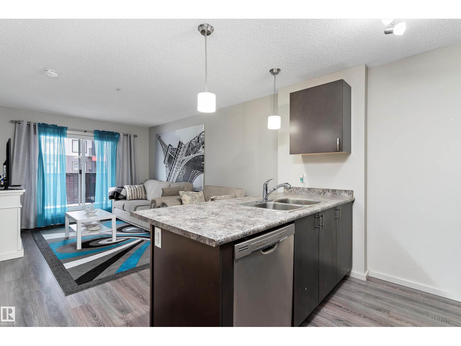 Why rent when you can own! Welcome to this lovely condo in Elements at Windermere. One bedroom plus a den and 2 full bathrooms. This home comes with SS appliances, laminate flooring, in-suite laundry, newer backsplash in kitchen, newer bathroom flooring, balcony and a titled parking stall. The primary bedroom includes a walk-through closet and 4 piece ensuite. Elements at Windermere is located walking distance to all amenities, including grocery stores, schools, parks, shopping and theatres. Great access to Anthony Henday as well! Pet friendly building! (id:63190)