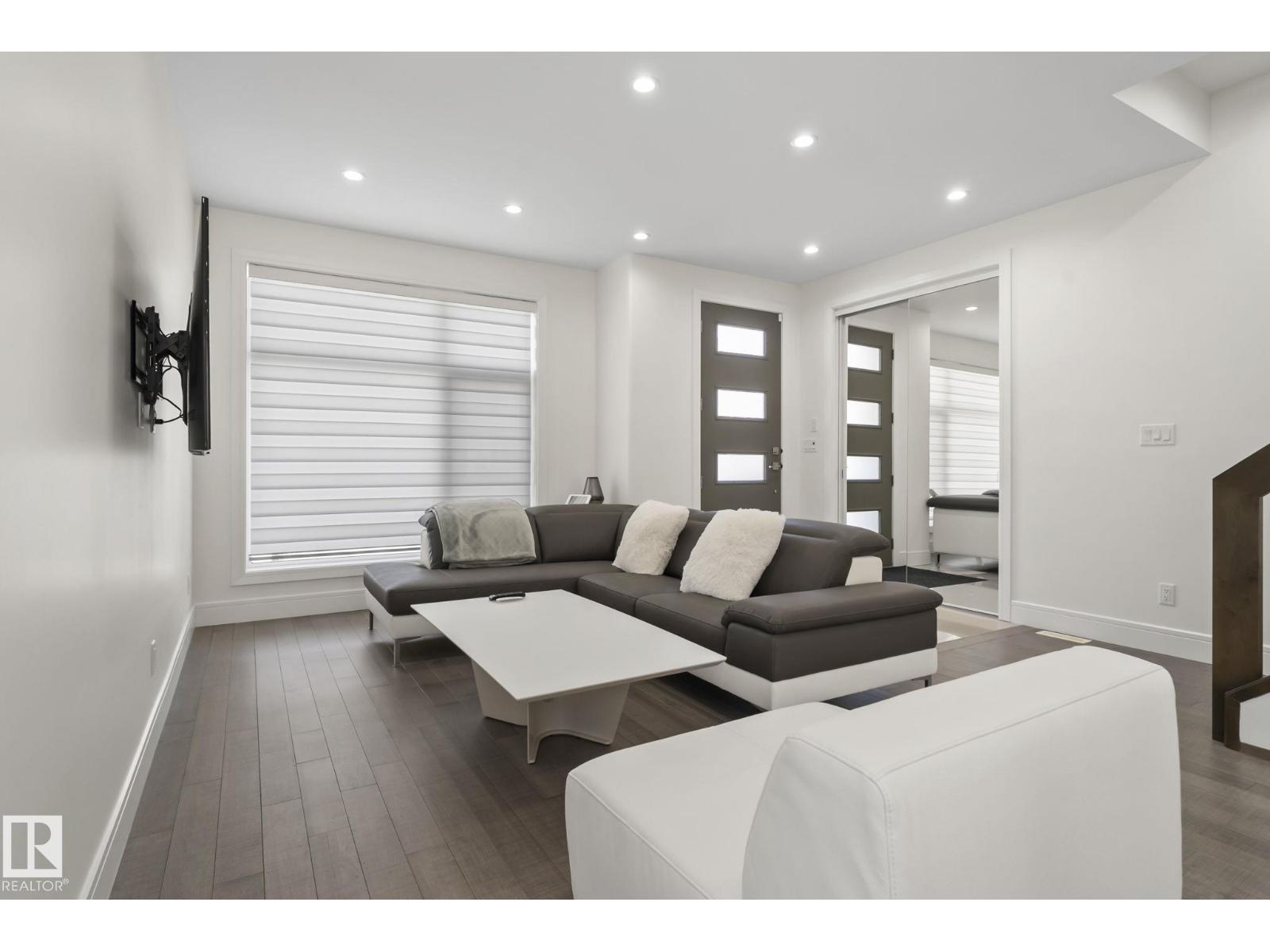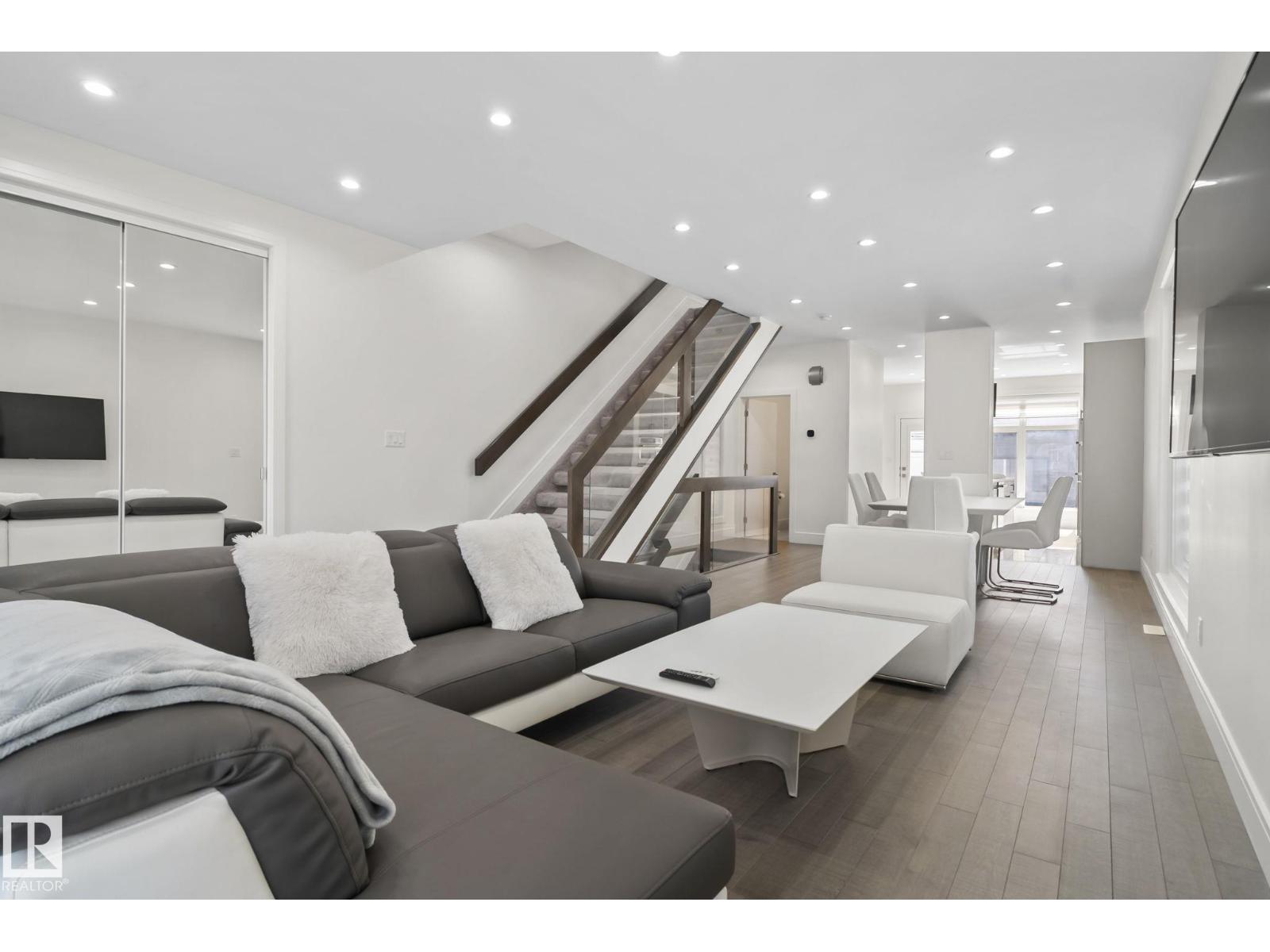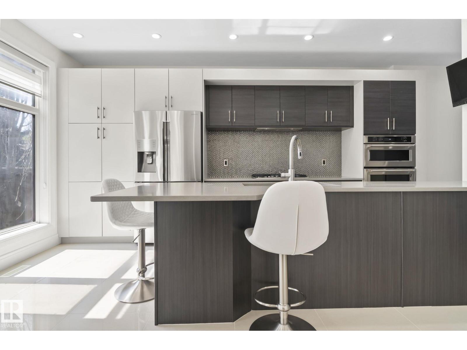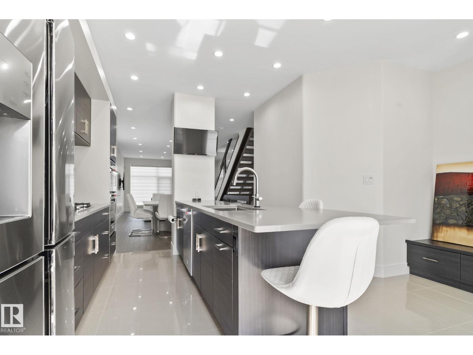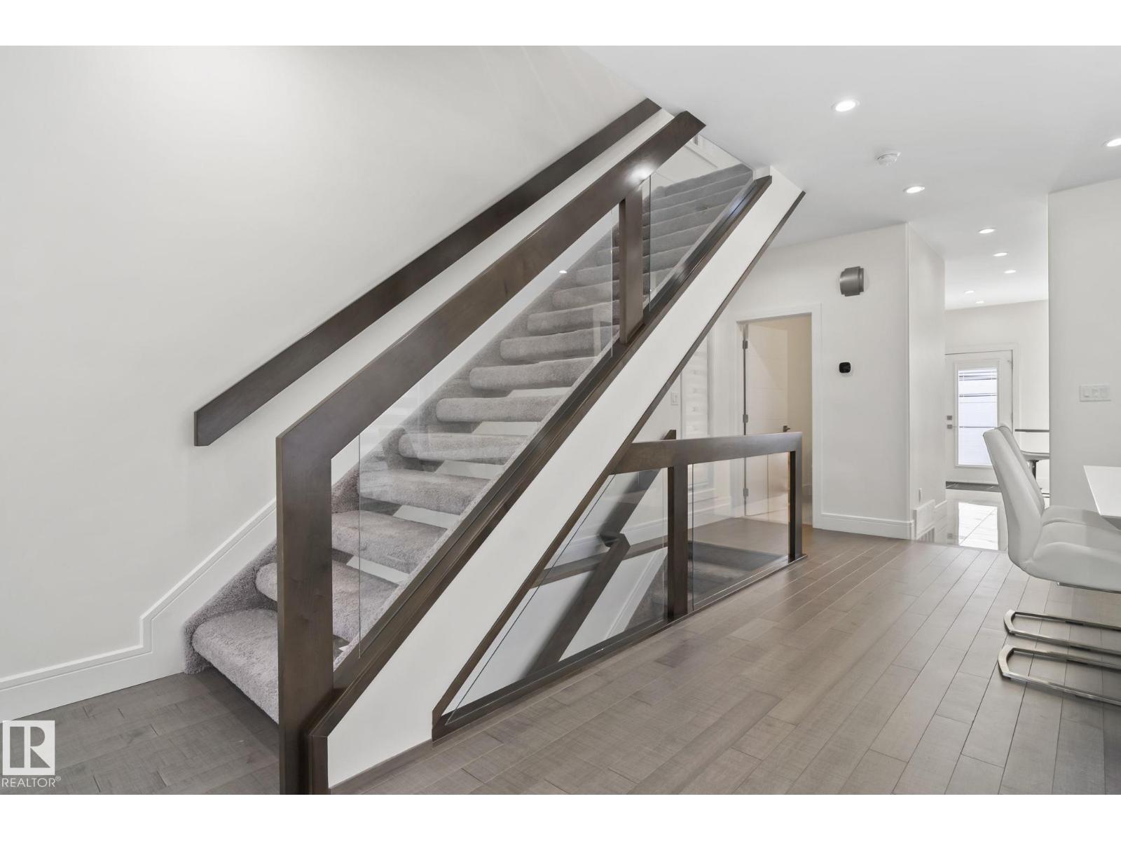 Stunning 4-Bed, 4-Bath 2.5-Storey with a finishing basement in Old Glenora. This beautifully designed home in prestigious Old Glenora features low-maintenance landscaping with exposed aggregate concrete, artificial turf, and striking brick exterior. Inside, enjoy 112 LED pot lights with dimmers, themed bathrooms with detailed tile work, sandstone acrylic quartz counters, Delta faucets (lifetime warranty), triple-pane windows, and a custom Kitchen Kraft kitchen with ultra high-grade Samsung fridge.Additional highlights include glass maple-stained railings, air conditioning, a fully finished basement, and a double heated garage. Over $100,000 in upgrades from the original spec! One of the home’s best features is the 3rd-floor loft with a private patio—ideal for an office or flex space. (id:63190)