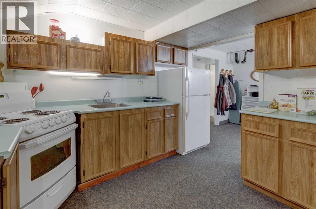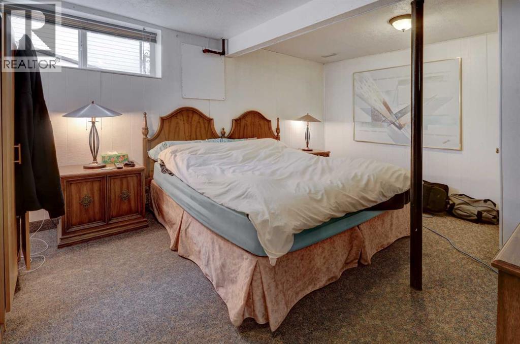 Beautifully upgraded and well maintained bungalow in an exceptional location ON THE RIDGE with Bow River, Mountain and City Views. This well-cared-for home has been upgraded over the years, including gorgeous kitchen, most windows, improved insulation, central air conditioning, beautiful hardwood floors and "knock-down" ceiling finish on the main level. The RENOVATED OPEN-CONCEPT KITCHEN features quartz countertops, a large island with an induction cooktop with convection oven, plus an overhead hood fan, and plenty of workspace and storage. All lower cabinets are pull out drawers with soft close feature. The dining room offers built-in cabinets and bookcases with a sliding patio door leading to the backyard. Ceiling fan, and LED pot lights overhead. There is a spacious pantry and an oversized linen cupboard in the hall. The bright living room enjoys west-facing mountain, city and ridge views with a cozy wood-burning fireplace with mantle and hearth. The main level includes three bedrooms, including a primary bedroom with a two-piece ensuite.The developed basement features an (illegal) one-bedroom suite, which could also serve as additional living space for a larger family. Including a decorative vintage wood stove and being sold furnished with household dishes and supplies, this is a “sweet” living space! Laundry and utility are shared, and there is a separate basement entrance. The basement could easily be modified for a second bedroom with windows with legal size egress.The beautifully landscaped yard features landscape stonework, trees, shrubs, and garden beds, along with a patio perfect for enjoying morning coffee in the sun or relaxing in the shade on warm summer days, and a firepit for your family marshmallow roasts on summer evenings. An incredible location with direct access to the Bow River pathway system and stunning views. Walking distance to schools, shops, bus routes, dog parks, community outdoor pool, arena, community garden, community hall, O gden 50+ club, and minutes to regional shopping plus easy access in all directions with Stoney and Deerfoot Trails. Close to downtown and Foothills Industrial Area. Future Greenline LRT is underway. This property is a gem to be enjoyed for years to come! Welcome Home! Seller says bring an offer! (id:63190)