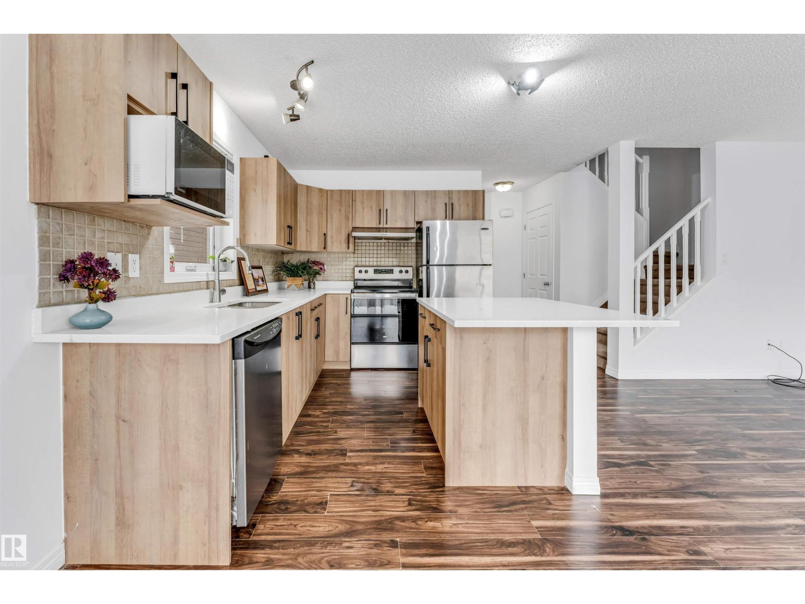 **PRIME LOCATION CLOSE TO ALL AMENITIES**ATTACHED GARAGE WITH PARKING PAD**FULLY DEVELOPED BASEMENT WITH HUGE FAMILY ROOM** Welcome to this well-maintained single car attached garage half duplex offering comfort, space, and unbeatable convenience. The spacious kitchen features an abundance of cabinetry paired with classy stainless steel appliances, perfect for everyday living and entertaining. A bright formal dining area with sliding patio doors opens to your private deck and yard. The main floor showcases laminate flooring throughout and an inviting living room. Upstairs offers 3 generously sized bedrooms and 3 bathrooms, including a 3-piece ensuite. Enjoy extra storage, a professionally developed basement with a massive family room, and extremely low condo fees — all just steps from shopping, schools, restaurants, banks, and public transit. (id:63190)