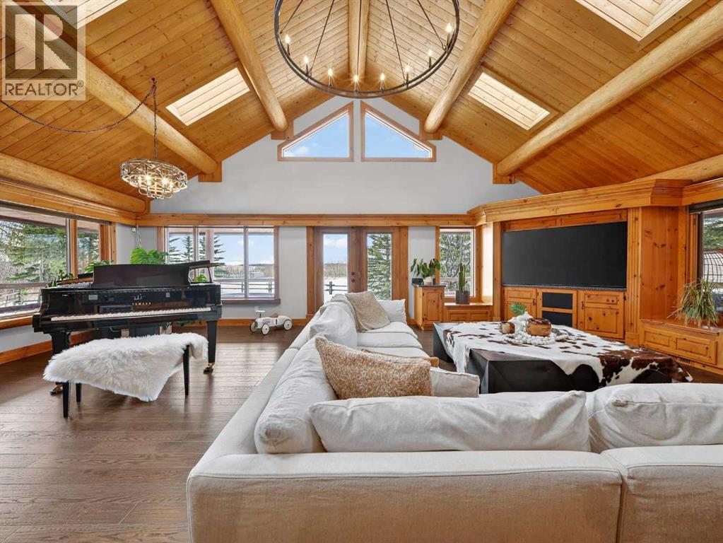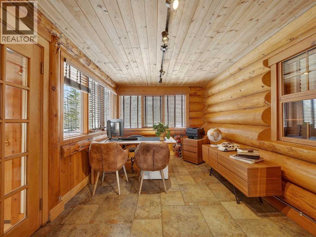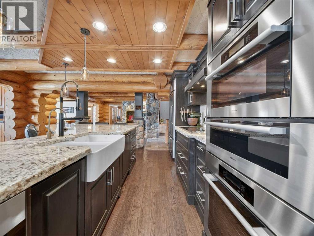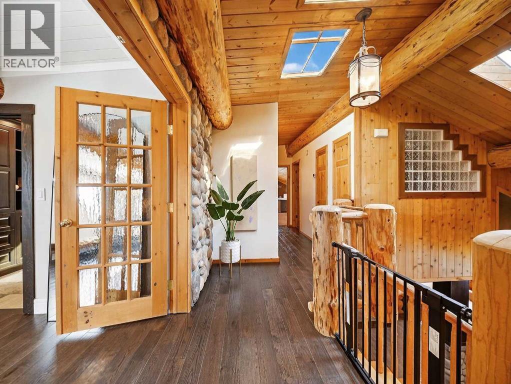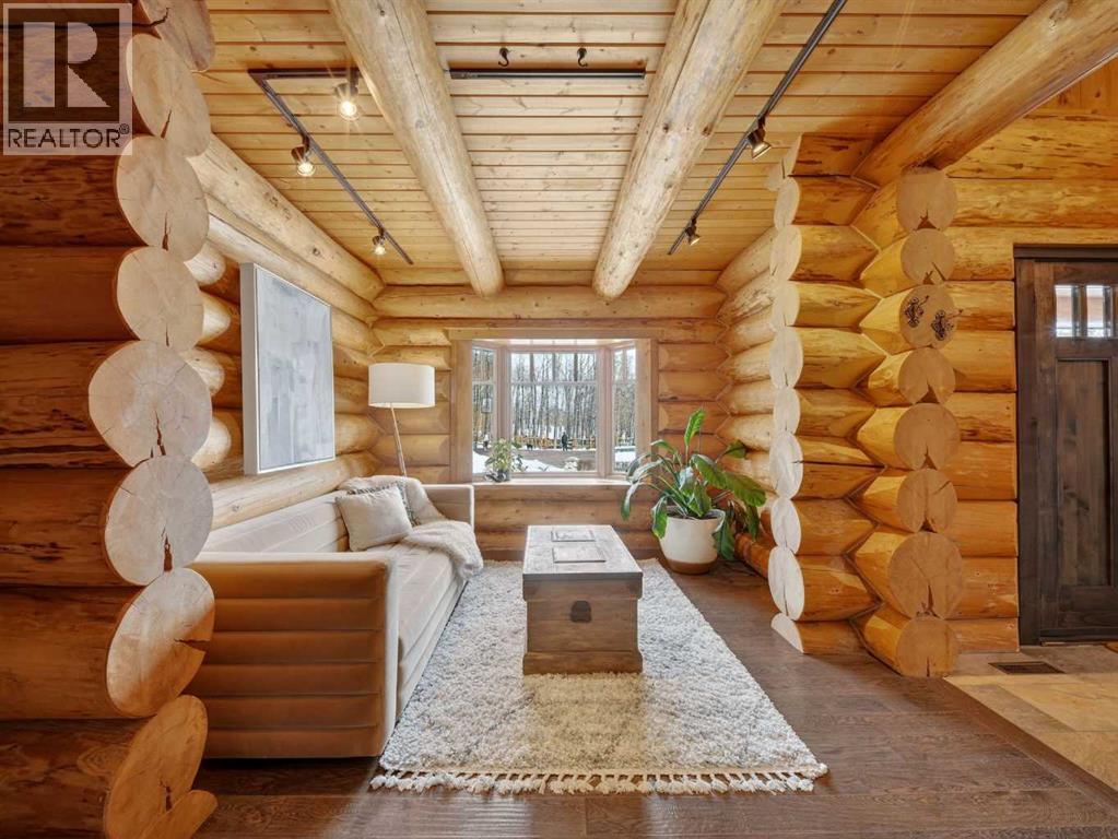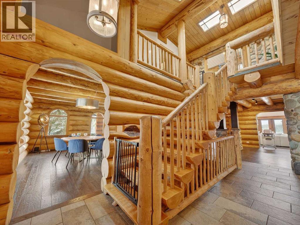 A rare 12.5 acre estate in the heart of Bearspaw. Previously offered on 4.29 acres, this property has been fundamentally transformed through the strategic assembly of an expansive western parcel, now encompassing approximately 12.5 acres of private land in one of Rocky View County’s most prestigious enclaves. For the established family or equestrian buyer seeking meaningful scale, long-term value, and exceptional privacy, this is an entirely elevated opportunity. The 6,000+ sq ft log and stone residence remains a striking blend of mountain architecture and refined modern design. Vaulted ceilings, exposed beams, and expansive windows frame panoramic views, while multiple gathering spaces create seamless flow for both everyday living and large-scale entertaining. The chef’s kitchen, complete with natural-edged island, granite surfaces, farmhouse sink, and premium appliances, anchors the main level. A dramatic great room with heated stamped concrete floors and a commanding stone fireplace offers a sophisticated yet welcoming focal point. Formal and informal dining areas, a private office, and thoughtfully designed secondary spaces provide versatility for a growing family or multi-generational living. Upstairs, the primary retreat features a spa-inspired ensuite with steam shower and air-jet tub, along with two additional bedrooms and curated architectural details that add warmth and character. The fully developed lower level includes a games room, media room with fireplace, wine cellar, and additional bedroom, creating a complete lifestyle environment within the home. What truly distinguishes this offering is the land. Over twelve acres dramatically expands the privacy, usability, and long-term potential of the property. The additional parcel opens the door to future equestrian enhancements, expanded recreation, additional outbuildings, or simple enjoyment of uninterrupted space and mountain views. This is a rare chance to secure acreage of this scale in Bearspaw witho ut sacrificing proximity to Calgary. A heated six-car garage with radiant flooring, workshop capability, and integrated Control4 automation further elevates the estate’s functionality and appeal. (id:63190)
