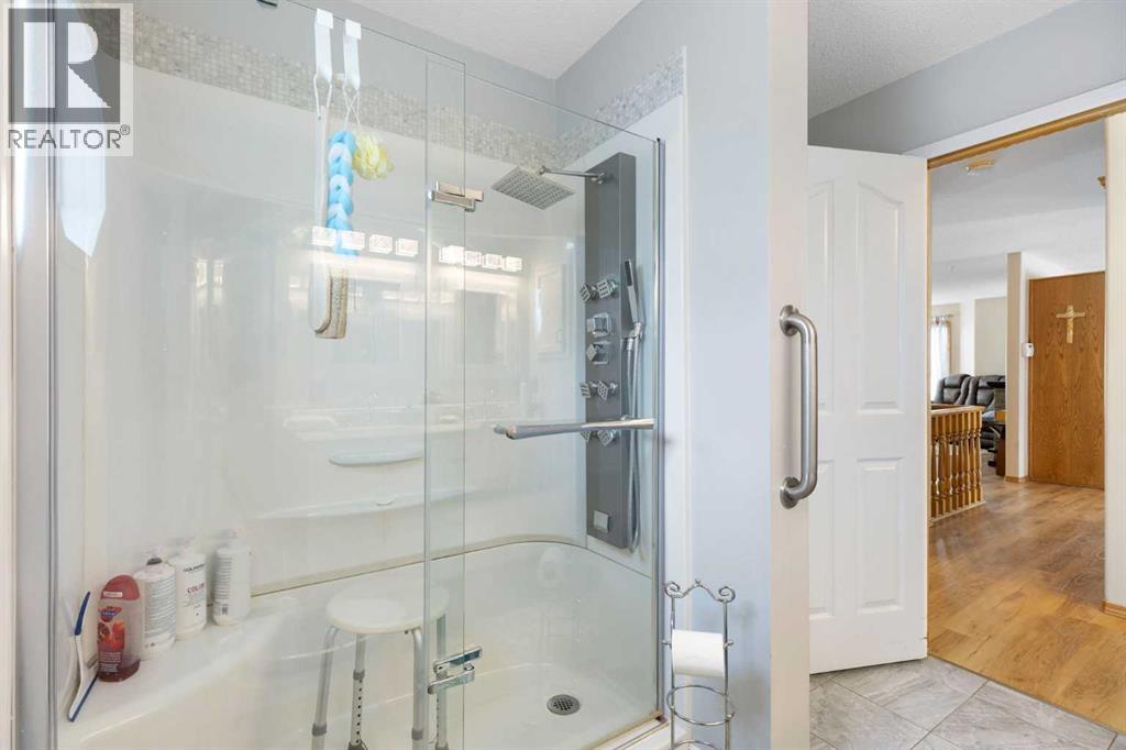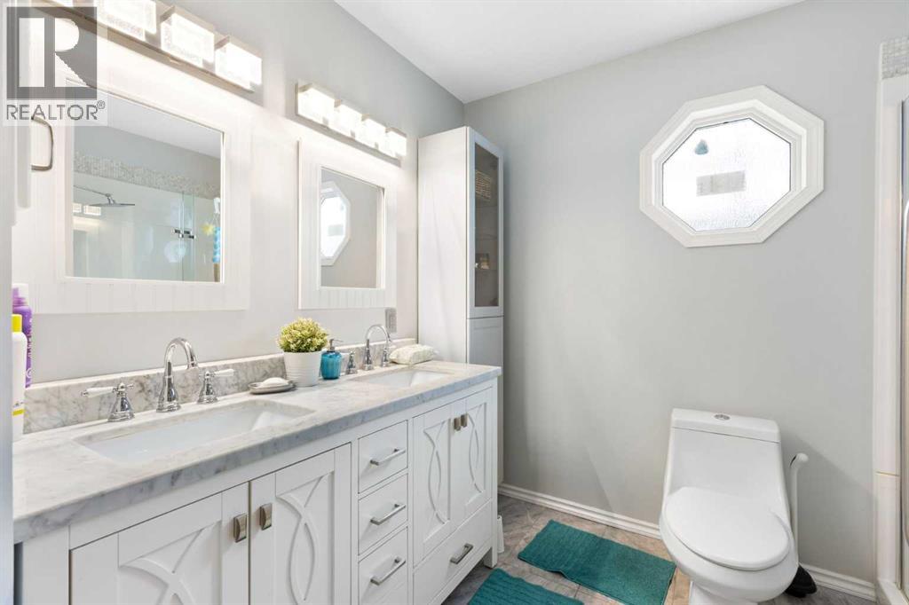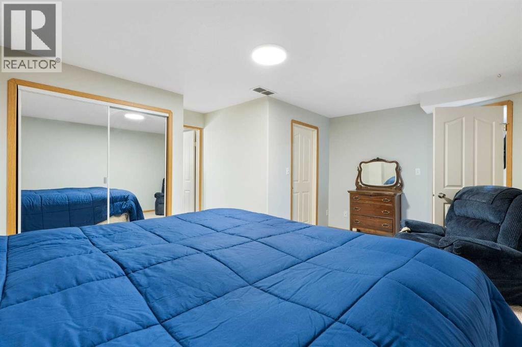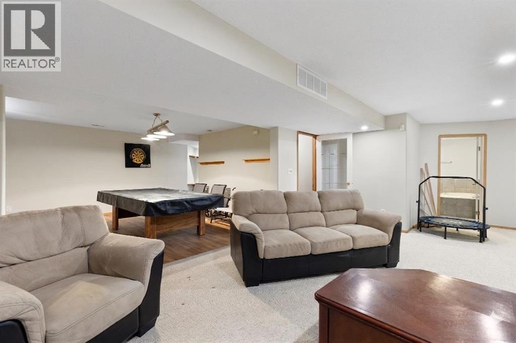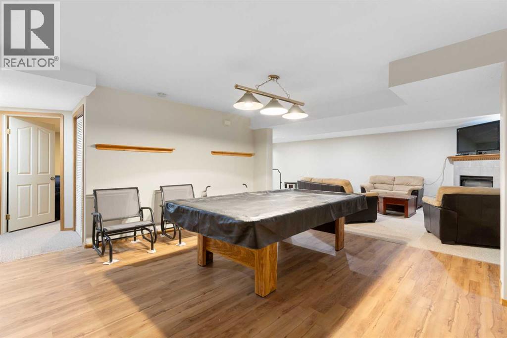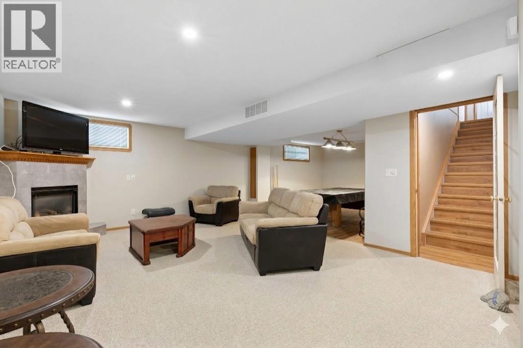 Welcome to this well-maintained and fully developed bungalow situated on a spacious, beautifully landscaped, corner lot in a mature, quiet area of Strathmore. Offering over 2,300 sq ft of developed living space, this home combines functional layout, generous room sizes, and the rare bonus of a second garage/workshop. The main floor features a bright and inviting living room filled with natural light, a dedicated dining area, and an updated kitchen complete with a central island, tile backsplash, and ample cabinetry for storage and prep space. There are three bedrooms (one currently used as an office) on the main level, including a comfortable primary bedroom with direct access to the 4-piece bathroom, creating an ensuite-style feel while still serving the main floor. Convenient main floor laundry adds everyday practicality. The fully developed basement offers exceptional additional living space, highlighted by a massive rec room with a cozy gas fireplace — perfect for movie nights or entertaining. The lower level also includes a large fourth bedroom with walk-in closet, a full bathroom featuring a relaxing jetted tub, plus utility and storage space. One of the standout features of this property is the garage setup. In addition to the attached double garage, there is a separate detached heated garage/workshop that is fully powered and ideal for hobbyists, woodworkers, mechanics, or anyone needing dedicated workspace. This flexible setup provides incredible versatility for storage, projects, or home-based business use. There is also a paved driveway in the yard that could be used for RV parking. Also outside, enjoy the large deck with privacy wall, mature trees, underground sprinklers in the flower beds and the privacy that comes with a corner lot. A rare opportunity offering developed space, functional layout, and the bonus of two garage structures — perfect for families, hobbyists, or anyone needing extra room to live and work. All windows are new and come with war ranty, A/C under warranty and furnace, hot water tank and irrigation all serviced 6 months ago. (id:63190)