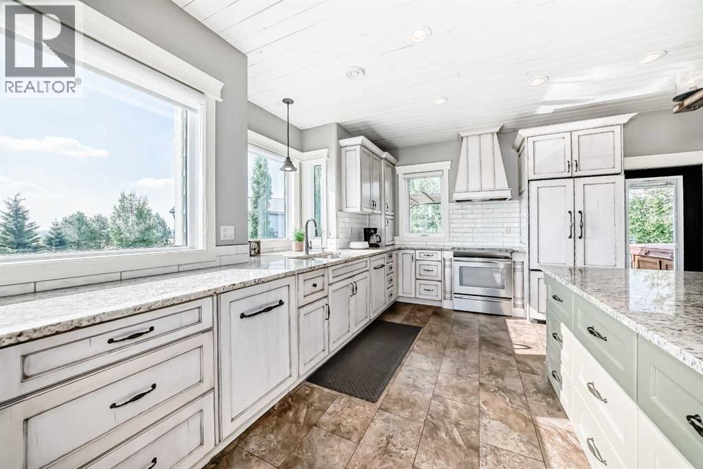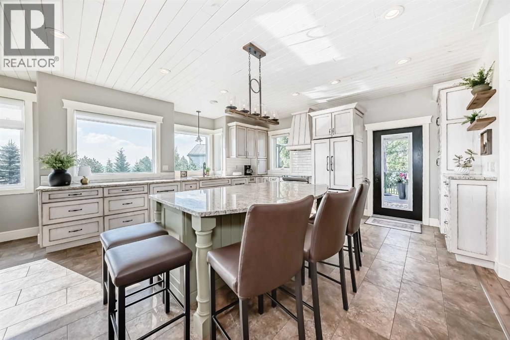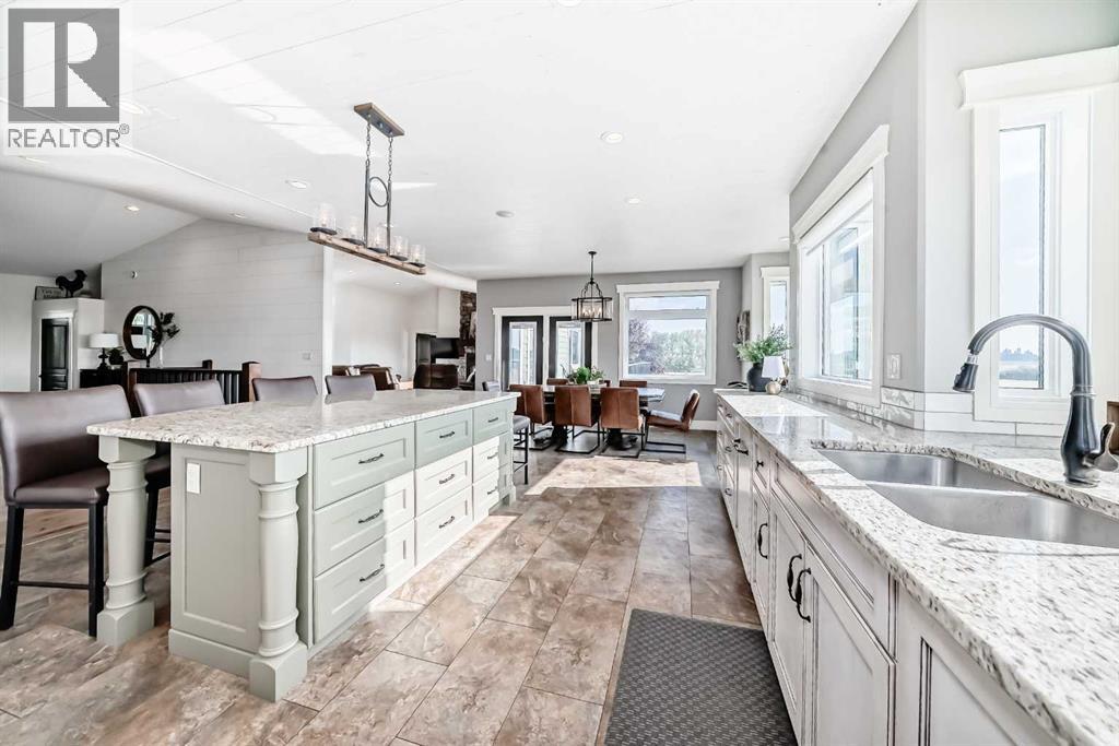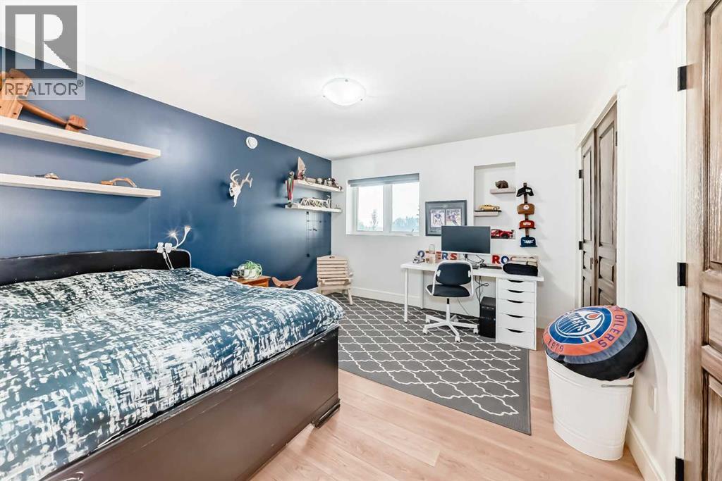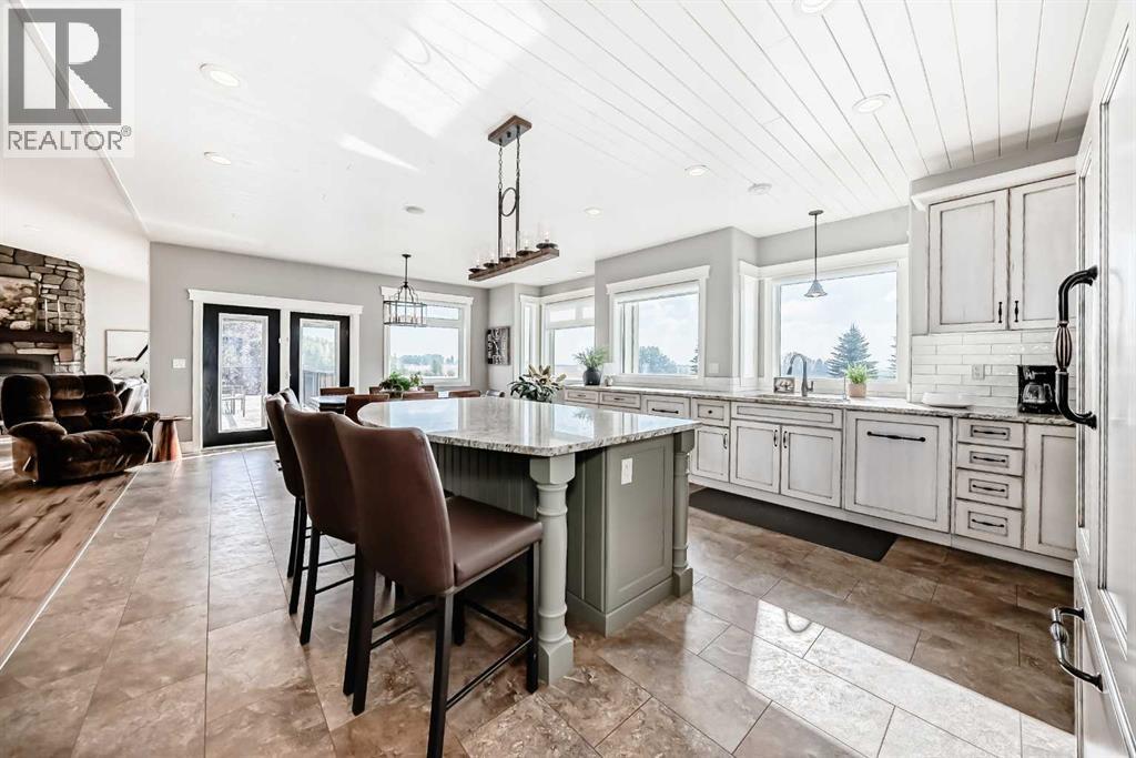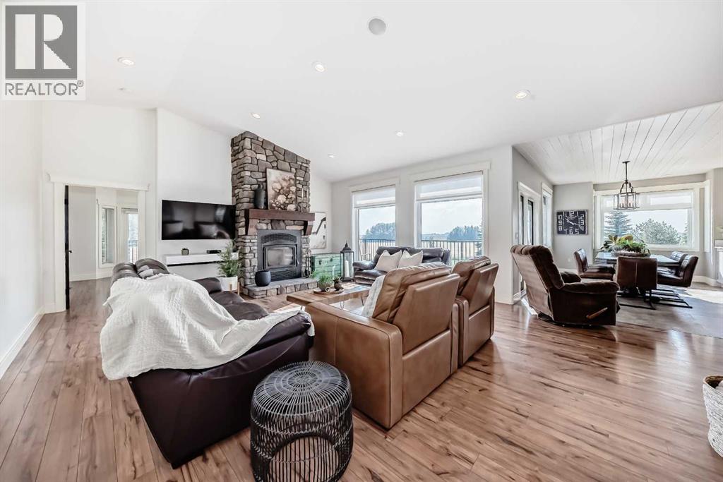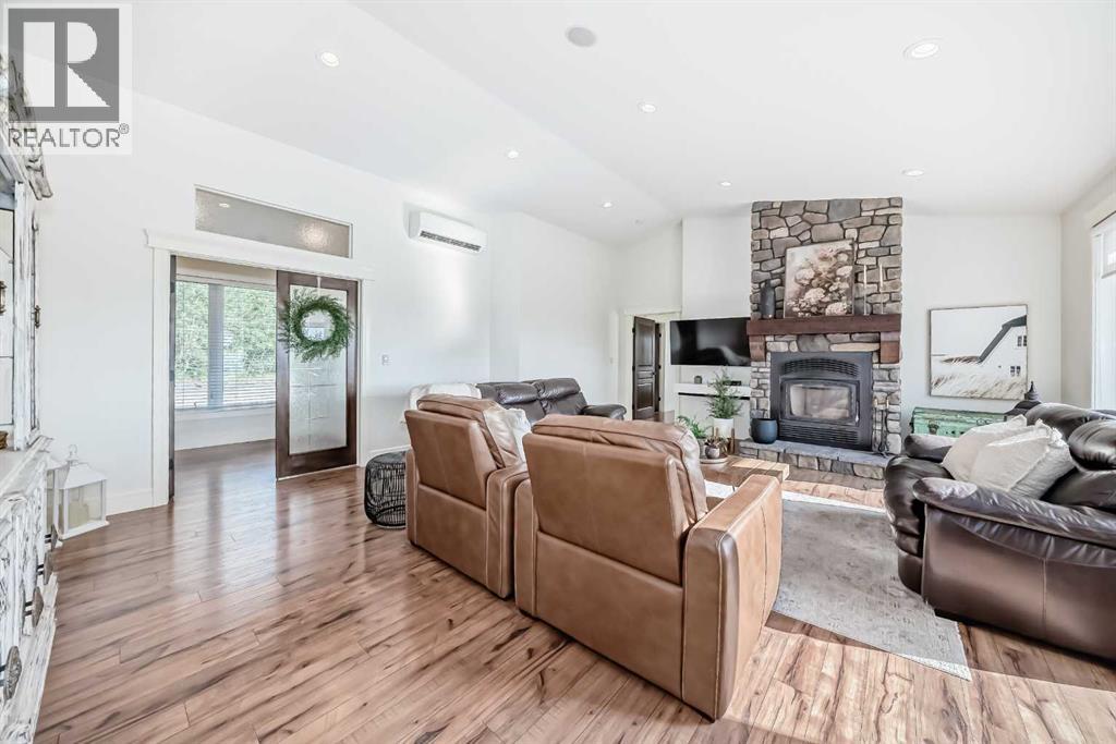 Experience the perfect blend of executive luxury and peaceful country living on this exceptional 29-acre private acreage, ideally located within 10 minutes from town, and with quick access to the Highway 2 corridor. This sprawling, like-new bungalow offers 4 bedrooms, 3 bathrooms, and a thoughtfully designed layout that balances everyday family comfort with impressive entertaining space. From the moment you step inside, pride of ownership is evident. Gleaming hardwood floors, warm neutral tones, and abundant natural light create a welcoming and refined atmosphere throughout the stunning main level. The living room is bright and inviting, centered around a striking stone-surround wood-burning fireplace that anchors the space beautifully. The kitchen is truly the heart of the home and is designed to impress with rich cabinetry, extensive counter space, granite countertops, and a large island with seating. Whether hosting guests or preparing family meals, this space delivers both style and functionality. The adjoining dining area easily accommodates gatherings of all sizes and features patio doors leading to the expansive deck, where you can soak in serene views of your private acreage. The primary suite offers a luxurious retreat, complete with a spacious walk-in closet and a spa-inspired 5-piece ensuite designed for relaxation. A dedicated main-floor office provides versatility for remote work or hobbies, while the stylish 2-piece powder room and a well-appointed laundry room with cabinetry, counter space, and sink add practical convenience. The fully finished walkout basement extends your living space with a large recreation room ideal for entertaining or unwinding. Three additional generously sized bedrooms and a 4-piece bathroom complete the lower level. Step outside to the covered patio overlooking the beautifully landscaped yard which is the perfect setting to enjoy Alberta’s seasons. Comfort is maximized year-round with in-floor heat on both levels and two ductless central air conditioning units. Outdoors, the mature trees, paved driveway, and carefully designed landscaping enhance the natural beauty and privacy of this remarkable property. The oversized attached garage (29.2’ x 27.1’) provides ample room for vehicles and storage. A standout feature is the large heated shop with in-floor heat and complete with extensive storage, offering endless possibilities for projects, equipment, and flexibility. Additionally, the expansive gravelled flat site adjacent to the yardsite, equipped with power, is perfectly suited for parking large trucks, trailers, or heavy equipment. With 29 acres to call your own, this property offers more than just a home, it offers a lifestyle defined by comfort, space, and tranquility. (id:63190)