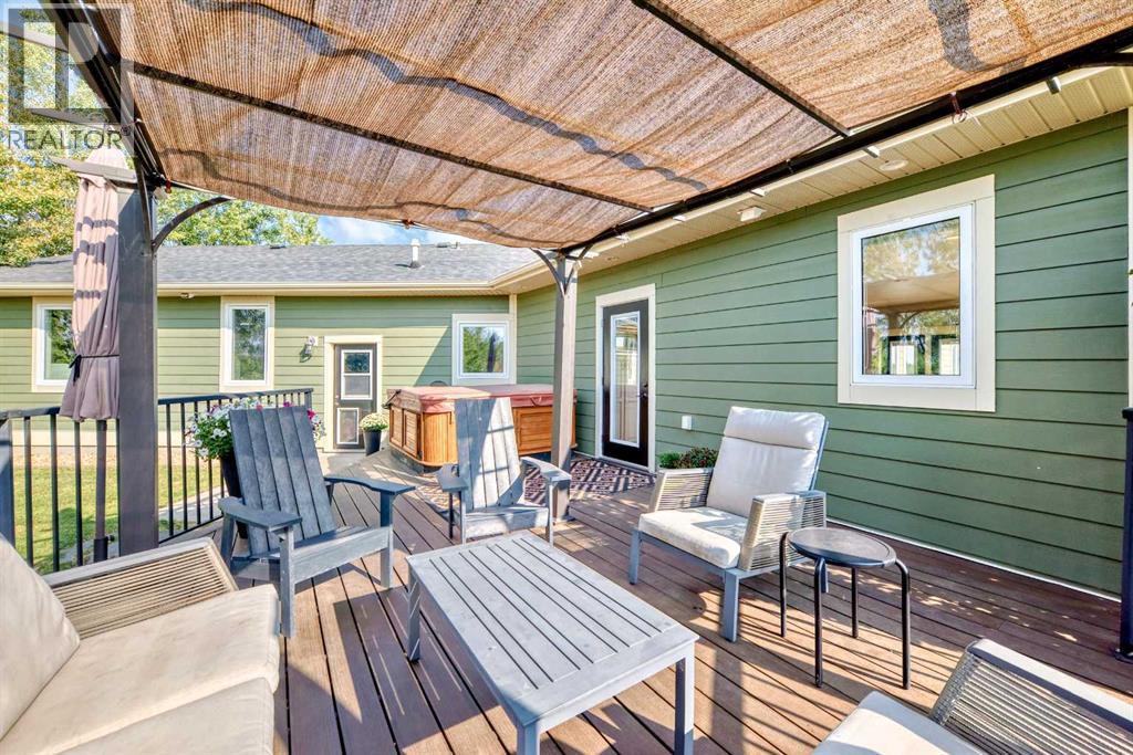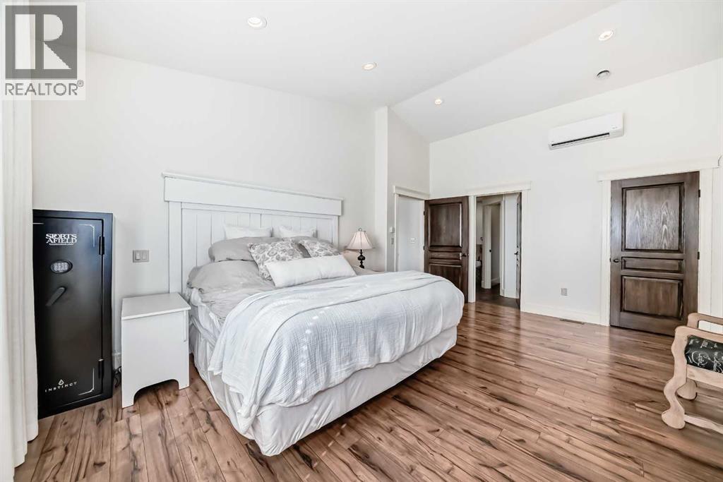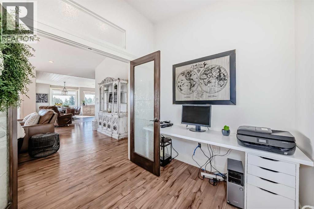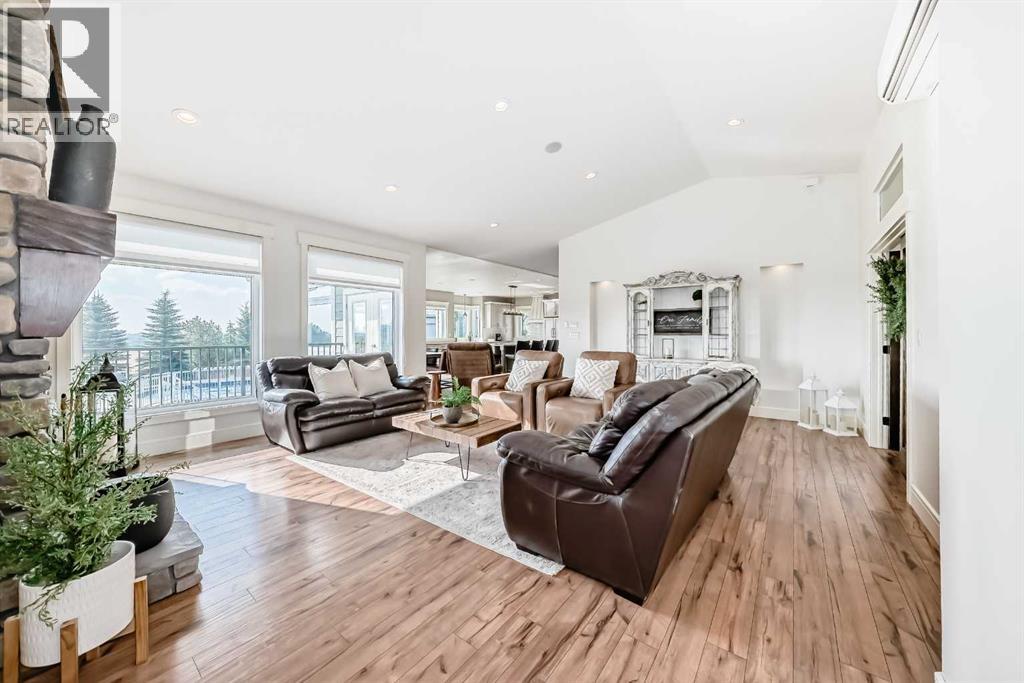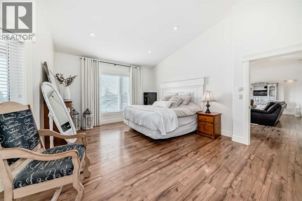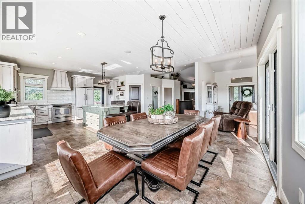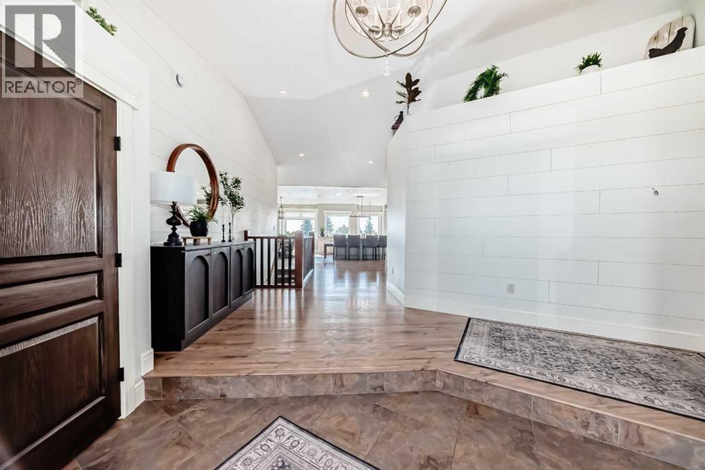 Experience the perfect blend of executive luxury and peaceful country living on this exceptional 29-acre private acreage, ideally located within 10 minutes from town, and with quick access to the Highway 2 corridor. This sprawling, like-new bungalow offers 4 bedrooms, 3 bathrooms, and a thoughtfully designed layout that balances everyday family comfort with impressive entertaining space. From the moment you step inside, pride of ownership is evident. Gleaming hardwood floors, warm neutral tones, and abundant natural light create a welcoming and refined atmosphere throughout the stunning main level. The living room is bright and inviting, centered around a striking stone-surround wood-burning fireplace that anchors the space beautifully. The kitchen is truly the heart of the home and is designed to impress with rich cabinetry, extensive counter space, granite countertops, and a large island with seating. Whether hosting guests or preparing family meals, this space delivers both style and functionality. The adjoining dining area easily accommodates gatherings of all sizes and features patio doors leading to the expansive deck, where you can soak in serene views of your private acreage. The primary suite offers a luxurious retreat, complete with a spacious walk-in closet and a spa-inspired 5-piece ensuite designed for relaxation. A dedicated main-floor office provides versatility for remote work or hobbies, while the stylish 2-piece powder room and a well-appointed laundry room with cabinetry, counter space, and sink add practical convenience. The fully finished walkout basement extends your living space with a large recreation room ideal for entertaining or unwinding. Three additional generously sized bedrooms and a 4-piece bathroom complete the lower level. Step outside to the covered patio overlooking the beautifully landscaped yard which is the perfect setting to enjoy Alberta’s seasons. Comfort is maximized year-round with in-floor heat on both levels and two ductless central air conditioning units. Outdoors, the mature trees, paved driveway, and carefully designed landscaping enhance the natural beauty and privacy of this remarkable property. The oversized attached garage (29.2’ x 27.1’) provides ample room for vehicles and storage. A standout feature is the large heated shop with in-floor heat and complete with extensive storage, offering endless possibilities for projects, equipment, and flexibility. Additionally, the expansive gravelled flat site adjacent to the yardsite, equipped with power, is perfectly suited for parking large trucks, trailers, or heavy equipment. With 29 acres to call your own, this property offers more than just a home, it offers a lifestyle defined by comfort, space, and tranquility. (id:63190)