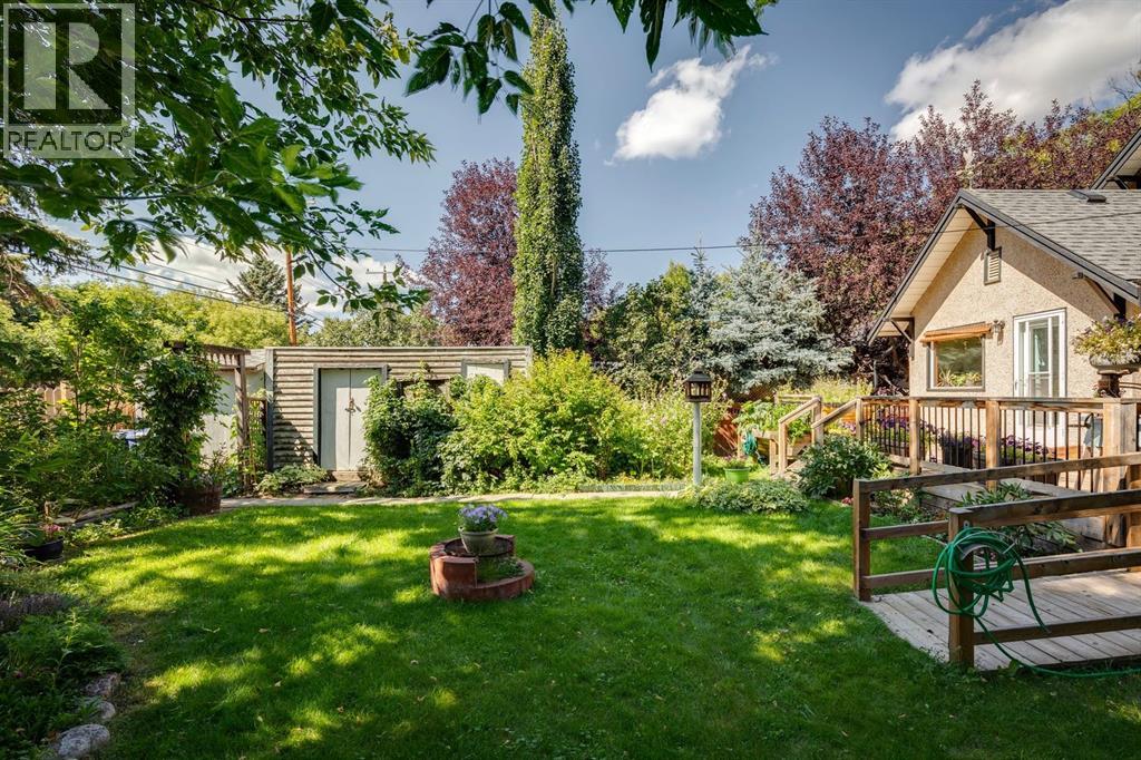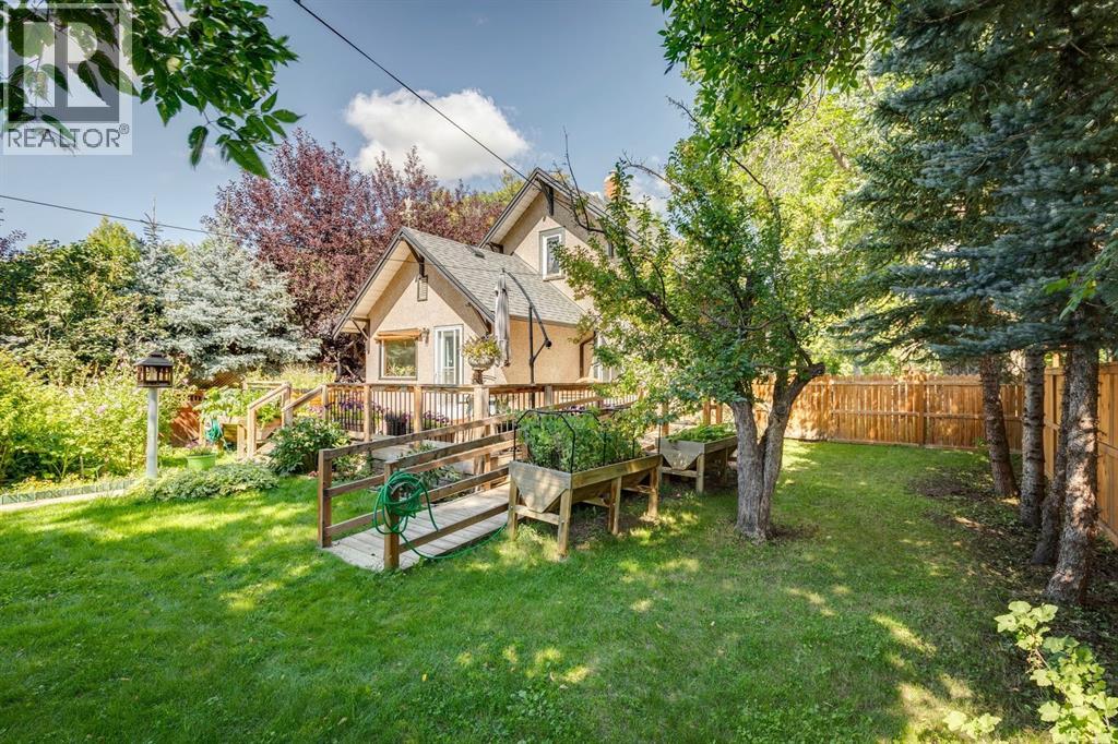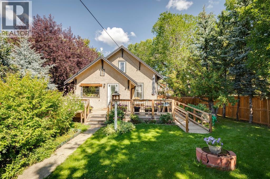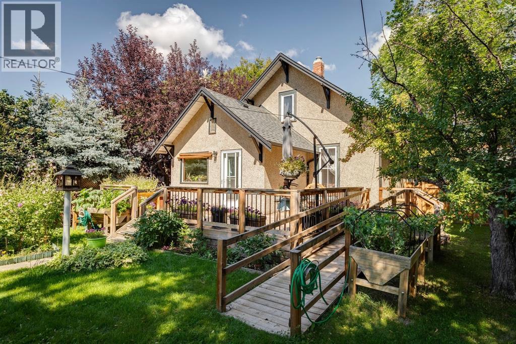 THIS IS A RARE FIND! Zoned for commercial or residential. A charming heritage home on highly coveted Elma Street, one of Okotoks’ most historic and picturesque locations. This beautifully maintained 1.5 storey property sits on a large, private, tree-filled lot with an updated exterior, a white picket fence, a welcoming covered veranda, and a stunning backyard oasis w/ pond and stunning flower beds, making it feel like your own private park.Zoned Heritage Mixed Use, this property offers exceptional flexibility—ideal as a warm, character-filled residence or a discretionary commercial space, giving you the rare opportunity to open a business before the busy summer and fall season on Elma Street.Inside, the home radiates timeless character with beautiful original wood charm, original fir flooring, high ceilings, and a warm, welcoming layout. The main floor features a spacious living room/dining room, a bright kitchen with a breakfast nook addition, an updated 4-piece bathroom, and a main floor bedroom. Two generously sized bedrooms complete the upper level. The basement is partially developed with a large flex room, plus storage.Extensive updates provide peace of mind, including:New shingles, eavestroughs, and soffit, Updated electrical, New water line to the main, Newer hot water tank, Updated exterior, new fence and back deck. Ongoing improvements since early 2000s including plumbing, wiring, furnace, and sump pumpHomes on Elma Street seldom come available—especially ones with this much character, modernization, and zoning versatility. A truly special property worth viewing! (id:63190)