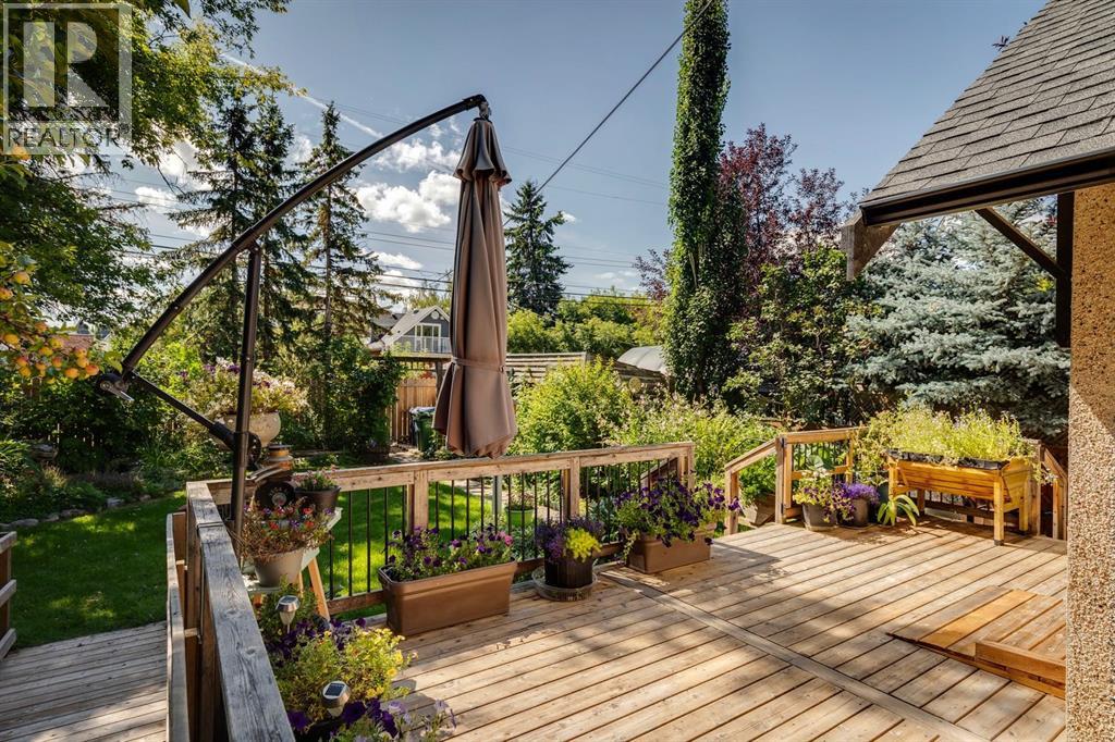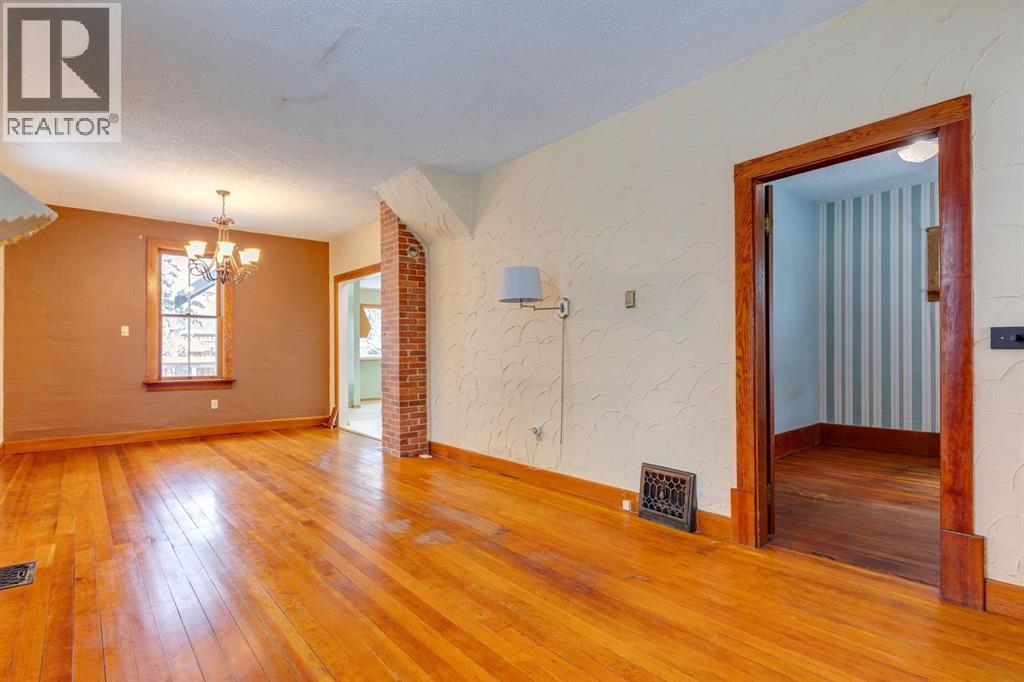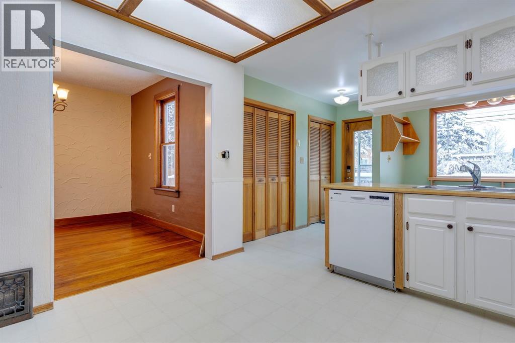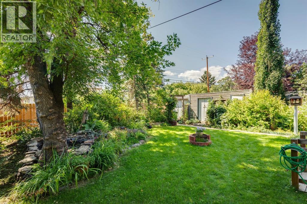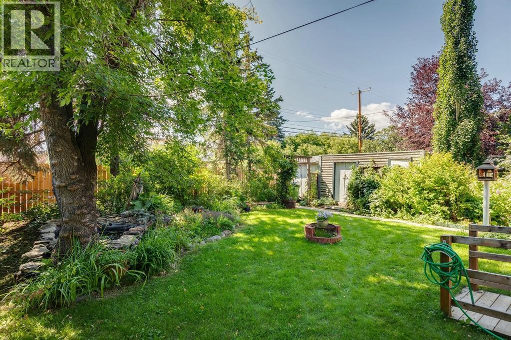 THIS IS A RARE FIND! Zoned for commercial or residential. A charming heritage home on highly coveted Elma Street, one of Okotoks’ most historic and picturesque locations. This beautifully maintained 1.5 storey property sits on a large, private, tree-filled lot with an updated exterior, a white picket fence, a welcoming covered veranda, and a stunning backyard oasis w/ pond and stunning flower beds, making it feel like your own private park.Zoned Heritage Mixed Use, this property offers exceptional flexibility—ideal as a warm, character-filled residence or a discretionary commercial space, giving you the rare opportunity to open a business before the busy summer and fall season on Elma Street.Inside, the home radiates timeless character with beautiful original wood charm, original fir flooring, high ceilings, and a warm, welcoming layout. The main floor features a spacious living room/dining room, a bright kitchen with a breakfast nook addition, an updated 4-piece bathroom, and a main floor bedroom. Two generously sized bedrooms complete the upper level. The basement is partially developed with a large flex room, plus storage.Extensive updates provide peace of mind, including:New shingles, eavestroughs, and soffit, Updated electrical, New water line to the main, Newer hot water tank, Updated exterior, new fence and back deck. Ongoing improvements since early 2000s including plumbing, wiring, furnace, and sump pumpHomes on Elma Street seldom come available—especially ones with this much character, modernization, and zoning versatility. A truly special property worth viewing! (id:63190)