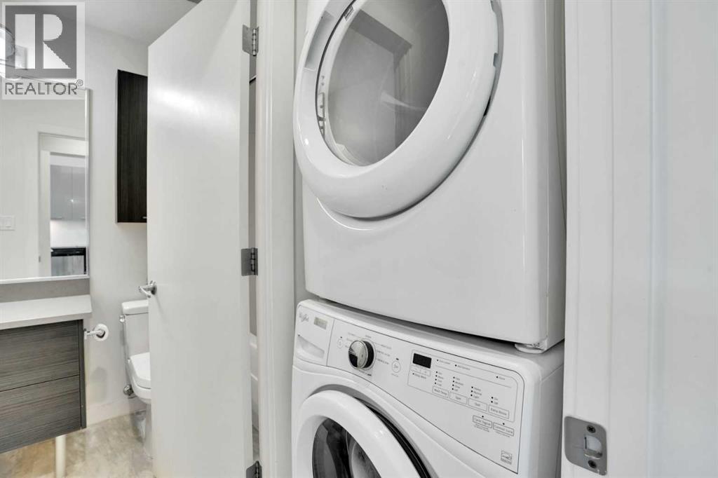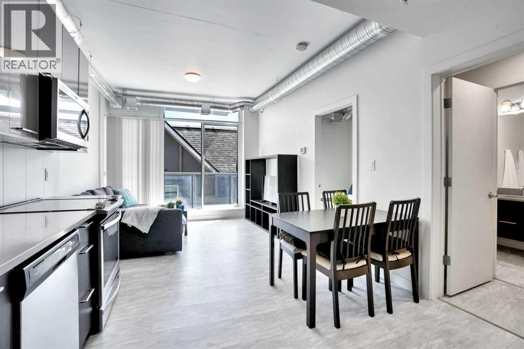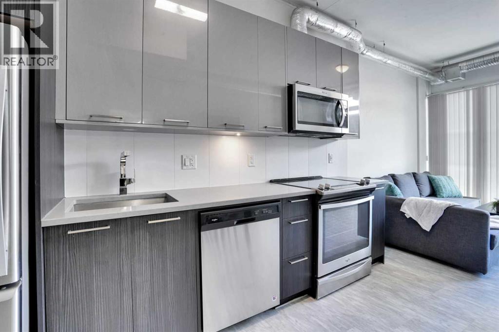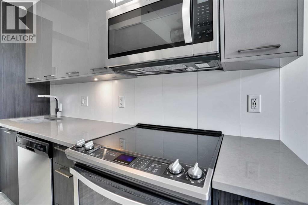 Ever dreamed of living just minutes away from the downtown, in a 1 bedroom (not studio) apartment, in trendy East Village, with the civic heart of the city, City Hall, only 1500 sq ft away, and the Bow River under 1000 ft, and be witness to the transformation of the Stampede grounds into Calgary's foremost entertainment district? Welcome HOME. The INK has been crafted to offer amazing experiences. The kitchen, the heart of any home, will be host to your culinary creations and features quartz kitchen countertops, undermount sink, stainless steel appliances, space-saving over-the-range microwave, easy-to-clean glass top oven. The kitchen / dining and living room all form 1 larger open living space, perfect for either individuals, couples, entertaining or an AirBnb. You'll appreciate the insuite laundry (stacked) and the 4 piece ensuite. The generous balcony allows you to relax outside after a long day, or go up to the rooftop patio. Calgary has an extensive bike network that INK was designed to utilize, including bike storage and bike maintenance. In the same room, there is a pet grooming station. Low condo fees help ensure the affordability. Evenings and weekends, your entertainment options are unlimited with Cowboys Casino and the Stampede grounds on your doorstep. This condo could make an amazing long or shorter term (believe 31 day min) and we can include bed, table, couch, and TV to make it easy. Between the affordable price, the amazing location for both work and play, rental potential, the full laundry, there is LOT to impress. Call today for your private viewing. (id:63190)