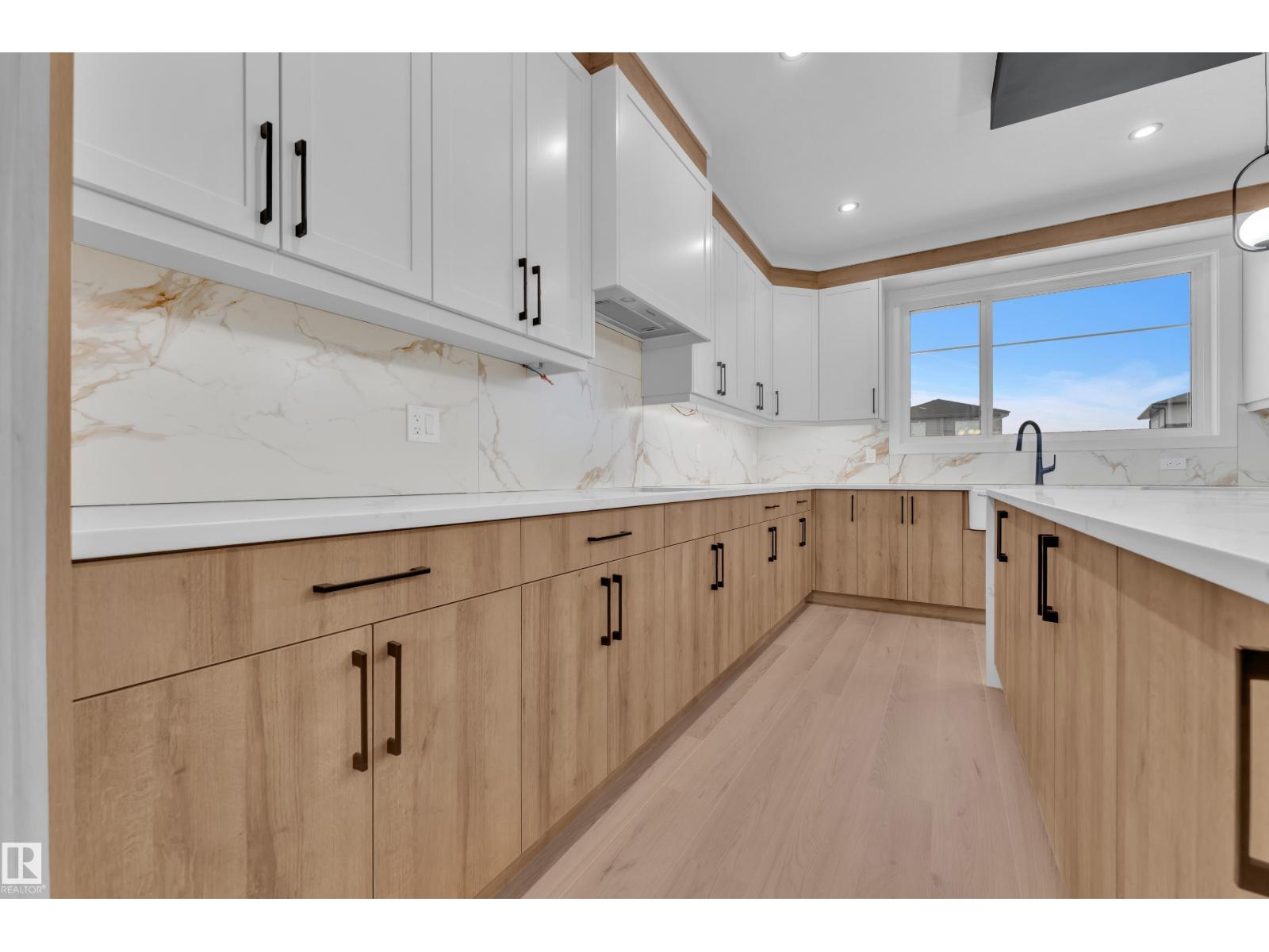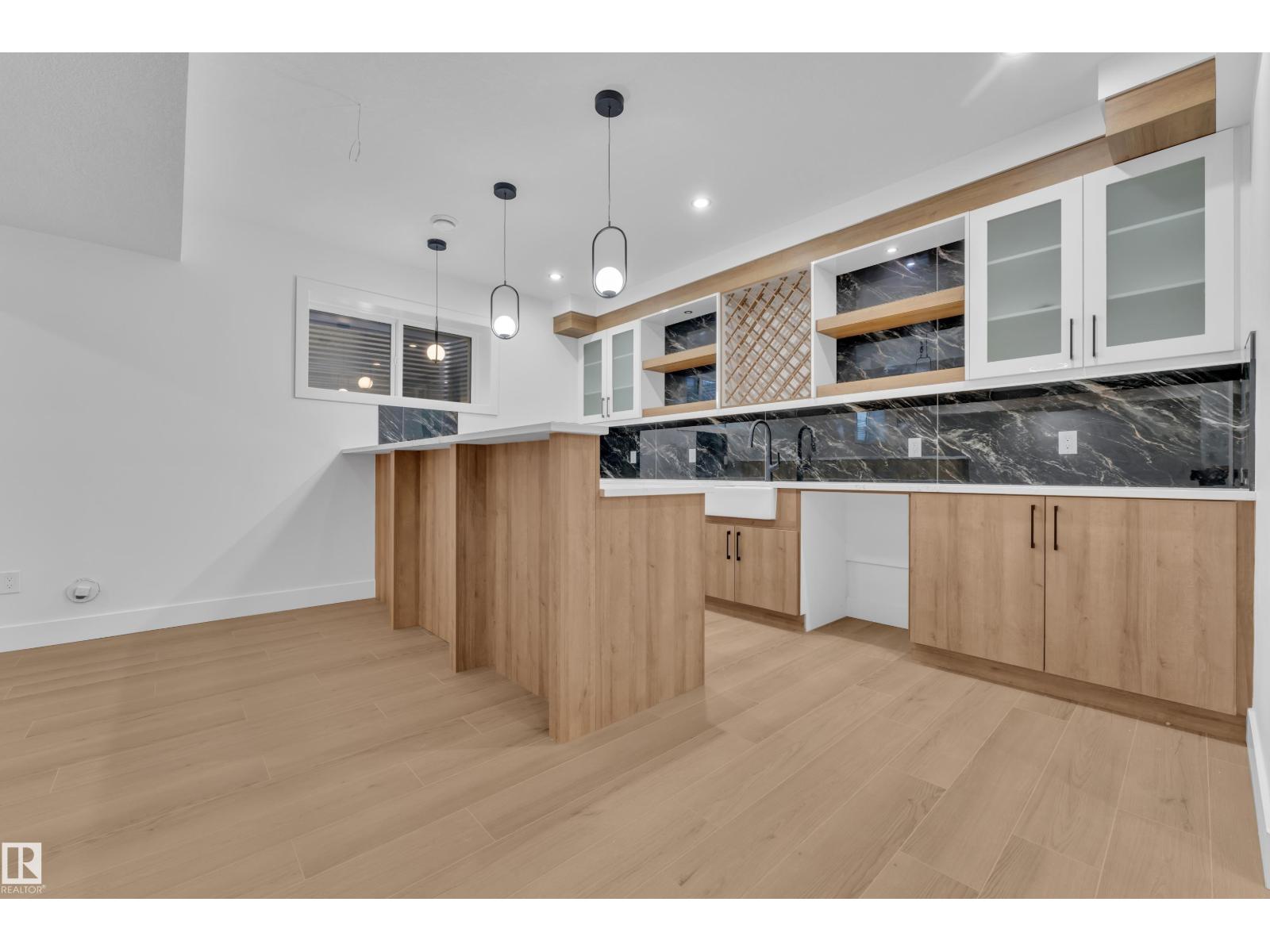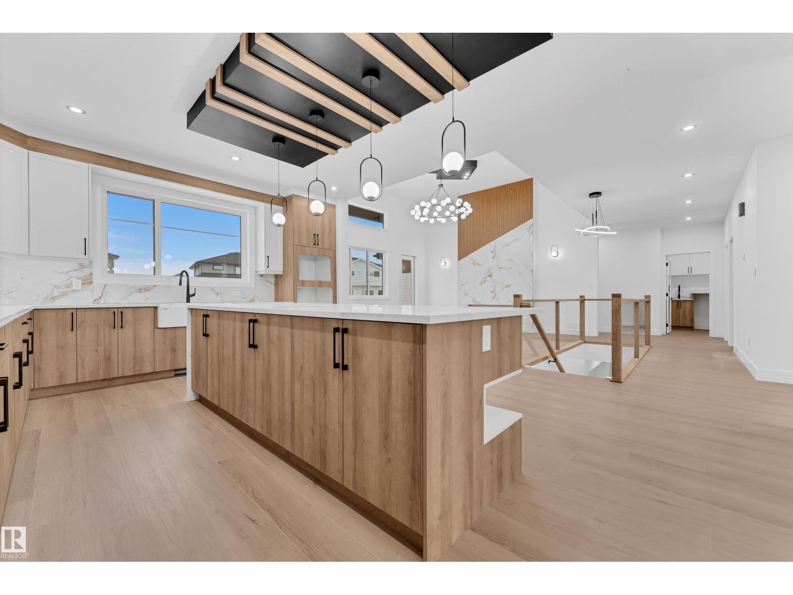 TRIPLE-CAR GARAGE | RV Parking | FULLY UPGRADED | Backing to walking trail | CUSTOM-BUILT SHOWSTOPPER BUNGALOW. Beautifully designed bungalow with a functional layout. The upper level features a modern two-tone kitchen extended to the dining area and a bright living room with balcony access. Two bedrooms upstairs including a spacious primary with walk-in closet, 5-pc ensuite and balcony access. Both bedrooms feature drop ceilings and feature walls. Laundry and a 4-pc bath complete the main level. The fully finished basement offers a large living area with bar, two additional bedrooms, a shared bath, and a storage room. Offering space, style, and versatility—this move-in ready home is truly a must-see. (id:63190)