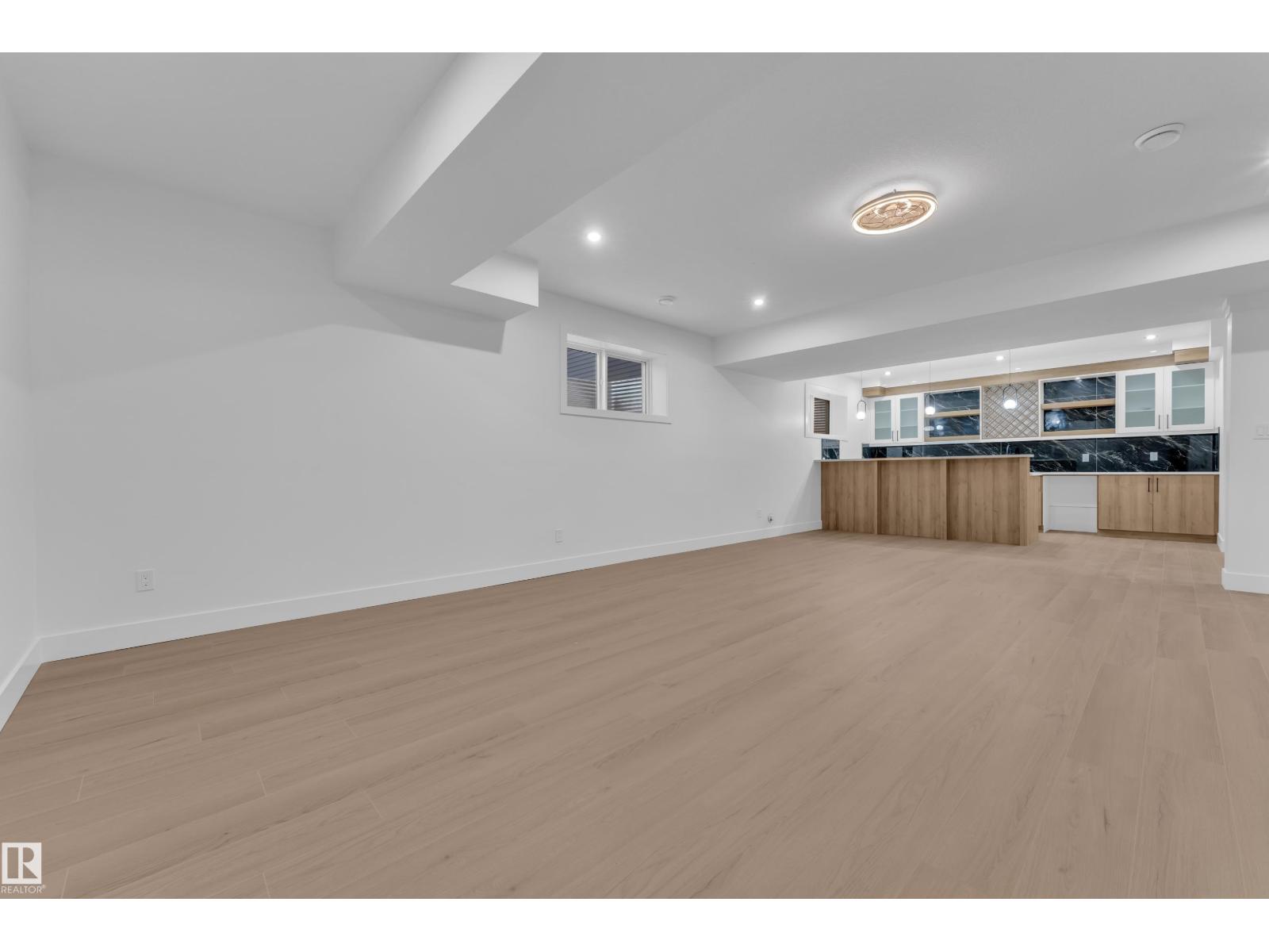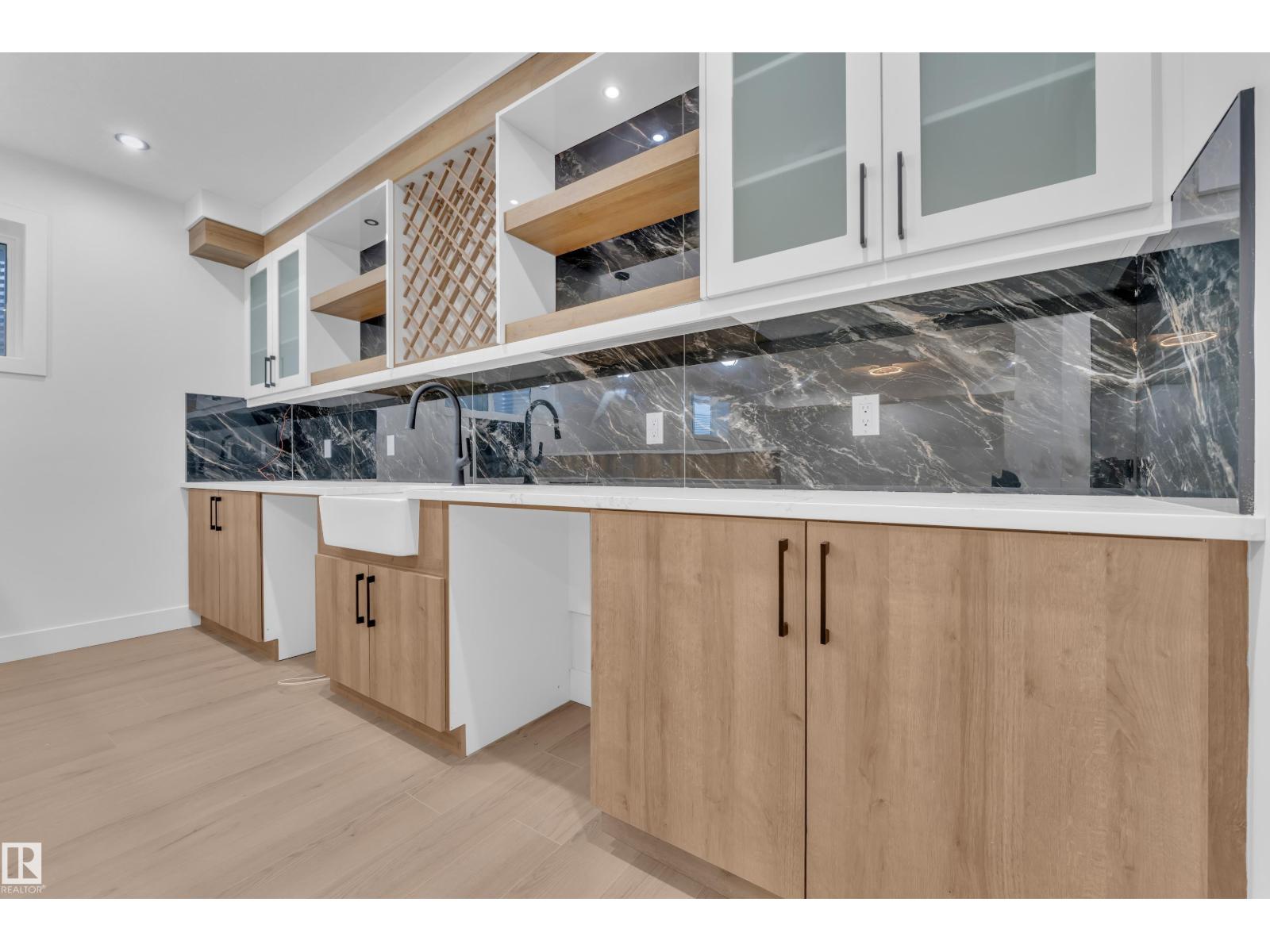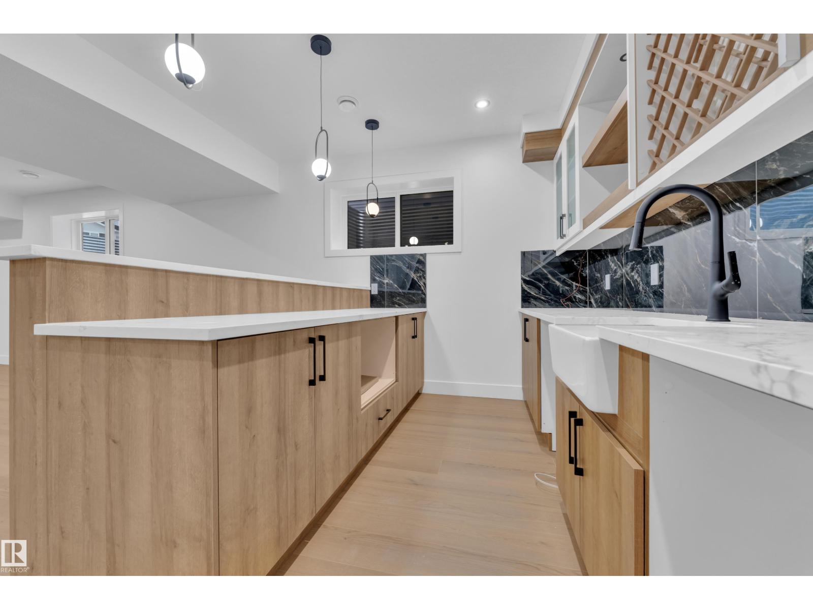TRIPLE-CAR GARAGE | RV Parking | FULLY UPGRADED | Backing to walking trail | CUSTOM-BUILT SHOWSTOPPER BUNGALOW. Beautifully designed bungalow with a functional layout. The upper level features a modern two-tone kitchen extended to the dining area and a bright living room with balcony access. Two bedrooms upstairs including a spacious primary with walk-in closet, 5-pc ensuite and balcony access. Both bedrooms feature drop ceilings and feature walls. Laundry and a 4-pc bath complete the main level. The fully finished basement offers a large living area with bar, two additional bedrooms, a shared bath, and a storage room. Offering space, style, and versatility—this move-in ready home is truly a must-see. (id:63190)