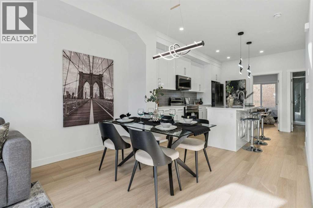 NO CONDO FEES UNTIL 2028 | IMMEDIATE POSSESSION | 4 BED + DEN, 4 BATH TOWNHOME | TOTAL 1836 SF | MAIN-FLOOR PRIVATE GUEST SUITE | Welcome to Unit 203 at Saddlecrest Living, a brand-new townhome in a 43-unit community in Calgary’s Northeast. This spacious home offers 4 bedrooms, a den, and 4 full bathrooms across three levels with an attached garage. A key feature is the private guest suite on the main floor with its own full bathroom and separate rear entrance, ideal for extended family, guests, or potential rental income. The main living area features an open layout with 9-foot ceilings and large triple-pane windows that bring in natural light while improving energy efficiency. The kitchen includes floor-to-ceiling cabinetry, quartz countertops and stainless steel appliances for a clean and modern design. Upstairs bedrooms provide comfortable space for families, while luxury vinyl plank flooring on the main level offers durability and easy maintenance. The exterior uses durable stucco and Hardie siding designed for Calgary’s climate, providing strong hail protection and a major advantage for homeowners and insurance considerations. Saddlecrest Living is located in a family-friendly community close to schools, parks, Saddletowne LRT, shopping, medical clinics and fitness centres, with quick access to Stoney Trail, Calgary International Airport, Costco, CrossIron Mills and New Horizon Mall. Opportunities to purchase a brand-new four-bedroom townhome at this price in the community are extremely limited. Images are of a similar middle unit in the same building and are for illustrative purposes only. (id:63190)