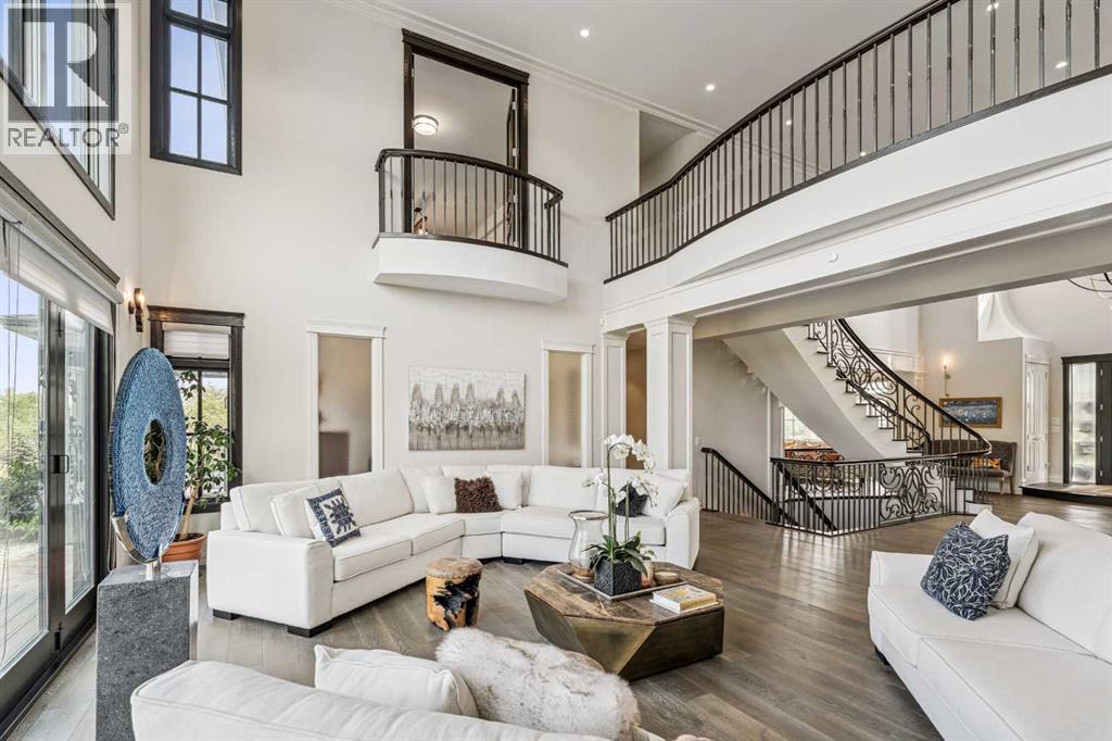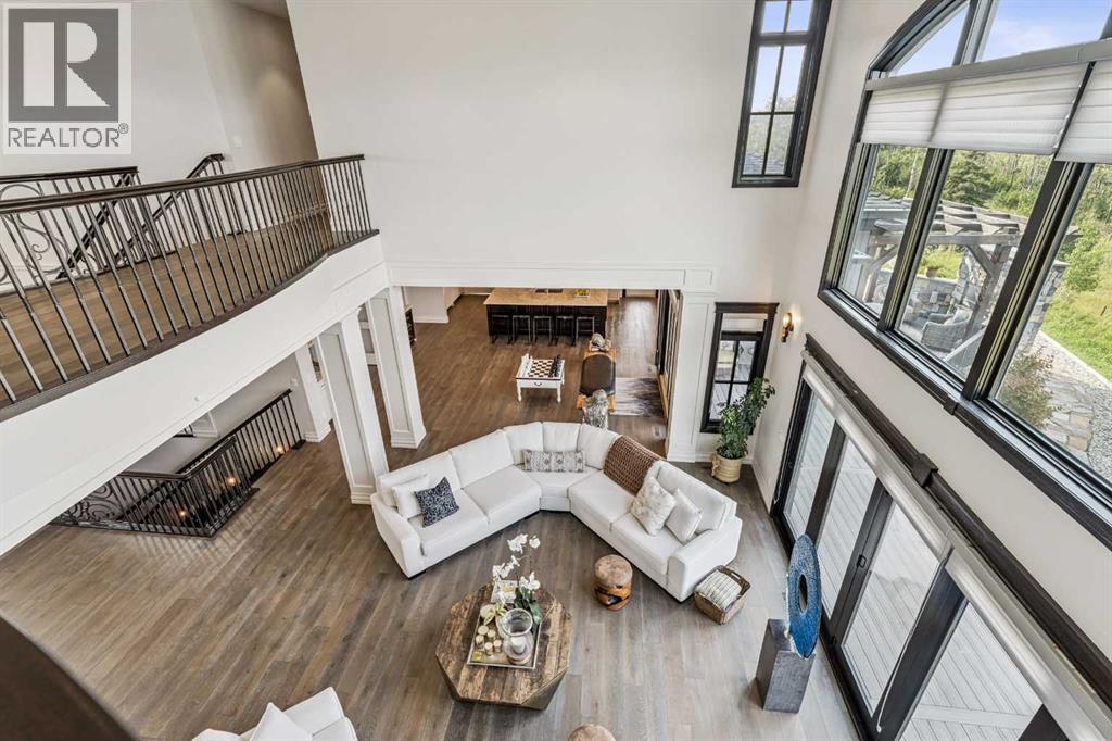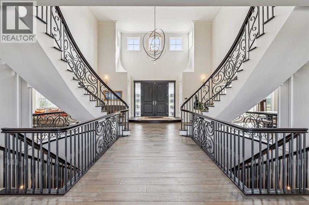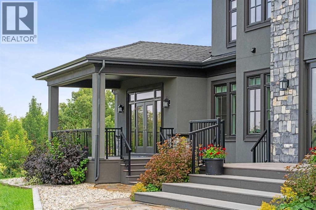 Introducing 19 McKendrick Point, an extraordinary luxury estate in the prestigious Springbank community, set on 2.3 acres and offering nearly 12,000 sq. ft. of exceptional living space. Built in 2020 by Your Property Corp, this custom-designed residence seamlessly blends elegant everyday living with grand-scale entertaining, both indoors and outdoors. Guests are welcomed through a dramatic 20-foot double-height foyer with floor-to-ceiling windows, setting the tone for the refined craftsmanship throughout. The main level features an impressive open-concept family room with panoramic views and direct access to a wraparound deck, perfect for hosting gatherings or enjoying peaceful moments with family.At the heart of the home is a chef-inspired gourmet kitchen featuring custom ceiling-height cabinetry, a large quartz island, and premium appliances including a Miele panelled fridge/freezer, as well as additional Wolf and Bosch appliances. A fully equipped spice kitchen with walk-in pantry provides added convenience for entertaining and everyday cooking. Luxury and comfort continue throughout the home with thoughtful features such as solar-powered blinds, central air conditioning, heated basement floors, ceramic-tiled bathrooms and laundry rooms, and a central vacuum system.The stunning primary retreat offers the ultimate in privacy and relaxation, complete with a gas fireplace, private office, direct deck access, and a spa-inspired ensuite featuring a soaking tub, dual vanities, heated floors, and a spacious walk-in closet with custom built-ins and makeup vanity.Designed for flexibility and family living, the home includes 7+1 ensuite bedrooms, a nanny room with full bathroom, dual mudrooms for convenient garage access, and laundry rooms on both the main and upper floors, with a rough-in for an additional laundry in the basement. The upper-level lounge provides a cozy space for reading, studying, or quiet relaxation.Outside, the property continues to impress with a cozy outdoor fireplace, expansive deck areas, and beautifully landscaped grounds. Car enthusiasts will appreciate the heated seven-car garage with dual-side access, offering exceptional space for vehicles, hobbies, or storage.Modern efficiency features include a solar-vented roof and rain-sensor sprinkler system, adding both sustainability and convenience. Families will appreciate proximity to top private & public schools including Calgary French & International School, Webber Academy, Calgary Academy, F.E. Osborne School, and Olympic Heights School. Recreation and amenities such as WinSport (Canada Olympic Park), Bowmont Park, the Bow River pathways, Calgary Farmers’ Market, and excellent dining and shopping options are all within easy reach. Ideally located just 15 minutes from Downtown Calgary and within easy driving distance to Canmore and Banff, this exceptional estate offers the perfect balance of luxurious country living and convenient city access (id:63190)