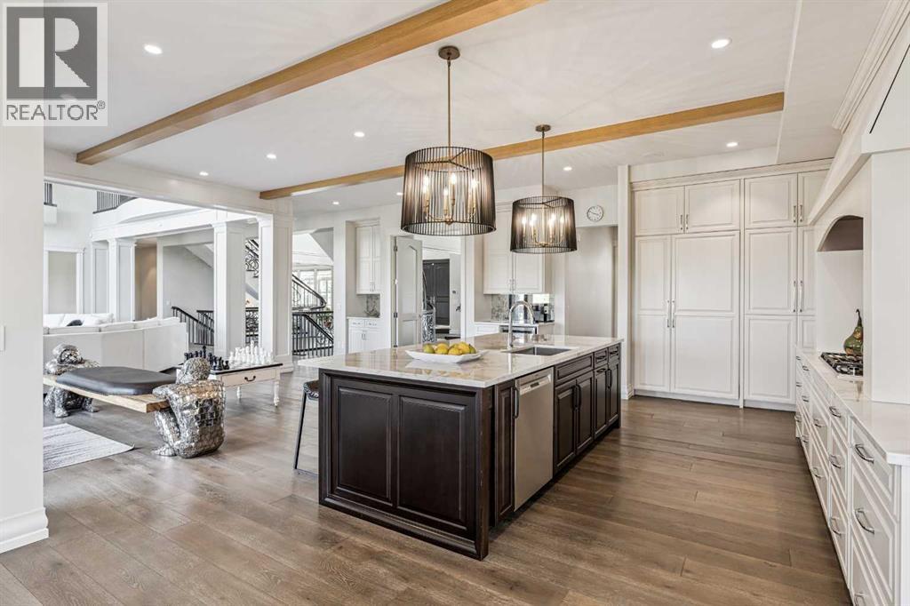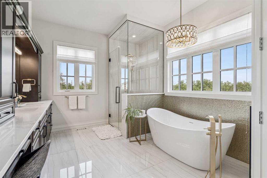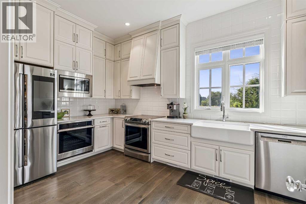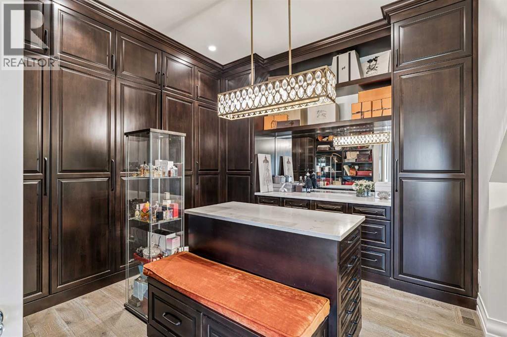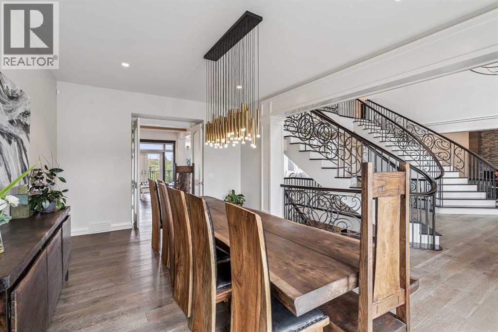 Introducing 19 McKendrick Point, an extraordinary luxury estate in the prestigious Springbank community, set on 2.3 acres and offering nearly 12,000 sq. ft. of exceptional living space. Built in 2020 by Your Property Corp, this custom-designed residence seamlessly blends elegant everyday living with grand-scale entertaining, both indoors and outdoors. Guests are welcomed through a dramatic 20-foot double-height foyer with floor-to-ceiling windows, setting the tone for the refined craftsmanship throughout. The main level features an impressive open-concept family room with panoramic views and direct access to a wraparound deck, perfect for hosting gatherings or enjoying peaceful moments with family.At the heart of the home is a chef-inspired gourmet kitchen featuring custom ceiling-height cabinetry, a large quartz island, and premium appliances including a Miele panelled fridge/freezer, as well as additional Wolf and Bosch appliances. A fully equipped spice kitchen with walk-in pantry provides added convenience for entertaining and everyday cooking. Luxury and comfort continue throughout the home with thoughtful features such as solar-powered blinds, central air conditioning, heated basement floors, ceramic-tiled bathrooms and laundry rooms, and a central vacuum system.The stunning primary retreat offers the ultimate in privacy and relaxation, complete with a gas fireplace, private office, direct deck access, and a spa-inspired ensuite featuring a soaking tub, dual vanities, heated floors, and a spacious walk-in closet with custom built-ins and makeup vanity.Designed for flexibility and family living, the home includes 7+1 ensuite bedrooms, a nanny room with full bathroom, dual mudrooms for convenient garage access, and laundry rooms on both the main and upper floors, with a rough-in for an additional laundry in the basement. The upper-level lounge provides a cozy space for reading, studying, or quiet relaxation.Outside, the property continues to impress with a cozy outdoor fireplace, expansive deck areas, and beautifully landscaped grounds. Car enthusiasts will appreciate the heated seven-car garage with dual-side access, offering exceptional space for vehicles, hobbies, or storage.Modern efficiency features include a solar-vented roof and rain-sensor sprinkler system, adding both sustainability and convenience. Families will appreciate proximity to top private & public schools including Calgary French & International School, Webber Academy, Calgary Academy, F.E. Osborne School, and Olympic Heights School. Recreation and amenities such as WinSport (Canada Olympic Park), Bowmont Park, the Bow River pathways, Calgary Farmers’ Market, and excellent dining and shopping options are all within easy reach. Ideally located just 15 minutes from Downtown Calgary and within easy driving distance to Canmore and Banff, this exceptional estate offers the perfect balance of luxurious country living and convenient city access (id:63190)
