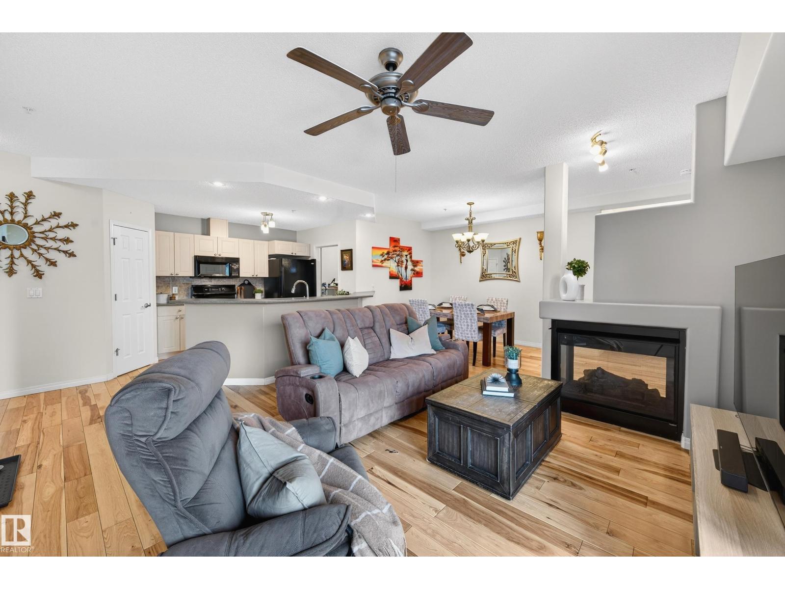 Welcome to OSHEANNA with this beautifully appointed 2-bed+Den, 2 FULL bath condo offering exceptional space, comfort & functionality — complete with two heated, underground parking stalls & assigned storage locker! Step inside to discover bright, 9 ft open-concept living areas w/generously sized rooms that create an inviting & airy feel. The spacious living room is ideal for entertaining or relaxing, highlighted by 3-sided gas F/P & expansive windows that flood the space with natural light. Both bedrooms are thoughtfully designed as comfortable retreats, featuring large windows & ample closet space. The primary suite includes a private ensuite bath with modern fixtures & stylish finishes, providing the perfect blend of comfort & privacy. A well-appointed second bathroom offers added convenience for guests or family members. This unit combines space & practical amenities in charming neighbhourhood — an excellent opportunity for those seeking comfort & convenience in one impressive package. MUST SEE!!! (id:63190)
