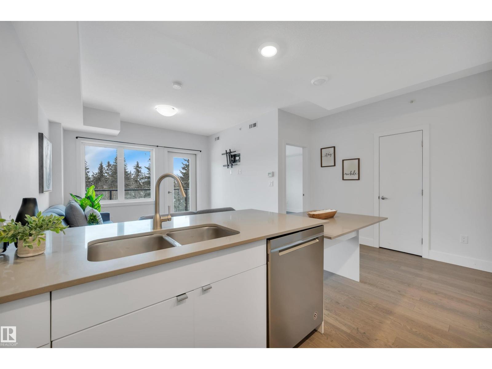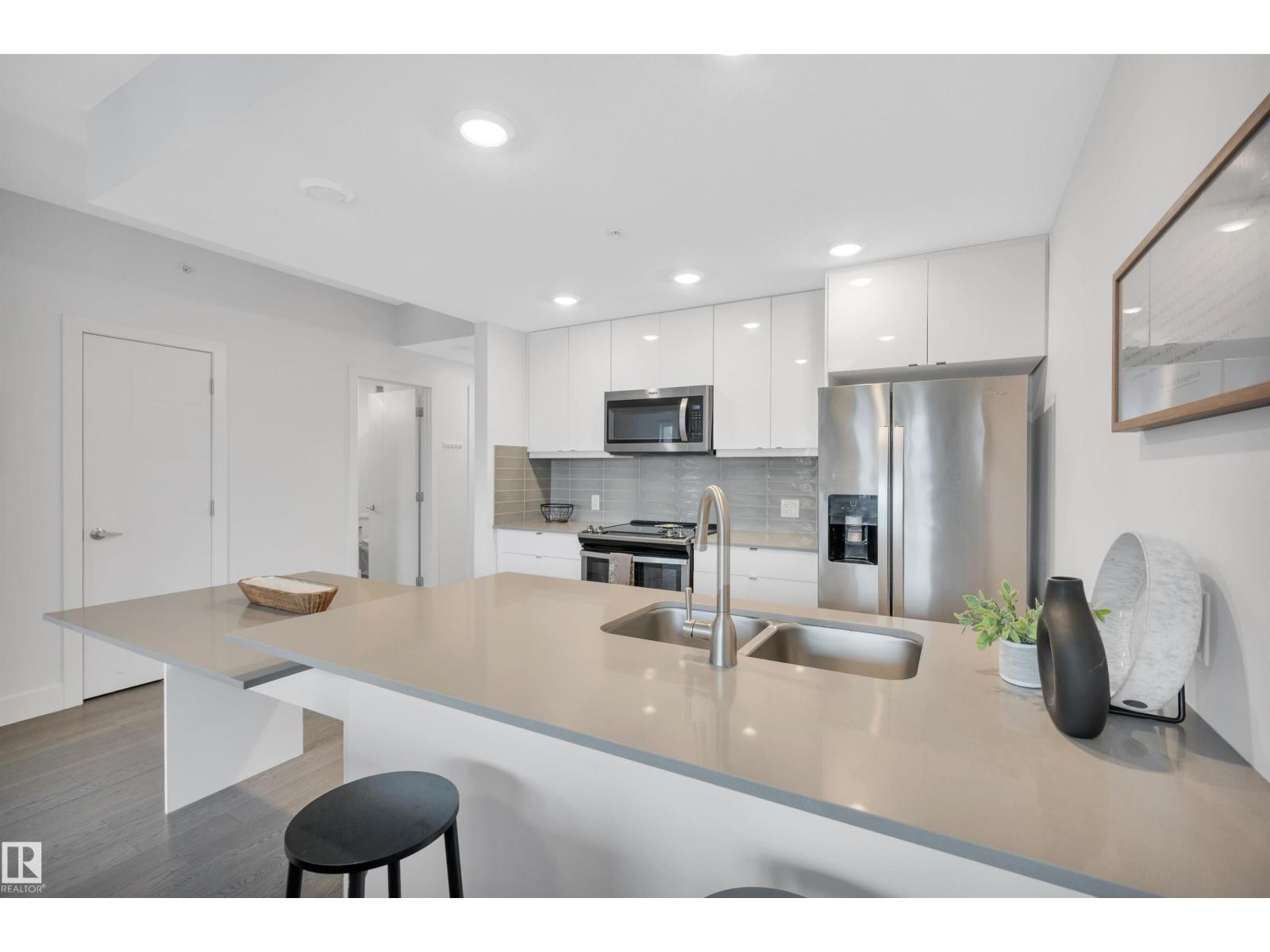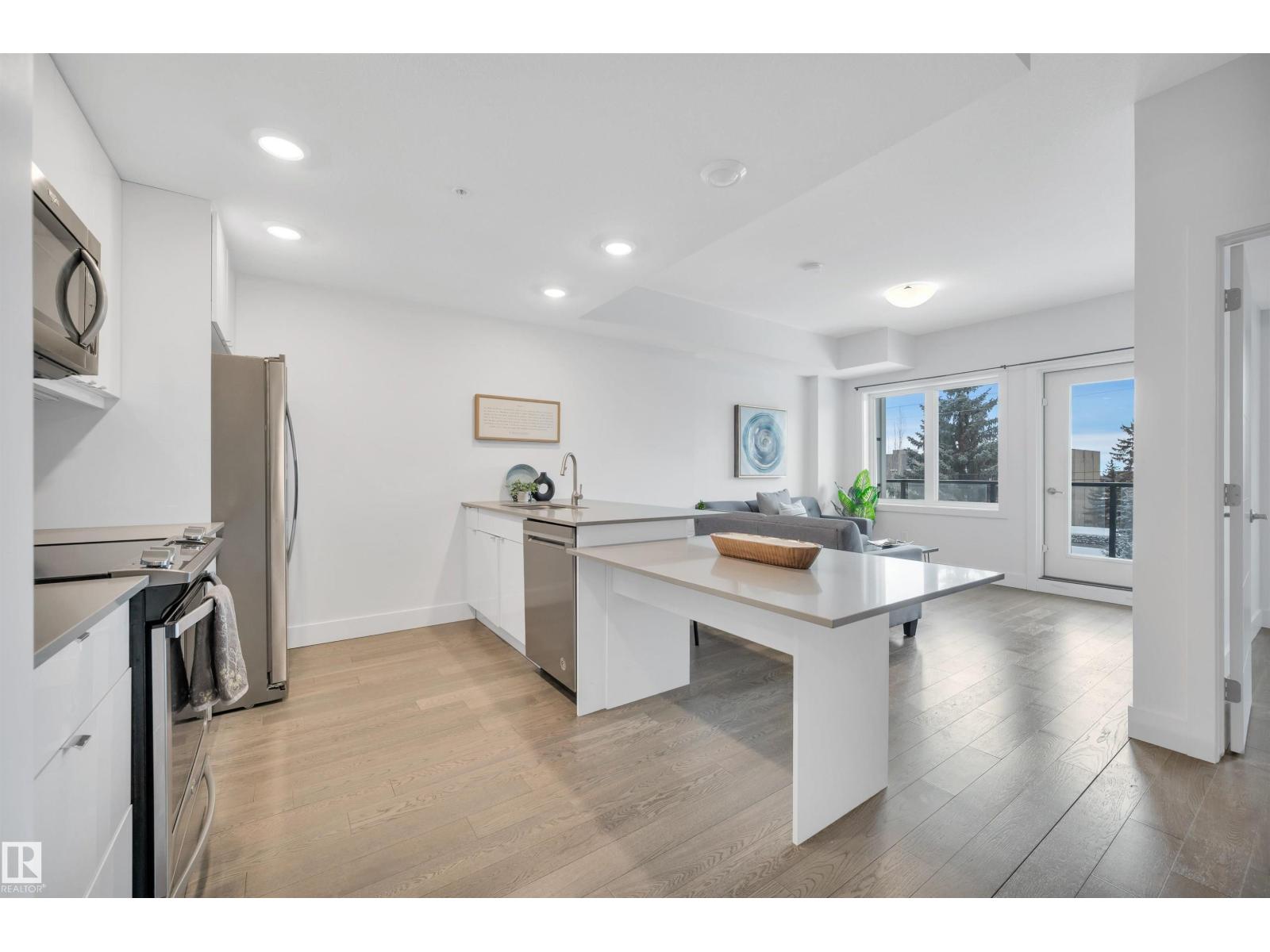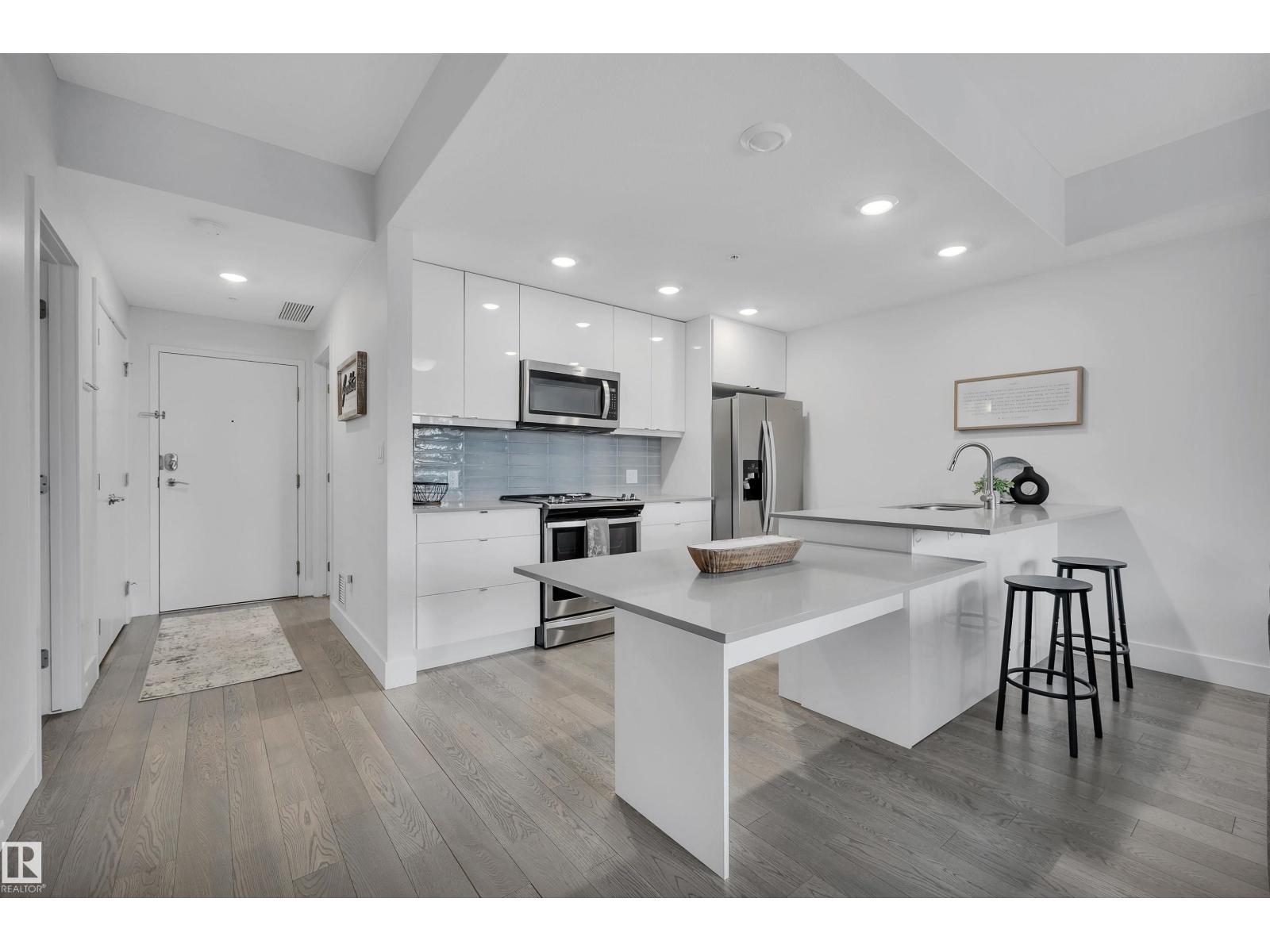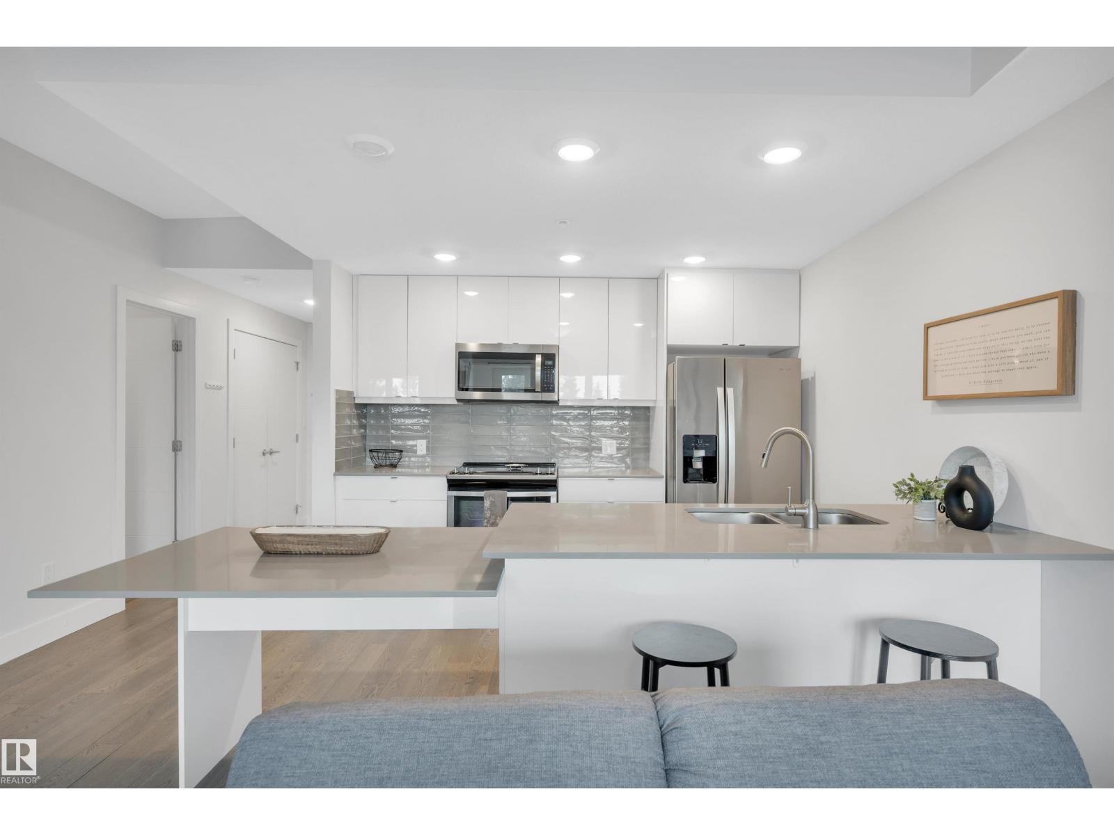 Welcome to Cascade Luxury Condos, where comfort, convenience and community come together. Located in the heart of Bonnie Doon's charming French Quarter, this solid CONCRETE and STEEL building offers quiet and secure living. This beautifully maintained unit features modern quartz countertops throughout, stainless steel appliances and a separate laundry and storage room for added functionality. Enjoy the convenience of heated underground parking, ideally located just steps from the elevator access door. Step outside and experience one of Edmonton's most walkable and vibrant areas. You're minutes from downtown and within easy reach of Campus Saint-Jean, the scenic trails of Mill Creek Ravine and the shops, cafes and restaurants along Whyte Avenue. Whether you enjoy nature, dining or city life everything you need is close by. This home offers low-maintenance living in a welcoming, connected community! (id:63190)