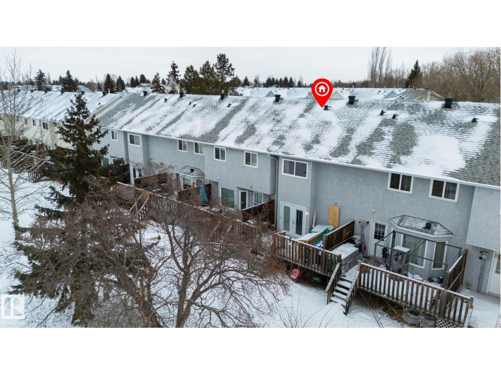 Super cute & affordable, with a fantastic GREENSPACE view! Located in one of the best spots in the entire complex, this charming townhouse is perfectly situated to capture those unobstructed evening sunsets off your deck! It features a wonderful layout, lovely living room, spacious kitchen with ample cupboard & countertop space, side pantry & separate dinette, 3 sizeable bedrooms including a king-sized owner’s suite with dual closets, 3 total bathrooms (one on every level!), and a fully-finished basement with a rec room, cozy gas fireplace, & a den. With a desirable WEST-FACING exposure and walking trails right outside your door, this home is complete with 2 parking stalls, and is steps away from playgrounds, schools, & amenities. (id:63190)