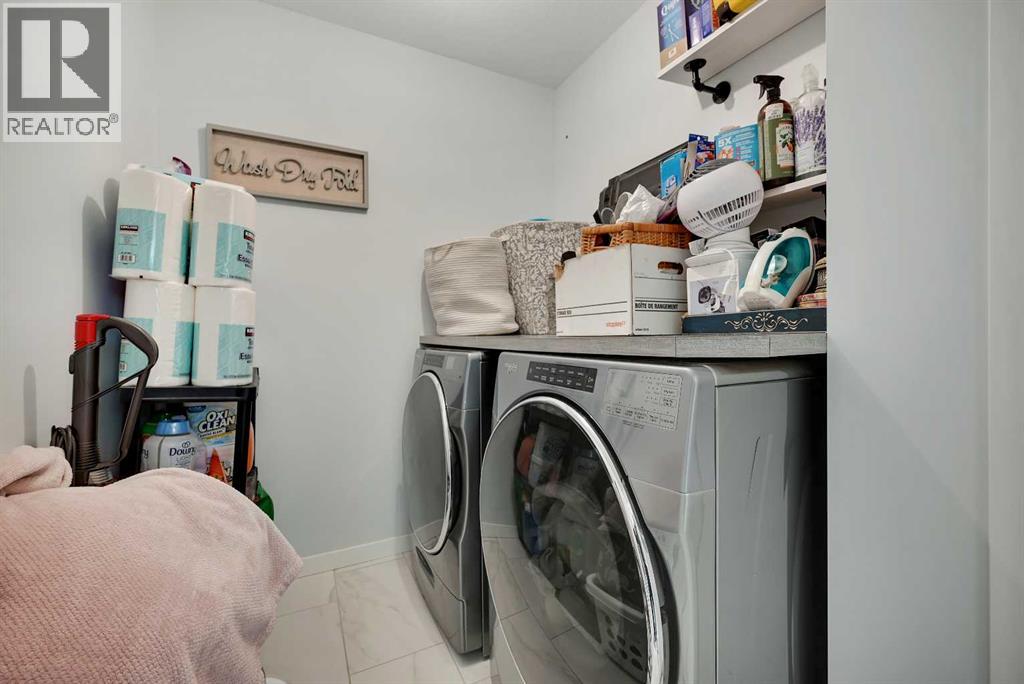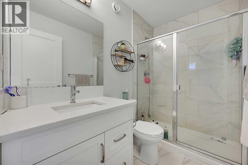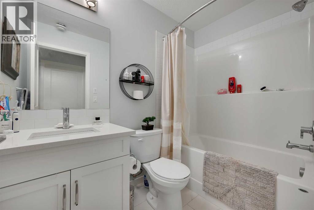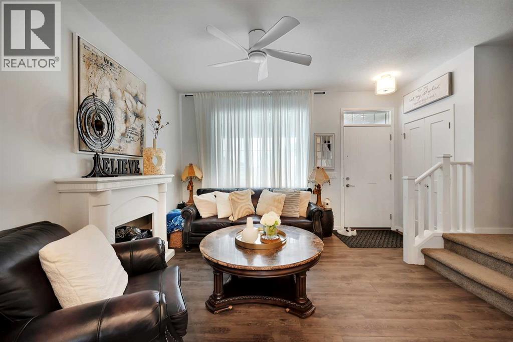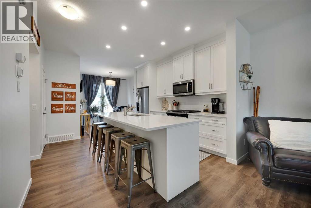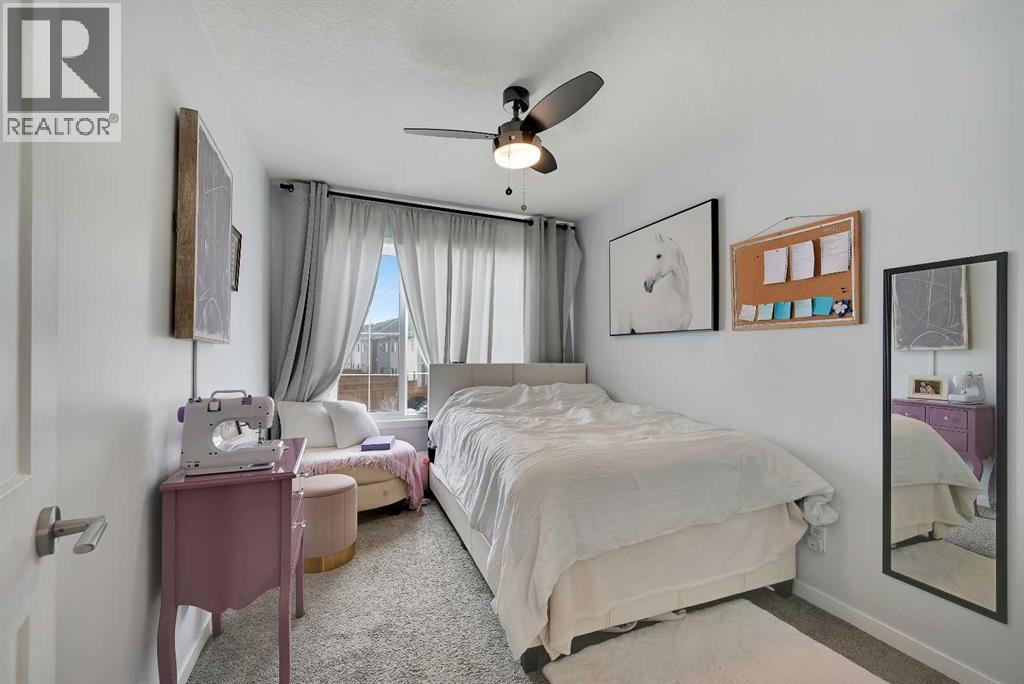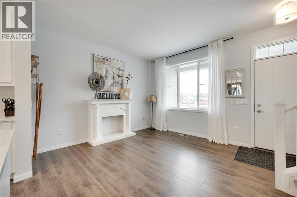 Stunning Fully Upgraded Two-Storey Home in Crossfield (1,905sq ft Total Developed) This beautiful, fully finished two-storey home at 221 Ellen Way combines modern style, thoughtful upgrades, and exceptional curb appeal with a charming front porch, located in the welcoming and growing community of Crossfield. This Dream Built Homes “Noah” model features over $40,000 in upgrades and is designed to impress. Step inside to an airy main floor highlighted by 9-foot ceilings, luxury vinyl plank flooring, and large triple-pane windows that flood the home with natural light. A charming faux fireplace creates a cozy focal point, while the upgraded kitchen is a striking centerpiece, featuring a 9-foot quartz island, floor-to-ceiling shaker-style cabinetry, stainless steel appliances, and a gas range. Soft-close cabinetry and a walk-in pantry provide both style and functionality. The main floor also includes a rear dining area perfect for entertaining and a convenient 2-piece powder room. Upstairs, the spacious primary suite comfortably fits a king-sized bed and includes a walk-in closet and stylish barn door leading to the ensuite with a stand-up shower tiled to the ceiling. Two additional well-sized bedrooms offer beautiful mountain views, complemented by a full 4-piece bathroom and a laundry room for added convenience. The fully finished lower level provides a versatile family or recreation room, an additional bedroom, and a 4-piece bathroom, ideal for guests, extended family, or a home office. Step outside to the back deck, overlooking the nearly finished, brand-new fenced backyard, offering ample room to relax, entertain, or create your dream outdoor space. Residents of Crossfield enjoy exceptional community amenities, including garden boxes, approximately 4 km of walking trails, 5 acres of protected wetlands, and over 20 acres of green space. Outdoor enthusiasts will appreciate the hockey rink, skateboard park, sports fields, stocked fishing pond, splash park, playground s, and picnic areas with fire pits. This home presents an exceptional opportunity to own a move-in-ready, fully upgraded home in a thriving, family-friendly community. Thoughtful design, quality finishes, and flexible living space throughout make it perfect for modern family living, entertaining, or a home office. (id:63190)