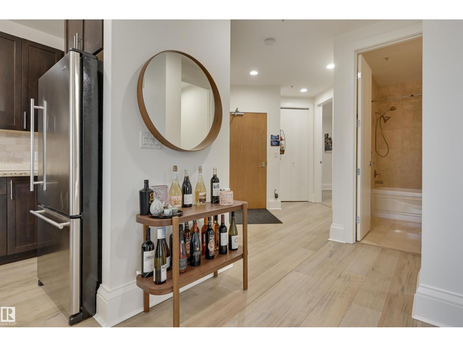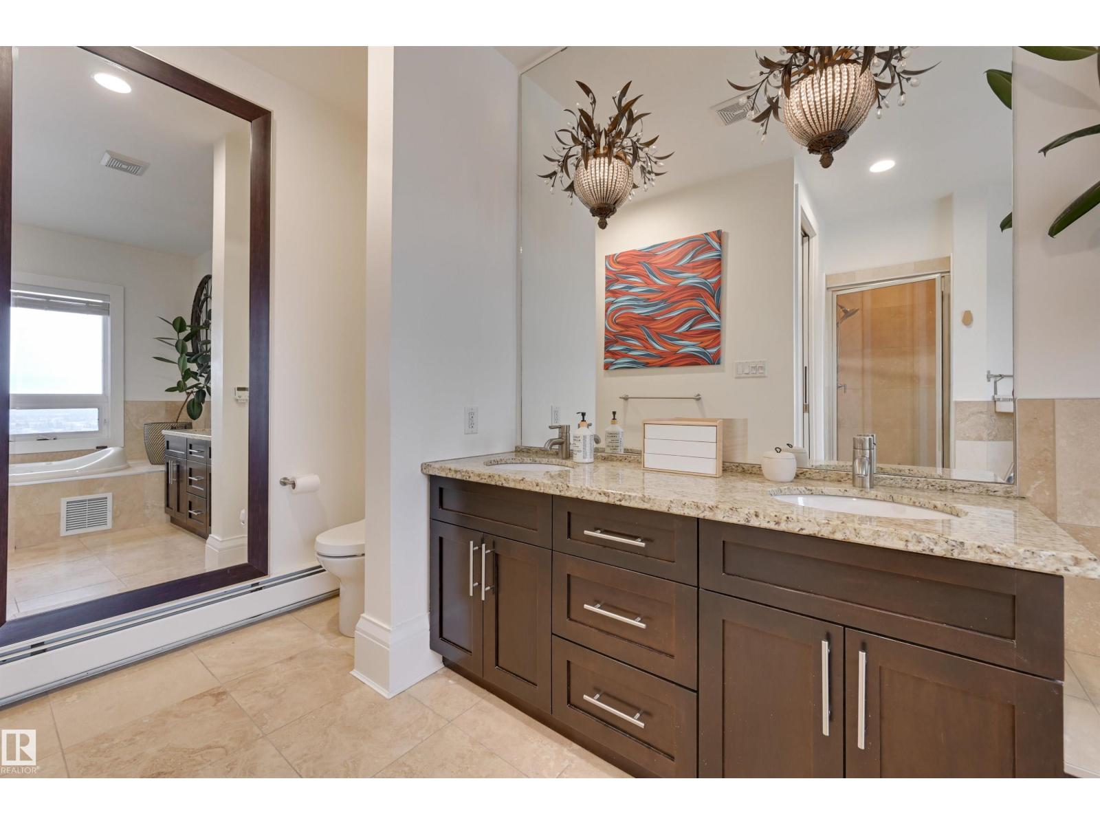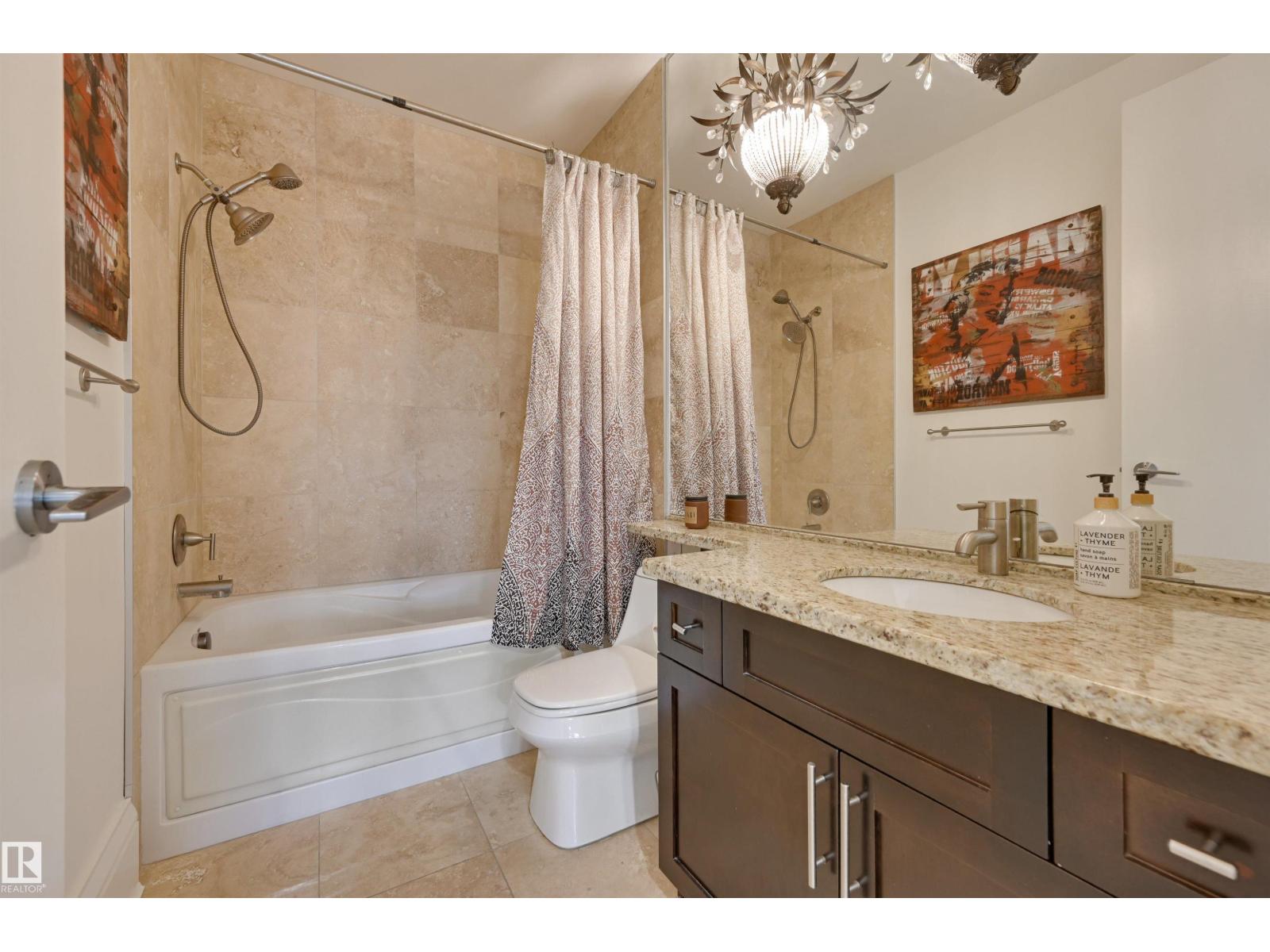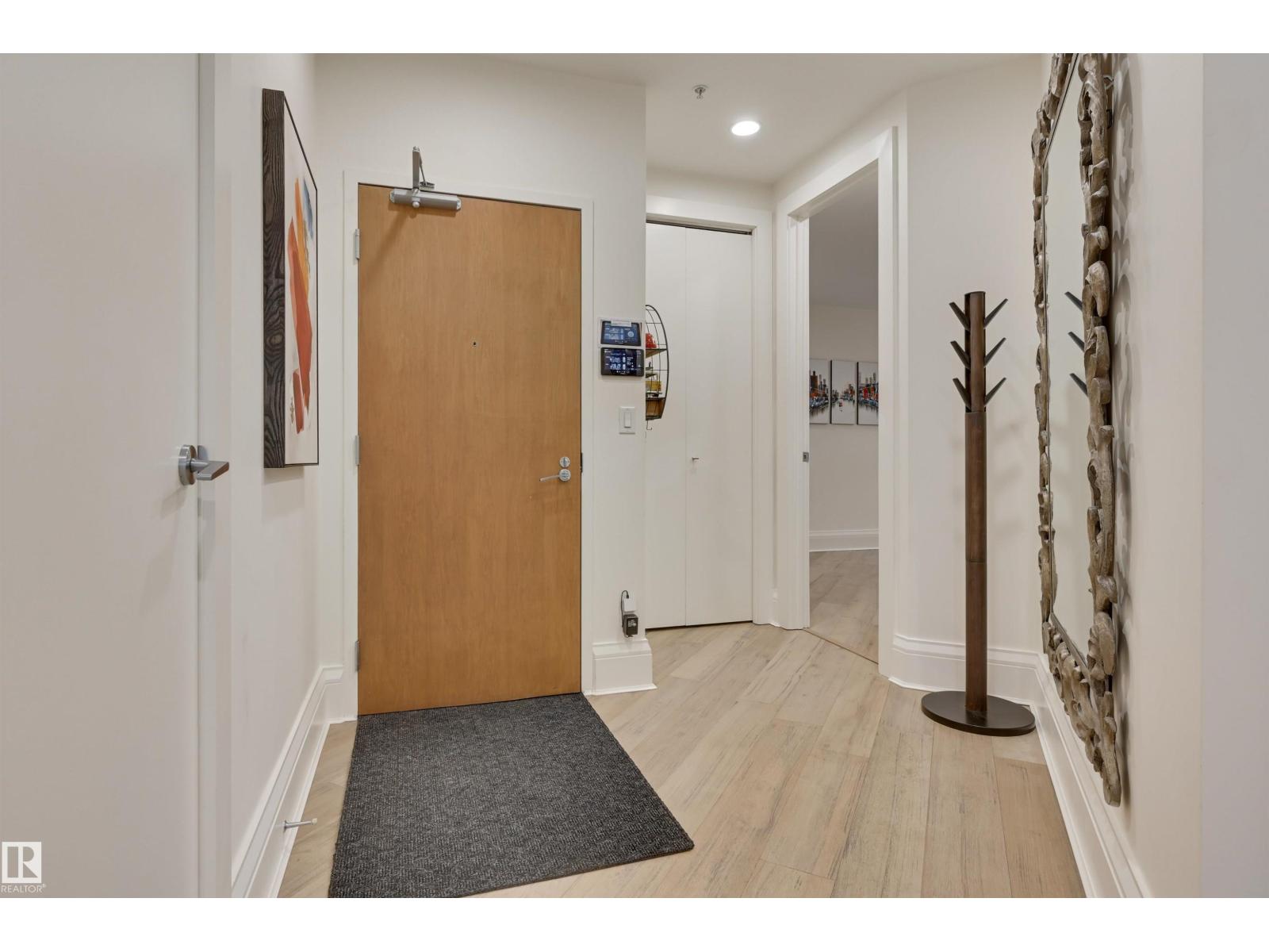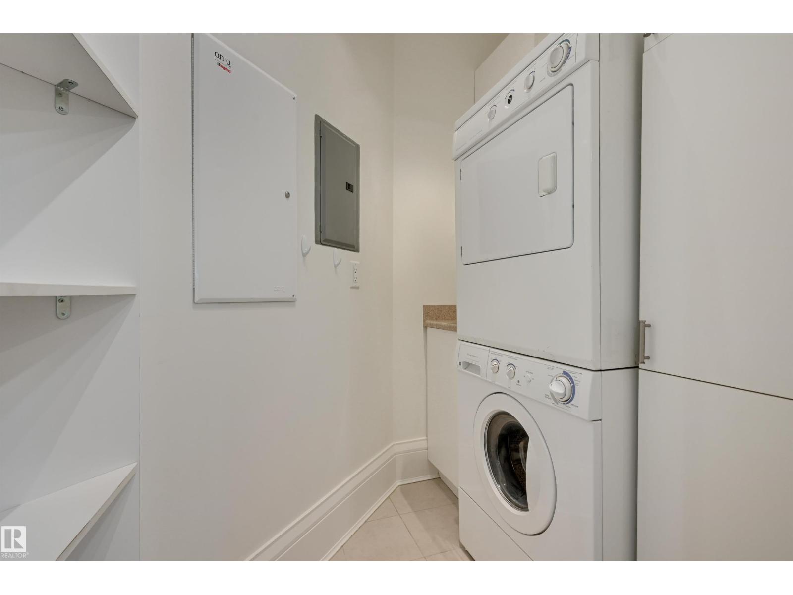 Experience elevated living in this luxurious 1,286 sq.ft. sub-penthouse. This impressive 2-bed, 2-bath residence is one of only three units on the 28th floor. The condo comes with two underground parking stalls (tandem) and a large storage cage. Perfect for entertaining is the expansive upgraded living area, highlighted by wide-plank hardwood floors, air conditioning, two balconies, and a cozy gas fireplace. The open kitchen showcases granite countertops, upgraded stainless steel appliances, and breakfast bar. Spacious primary bedroom with it's own balcony and walk in custom closet while the ensuite adds a steam shower and Japanese bidet toilet for spa-level comfort. Smart home features elevate convenience with LED pot lights, a video doorbell, upgraded fixtures, and integrated controls for lighting, music, and more. All of this in an unbeatable 104 St. location—steps to the outdoor farmers market, Ice District, top restaurants, and cafes. Move-in ready and designed to impress! (id:63190)