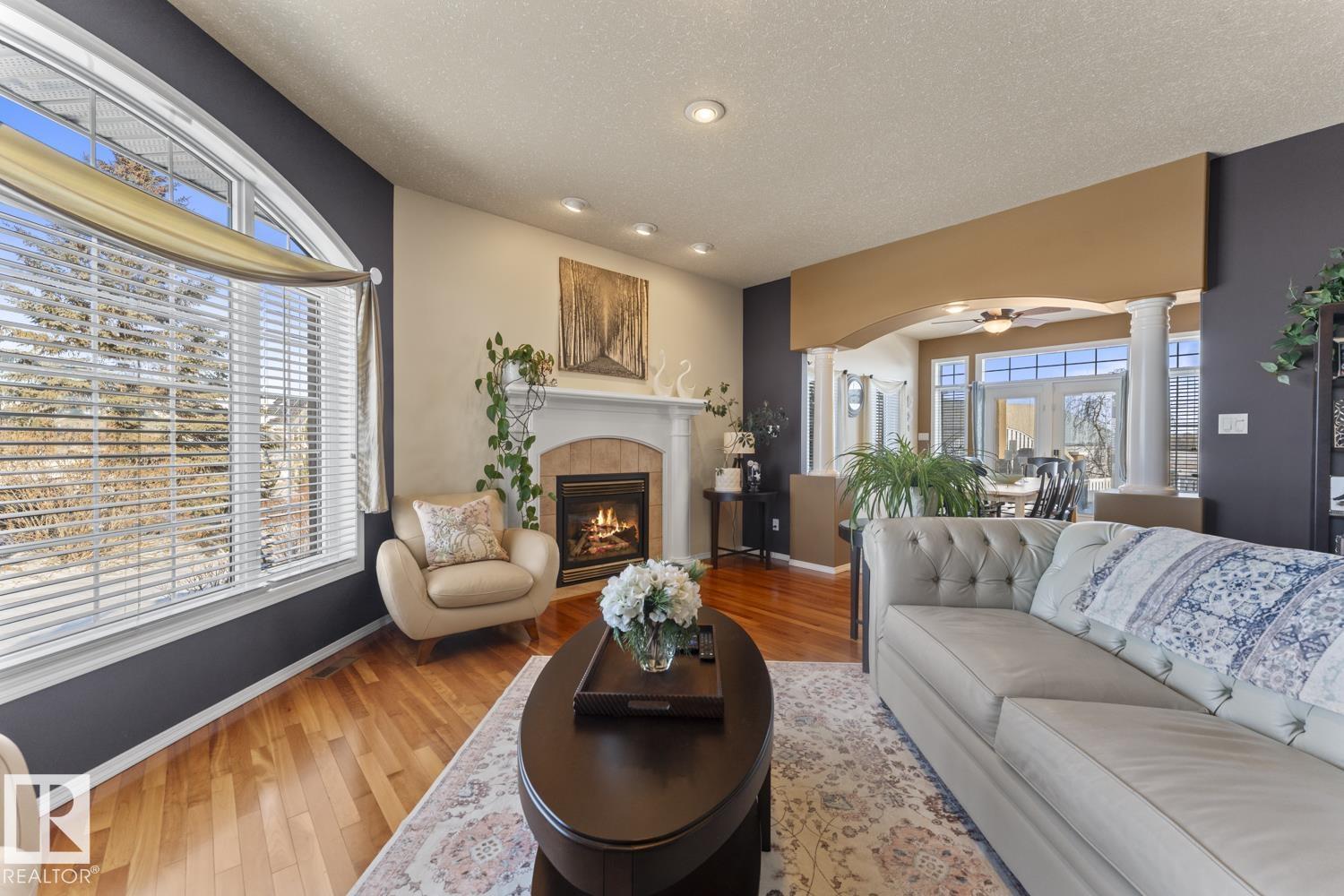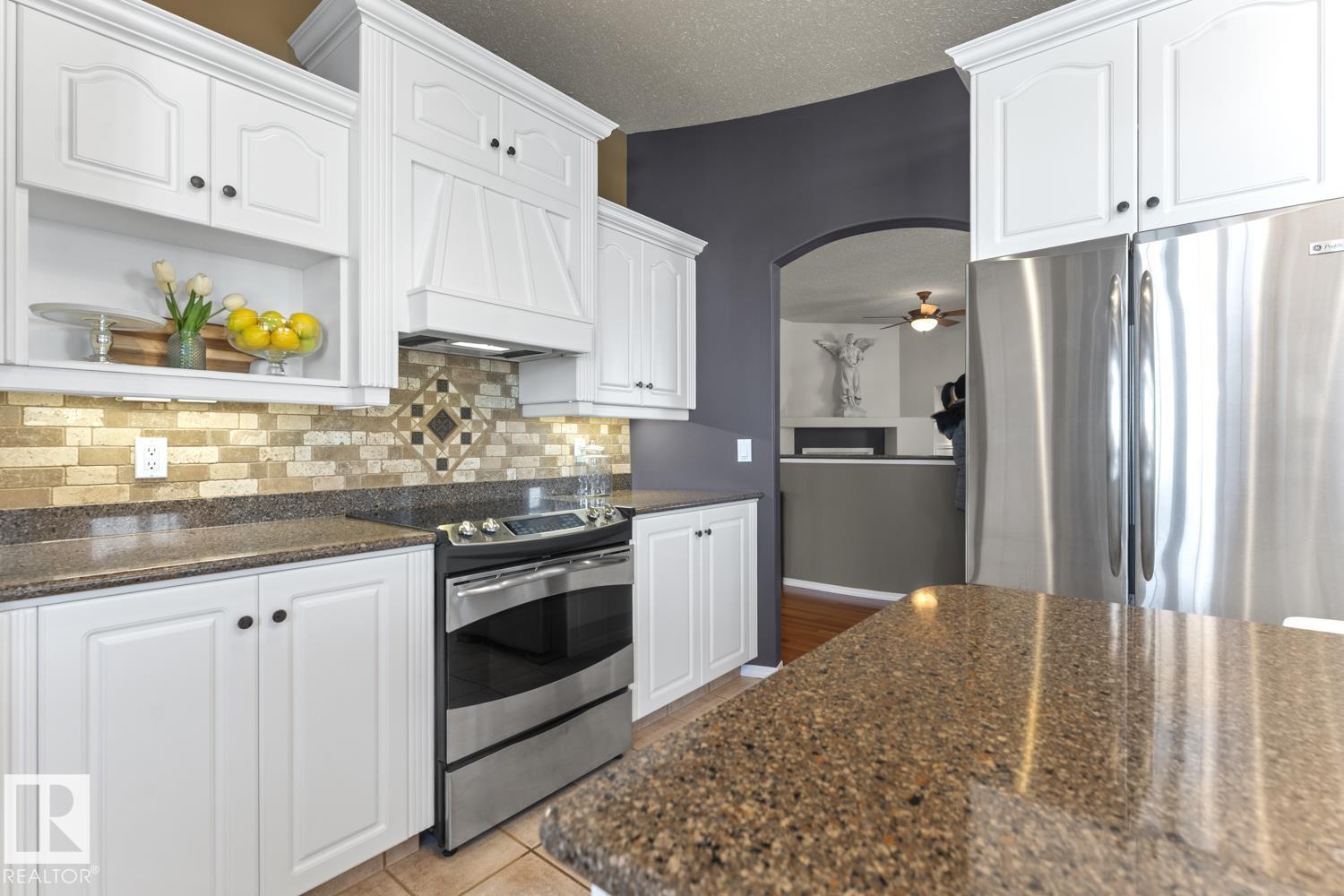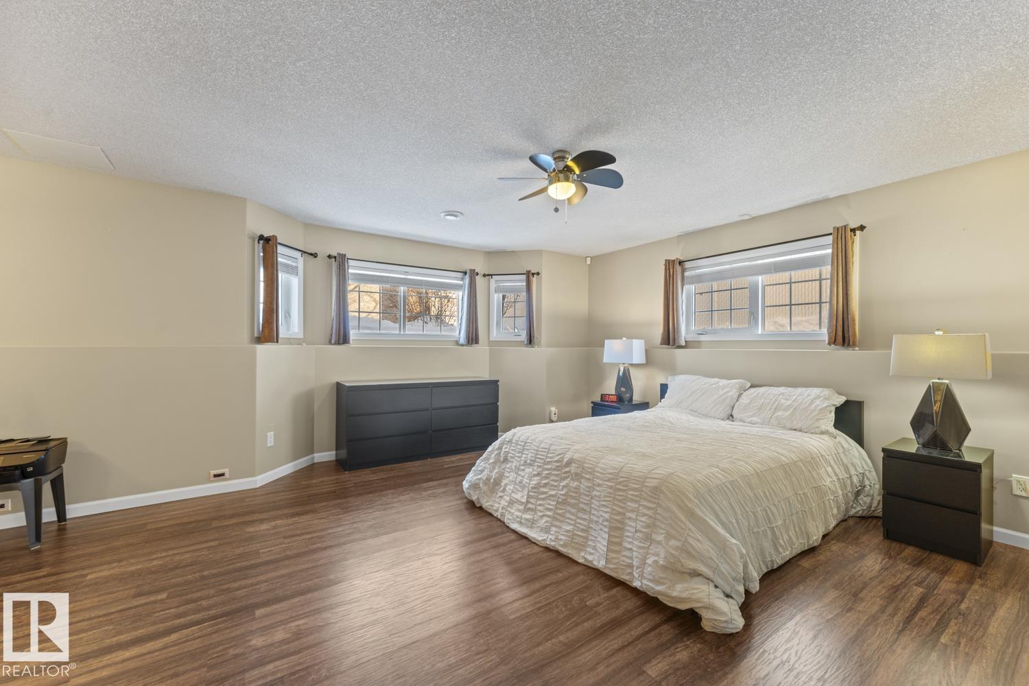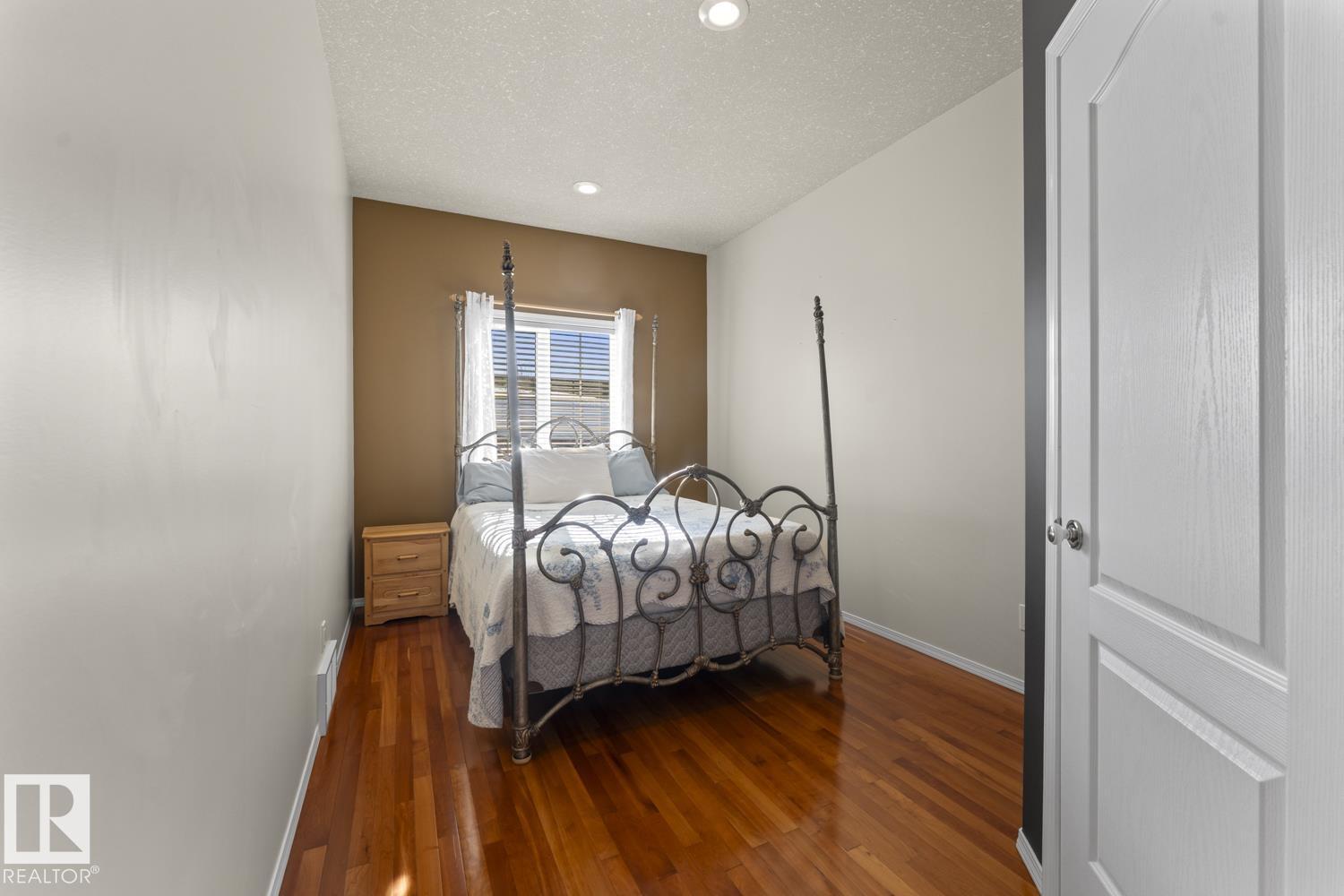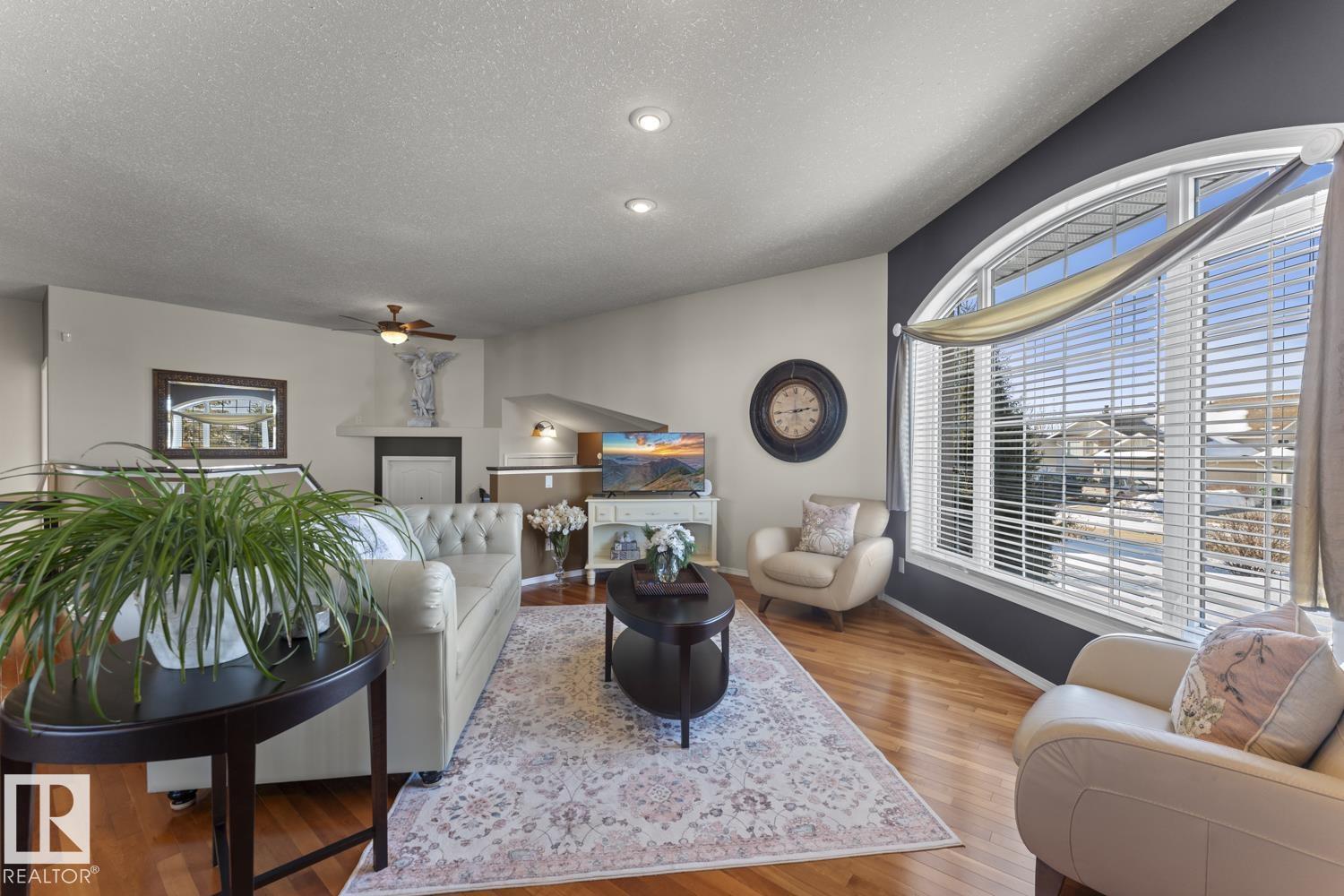 This custom-built home sits on two landscaped lots and offers exceptional space inside and out. The main floor features a modern kitchen with quartz countertops, stainless steel appliances, and a bright, open living area with a fireplace. The primary bedroom includes a 4-piece ensuite with jacuzzi tub, separate 4-ft shower, and his-and-hers walk-in closets. A second bedroom can function as a home office. The lower level has in-floor heating, a large family/games room with wood stove, full wet bar, a spacious third bedroom with access to a 3-piece bathroom, plus dedicated laundry and storage areas. An oversized heated double attached garage and an additional heated double detached garage provide ample parking and workspace. Professionally landscaped yard with underground sprinklers and mature trees completes this one-of-a-kind property. (id:63190)