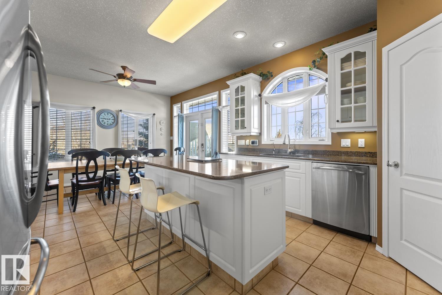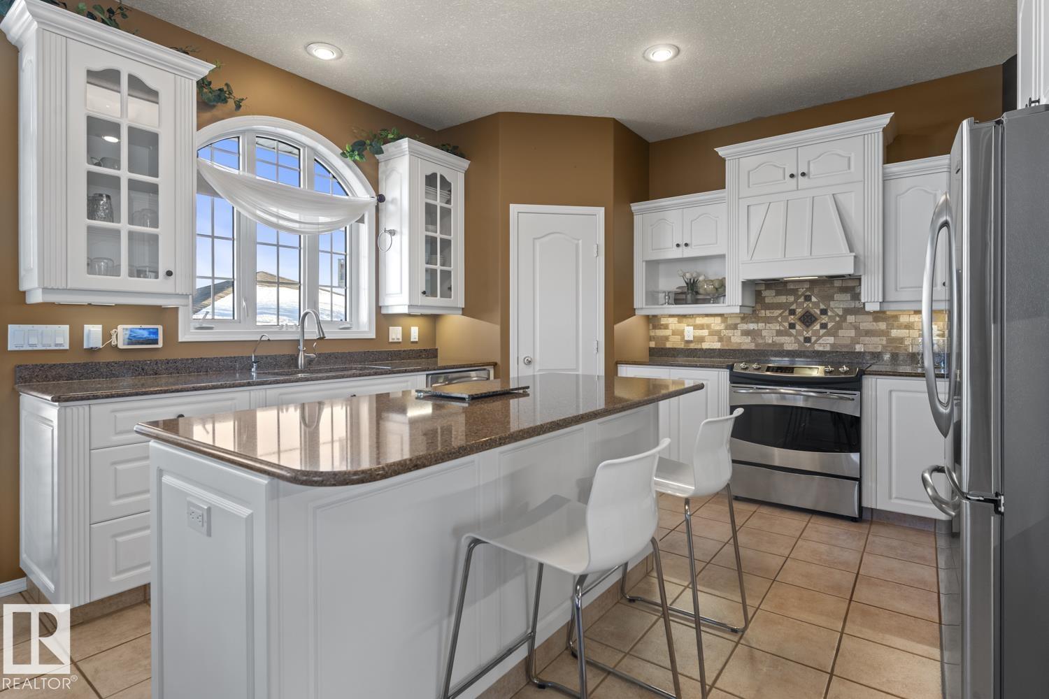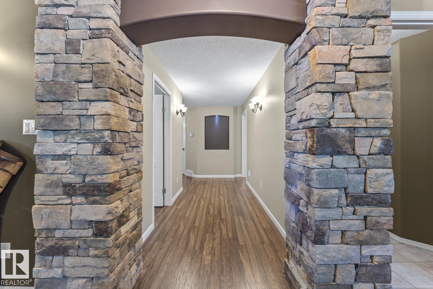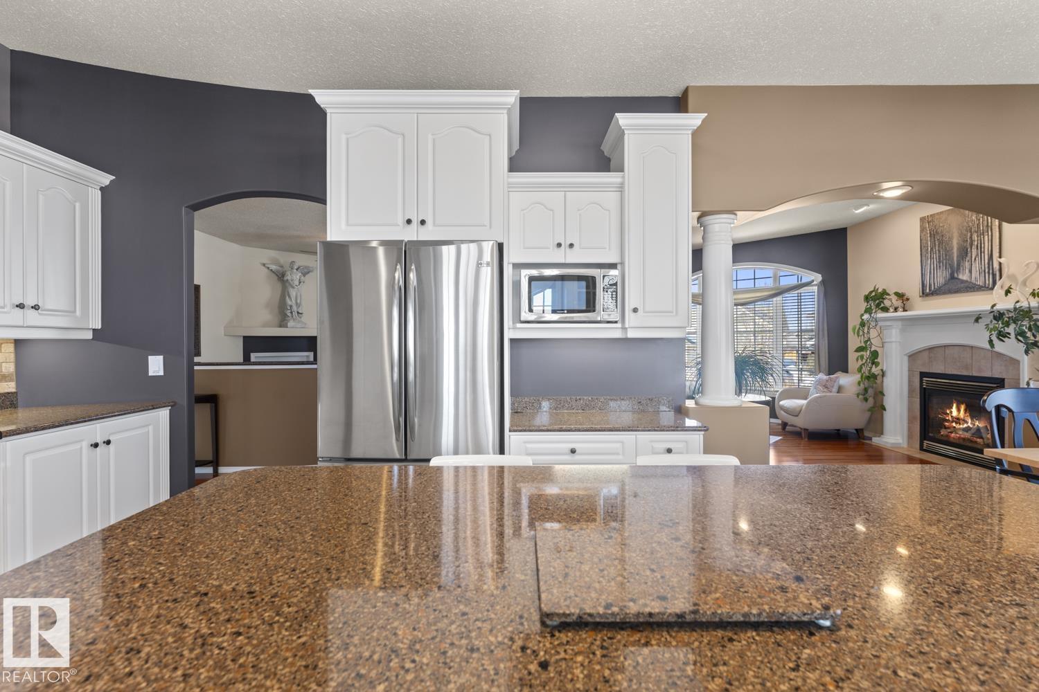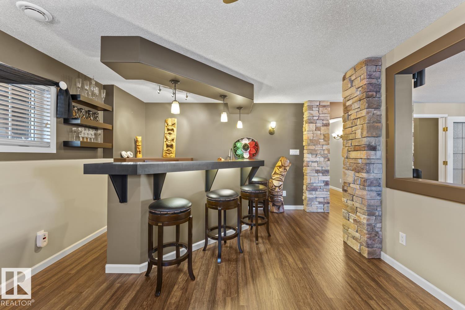 This custom-built home sits on two landscaped lots and offers exceptional space inside and out. The main floor features a modern kitchen with quartz countertops, stainless steel appliances, and a bright, open living area with a fireplace. The primary bedroom includes a 4-piece ensuite with jacuzzi tub, separate 4-ft shower, and his-and-hers walk-in closets. A second bedroom can function as a home office. The lower level has in-floor heating, a large family/games room with wood stove, full wet bar, a spacious third bedroom with access to a 3-piece bathroom, plus dedicated laundry and storage areas. An oversized heated double attached garage and an additional heated double detached garage provide ample parking and workspace. Professionally landscaped yard with underground sprinklers and mature trees completes this one-of-a-kind property. (id:63190)