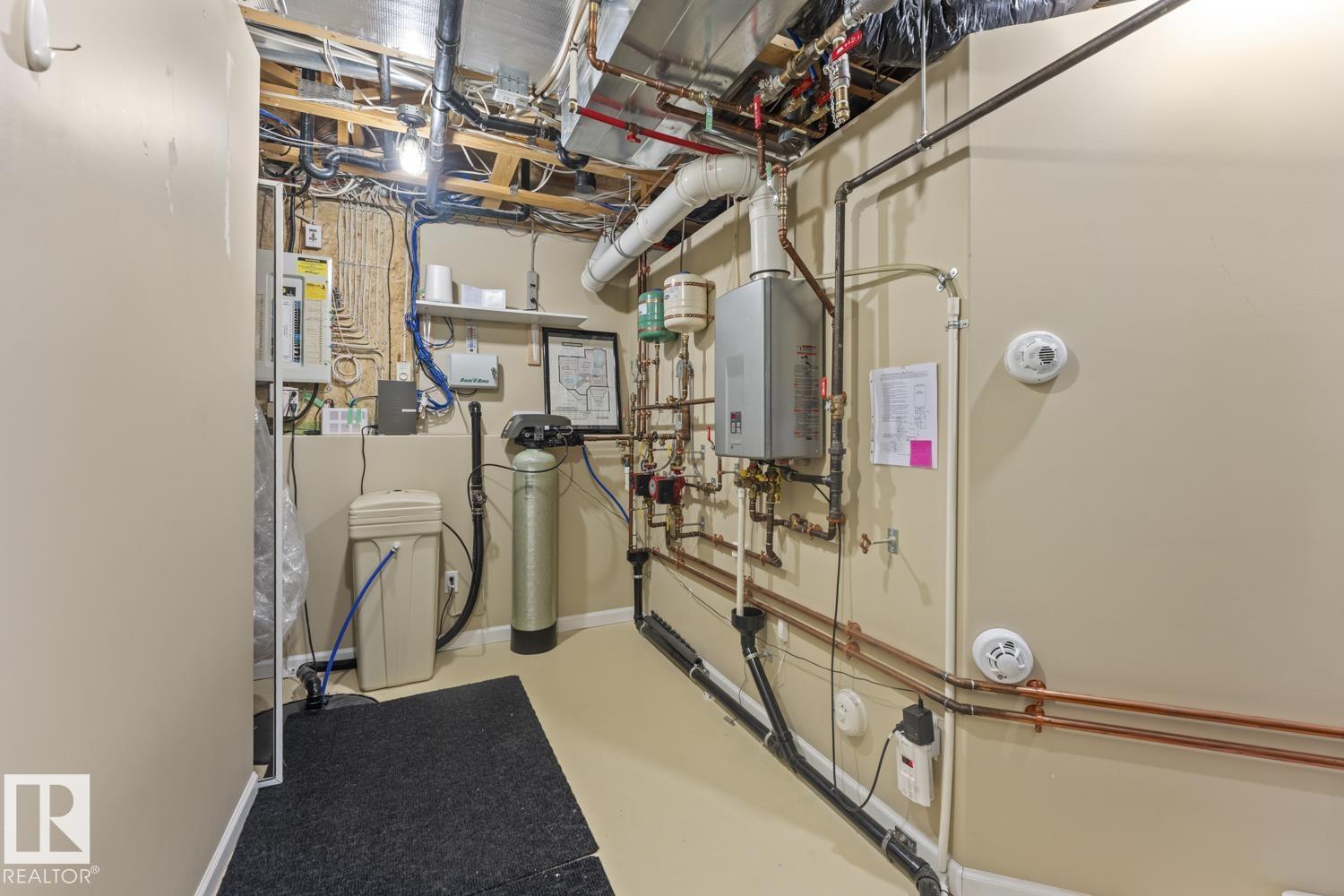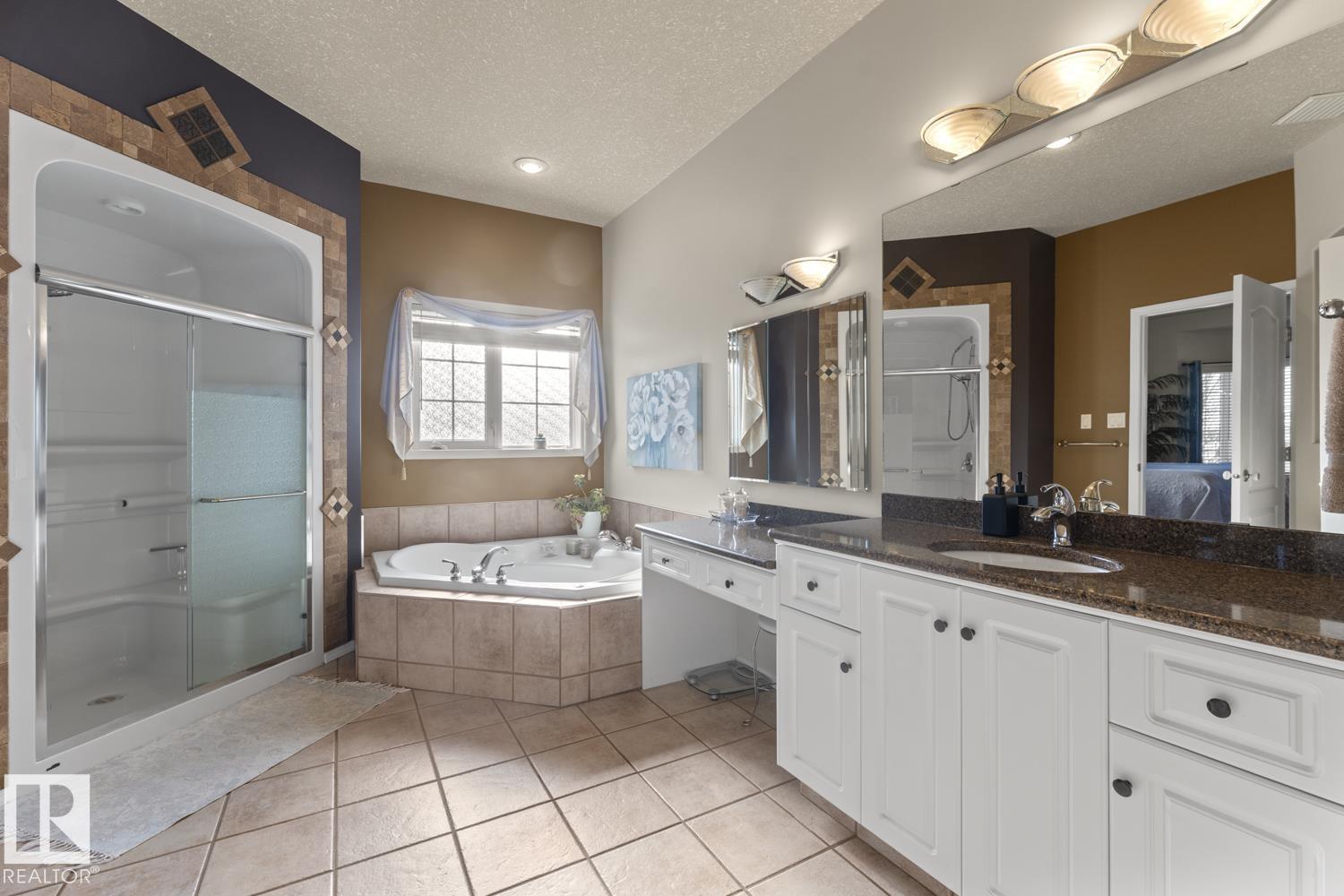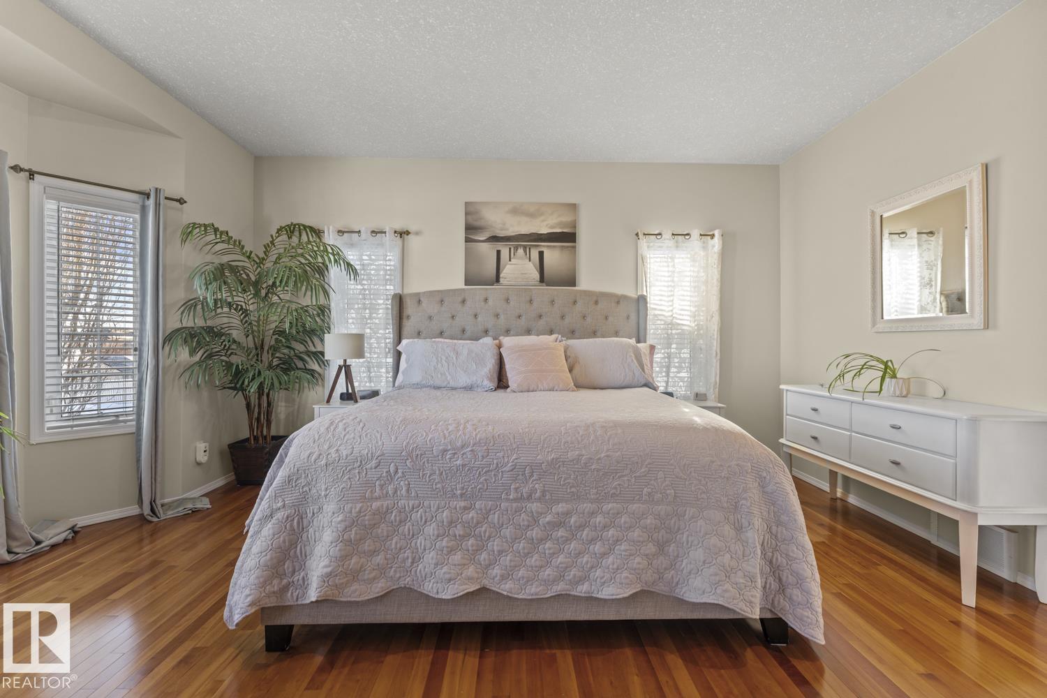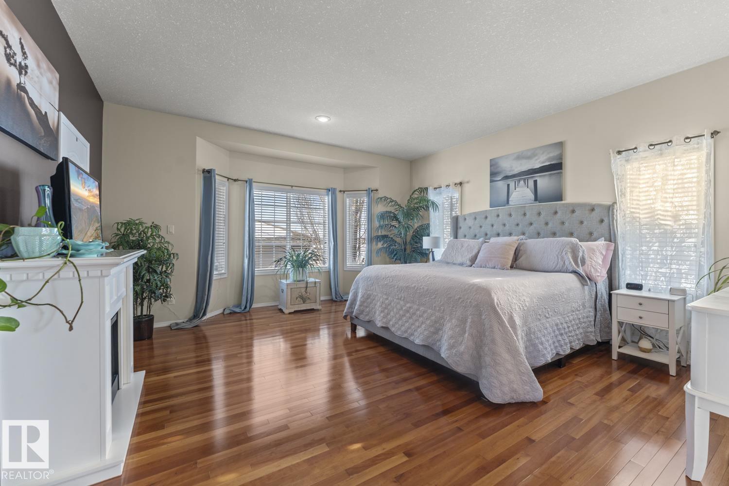 This custom-built home sits on two landscaped lots and offers exceptional space inside and out. The main floor features a modern kitchen with quartz countertops, stainless steel appliances, and a bright, open living area with a fireplace. The primary bedroom includes a 4-piece ensuite with jacuzzi tub, separate 4-ft shower, and his-and-hers walk-in closets. A second bedroom can function as a home office. The lower level has in-floor heating, a large family/games room with wood stove, full wet bar, a spacious third bedroom with access to a 3-piece bathroom, plus dedicated laundry and storage areas. An oversized heated double attached garage and an additional heated double detached garage provide ample parking and workspace. Professionally landscaped yard with underground sprinklers and mature trees completes this one-of-a-kind property. (id:63190)