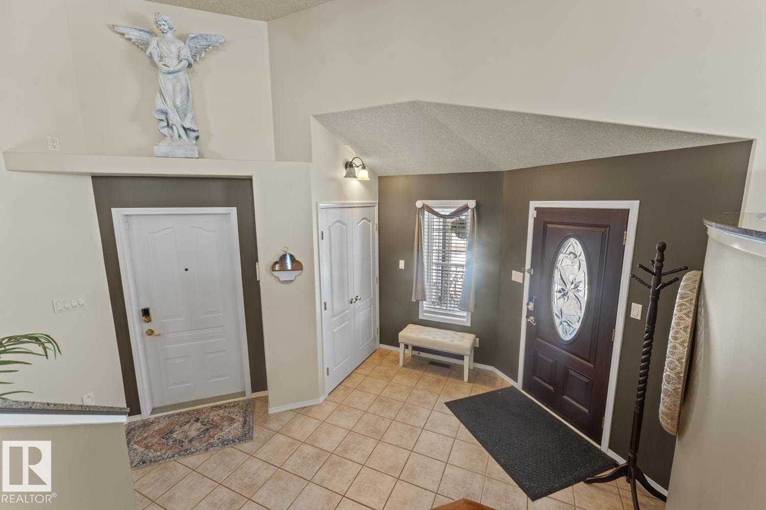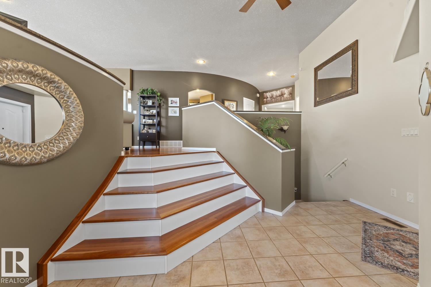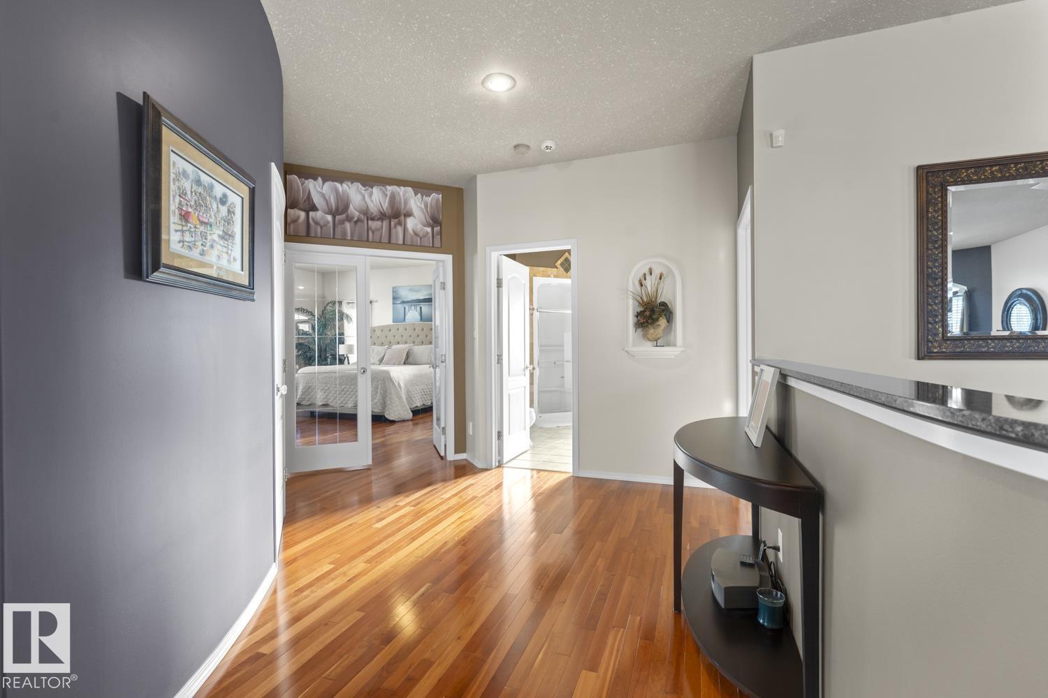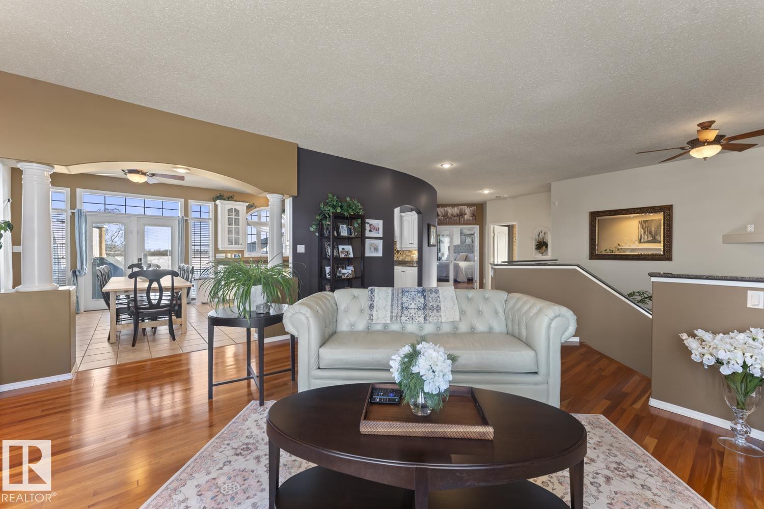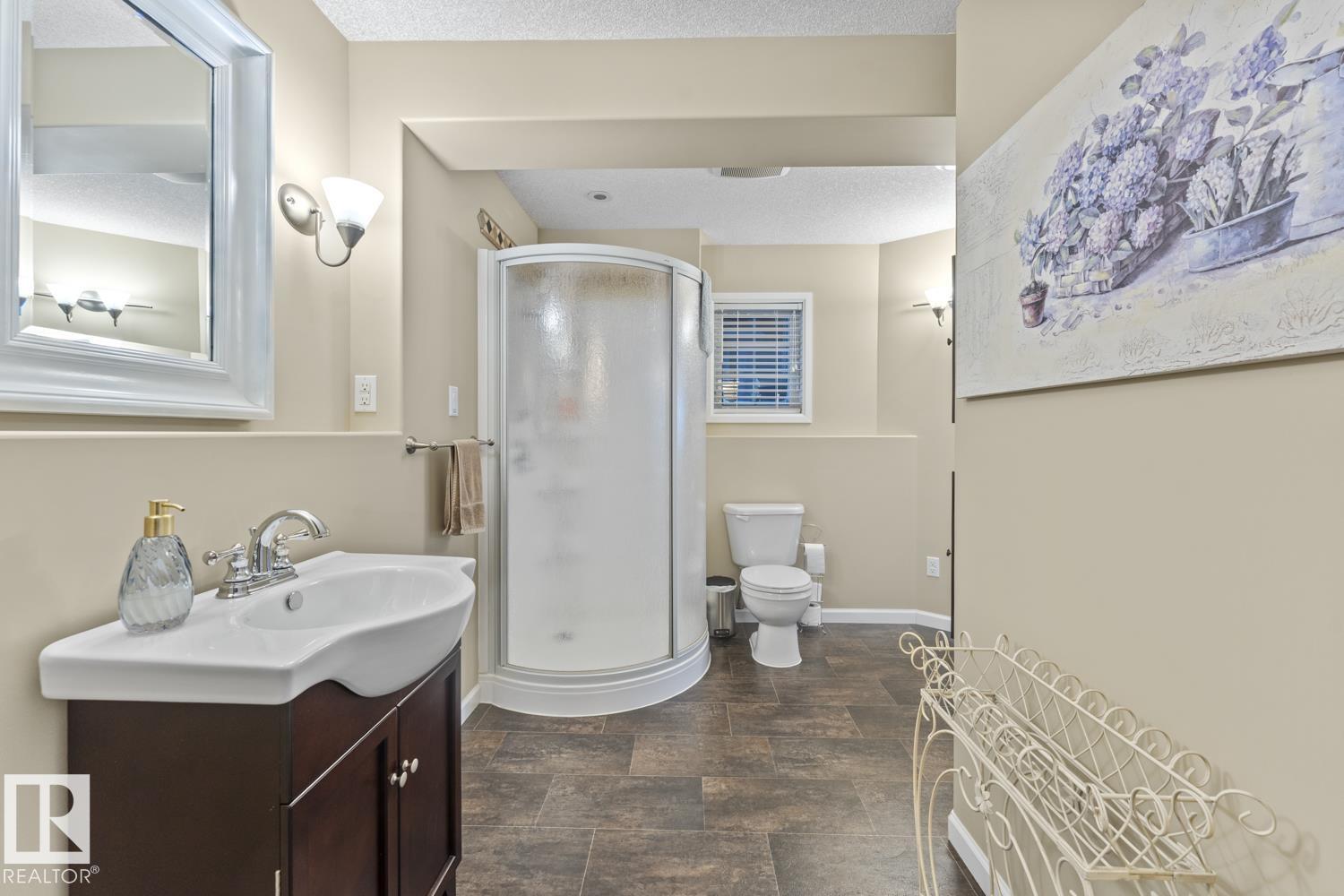 This custom-built home sits on two landscaped lots and offers exceptional space inside and out. The main floor features a modern kitchen with quartz countertops, stainless steel appliances, and a bright, open living area with a fireplace. The primary bedroom includes a 4-piece ensuite with jacuzzi tub, separate 4-ft shower, and his-and-hers walk-in closets. A second bedroom can function as a home office. The lower level has in-floor heating, a large family/games room with wood stove, full wet bar, a spacious third bedroom with access to a 3-piece bathroom, plus dedicated laundry and storage areas. An oversized heated double attached garage and an additional heated double detached garage provide ample parking and workspace. Professionally landscaped yard with underground sprinklers and mature trees completes this one-of-a-kind property. (id:63190)