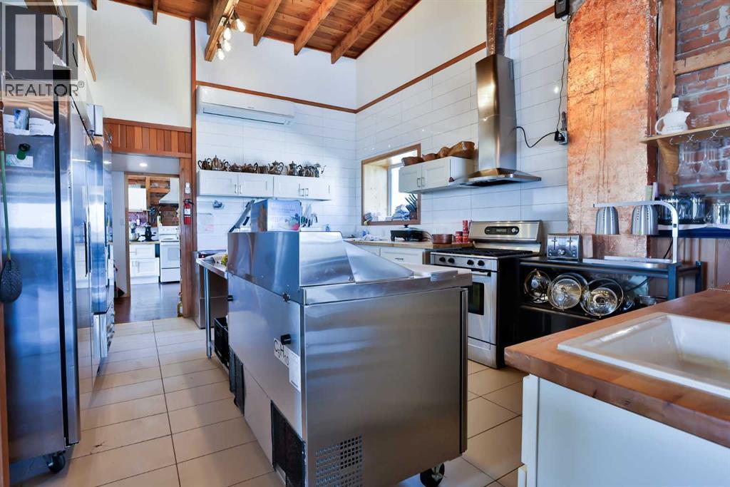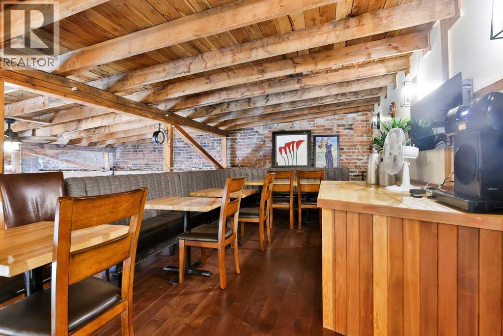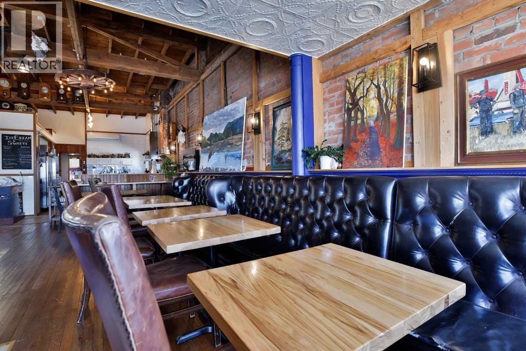 If you’ve ever dreamed of creating a restaurant that’s truly your own, this beautifully restored space offers the perfect canvas. Located just south of Calgary in the hamlet of Granum, this character-filled building blends historic charm with modern updates and is ready for its next culinary story.Inside, the dining areas are full of warmth and personality—exposed brick, timber beams, hardwood floors, tin ceilings, and comfortable leather bench seating create inviting nooks designed for relaxed dining and conversation. An elevated area provides a distinctive space ideal for private dinners, small events, or chef’s table experiences.Nearly everything is already in place to bring your concept to life. From kitchen equipment to dishes and service essentials, this is a rare turnkey opportunity where you can walk in and begin creating immediately. (Artwork and clocks are part of the owner’s private collection; most other items are negotiable.)The original building has undergone extensive upgrades, including new windows and doors, a roof insulated to R-40 standards with updated covering, and a newer furnace and hot water tank. The full basement offers generous storage and utility space.For the right chef, this is more than a restaurant space—it’s an opportunity to build a destination. A place where diners will happily make the drive for something memorable, personal, and worth discovering. (id:63190)