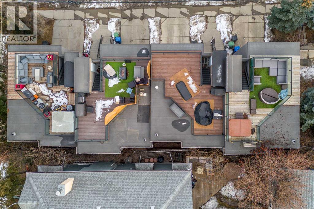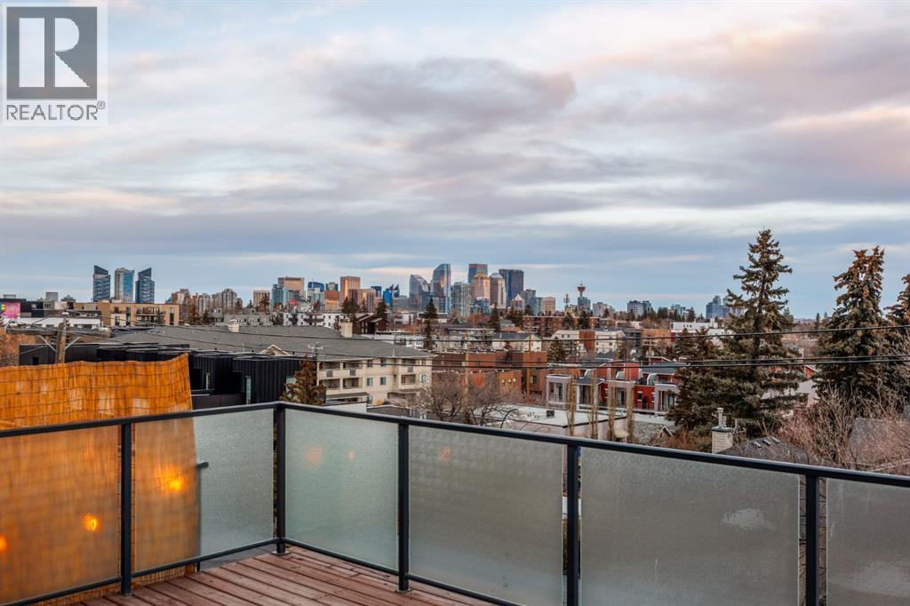 An iconic view from an unforgettable rooftop patio in the heart of Marda Loop. This 3 bedroom, 2.5 bathroom unit is walking distance to endless green spaces, local retail, and the weekly farmer's market hosted at C-Space Art Collective half a block away. With tons of versatile space across 3 levels, this east facing home includes gleaming hardwood flooring, 2 gas fireplaces, and expansive windows that illuminate the entire main floor living area with natural light. The fully stocked chef's kitchen features granite countertops, stainless steel appliances, a large island prep station, and dedicated food pantry, seamlessly integrating into the open concept living room that was specially crafted for entertaining. Wake up to the most beautiful sunrises with a full panoramic view from the primary bedroom upstairs, a spacious walk-in closet with built-in organizers, and a breathtaking ensuite that includes a jetted tub and rain shower with bench. The second level also boasts an additional large bedroom with its own independent ensuite for extra comfort and privacy. Indulge in plenty of storage space throughout the home, along with a third bedroom below that can be easily converted into a flex space to fit your unique lifestyle needs. The convenient double attached insulated garage is perfect for avoiding cold Calgary winters, while the ice cold A/C is ideal for beating the summer heat. Notable recent upgrades include paint throughout, newer flooring and torch-on membrane updating to the rooftop (which is fully fit for a hot tub). Situated in a highly coveted pedestrian-oriented community, walking distance to the South Calgary Outdoor Pool, shops along 33rd Avenue, and with quick access to 17th Ave SW, 14th Street and Crowchild Trail. This is being sold as an investment property and the lovely tenant in place has a lease that expires February 2029. The current rent is $3,100 per month and tenant is responsible for own utilities. (id:63190)