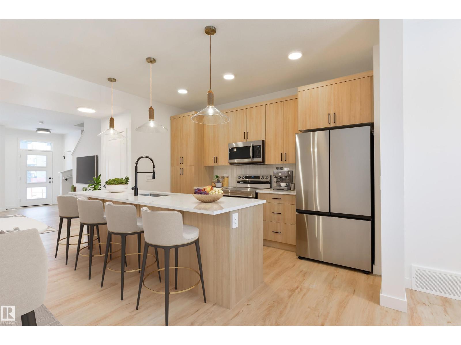 One of the BEST duplex layouts on the market – welcome to the Talo model by Rohit Homes! This BRAND NEW property features an open-concept design, 9’ ceilings, vinyl plank flooring, a spacious living & dining room, a fantastic kitchen with QUARTZ countertops & an island nearly 10’ long (perfect for entertaining!), a 2pc bath off the rear entry & mudroom, top-floor laundry, large flex room (ideal for a play area, TV room, library, or office), a 4pc bath, & 3 generous-sized bedrooms including a king-sized primary suite with walk-in closet & adjoining 4pc ensuite. Complete with a separate side entrance for a future legal suite (if desired), optional detached garage, desirable WEST-FACING exposure, and all landscaping included (front & back!), this is the one you’ve been waiting for! (id:63190)