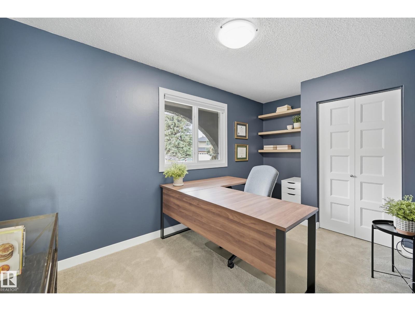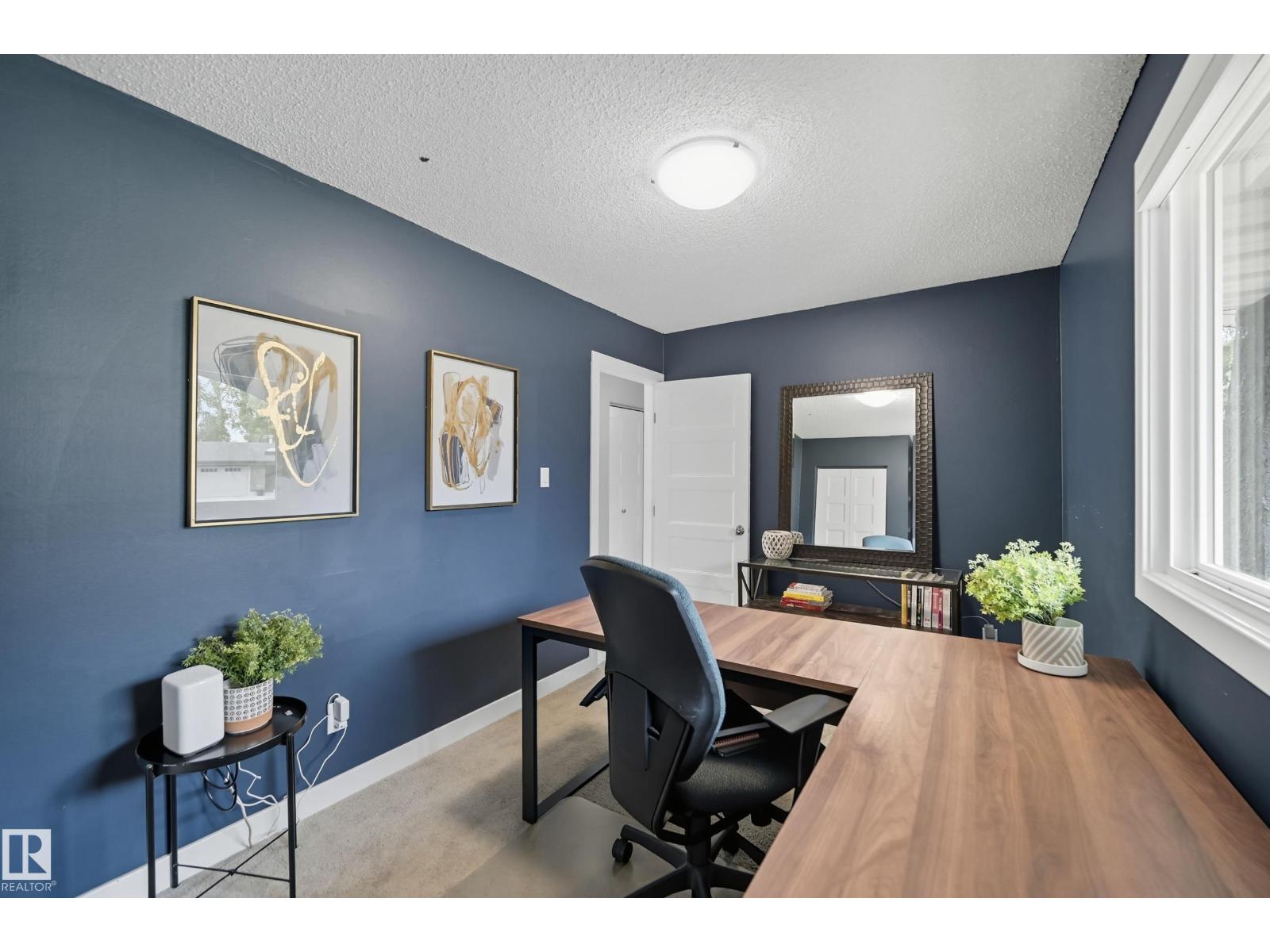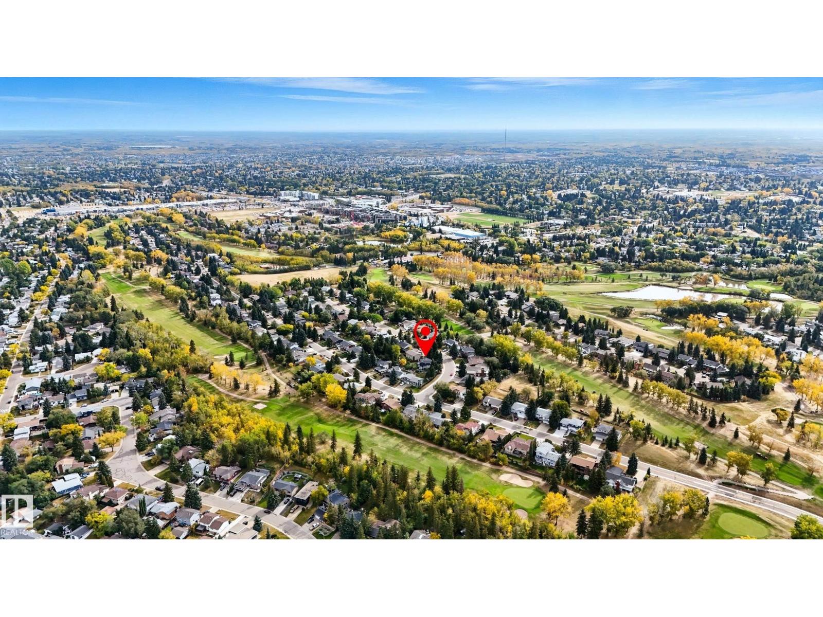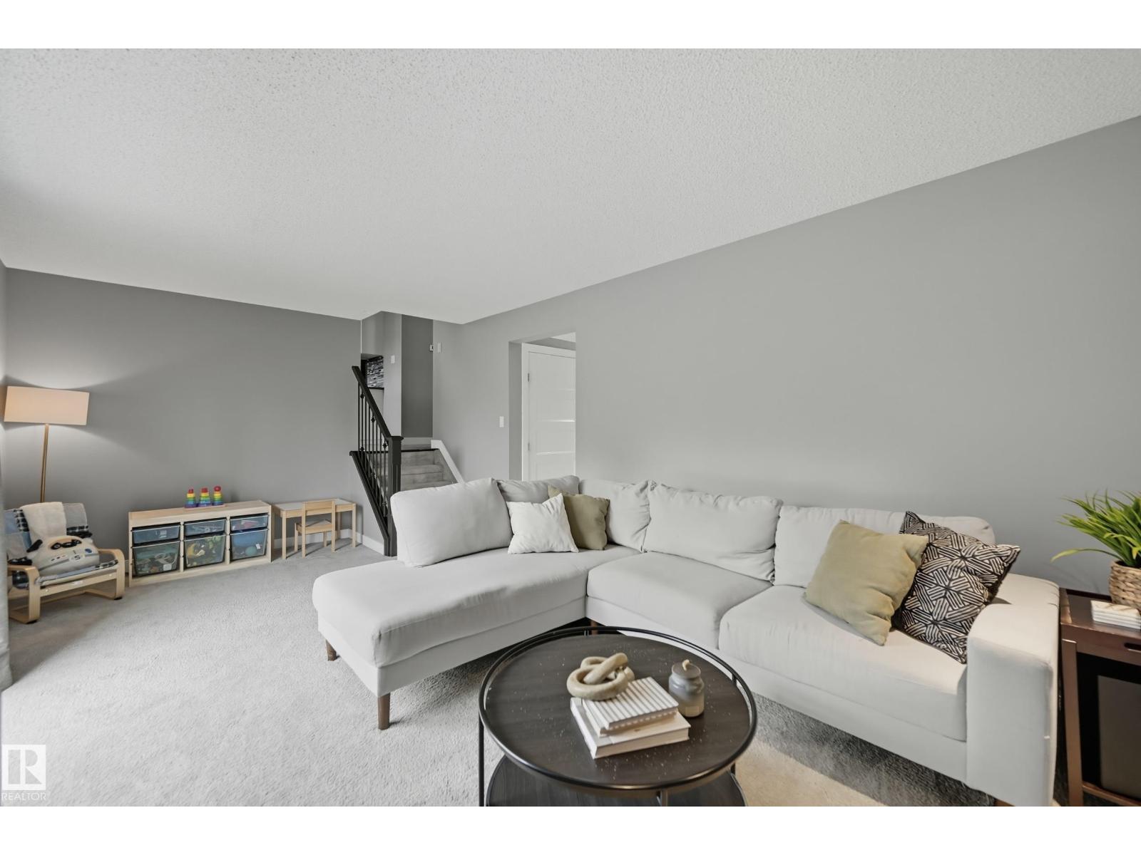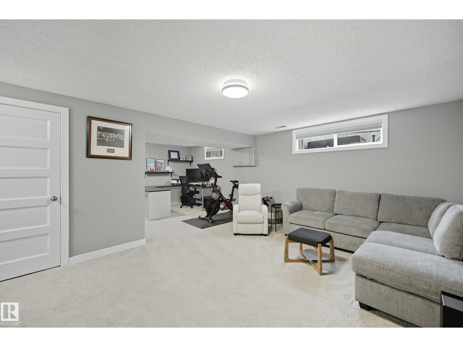 Discover this stunning 1,739 sq. ft. four-level split nestled in the prestigious Broadmoor community of Sherwood Park steps away from the golf course. This meticulously maintained home features an airy, open layout flooded with natural light from expansive windows in the massive living room. The heart of the home is an open-concept kitchen boasting a peninsula island and sleek stainless steel appliances, flowing seamlessly into a generous dining area. Upstairs, find three spacious bedrooms, including a primary retreat with a convenient 2-piece ensuite and a full 4-piece bath. The lower level offers versatility with a cozy family room anchored by a natural gas fireplace, a private office or fourth bedroom, and an additional 3-piece bathroom. Enjoy peace of mind with major updates including a new AC (2022), hot water tank (2022), and shingles (2021). The property sits on a massive, beautifully landscaped pie-shaped lot with mature trees and an attached double garage. A perfect blend of comfort and location! (id:63190)