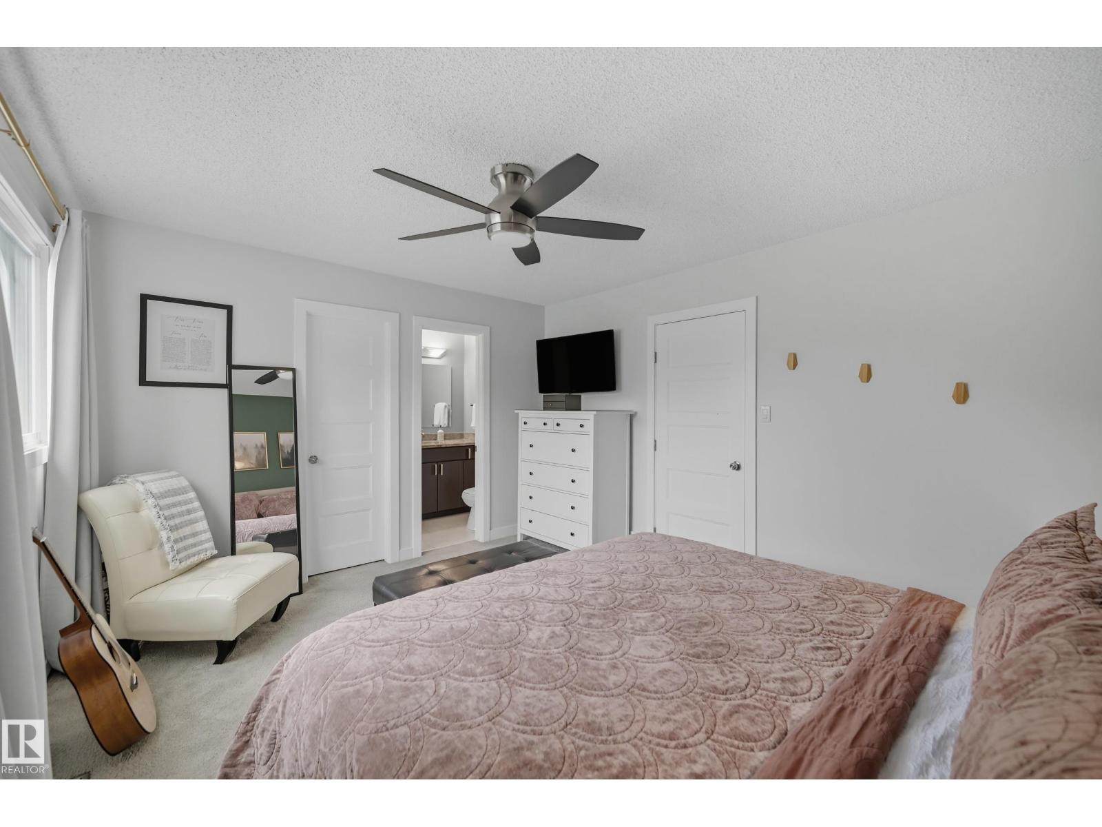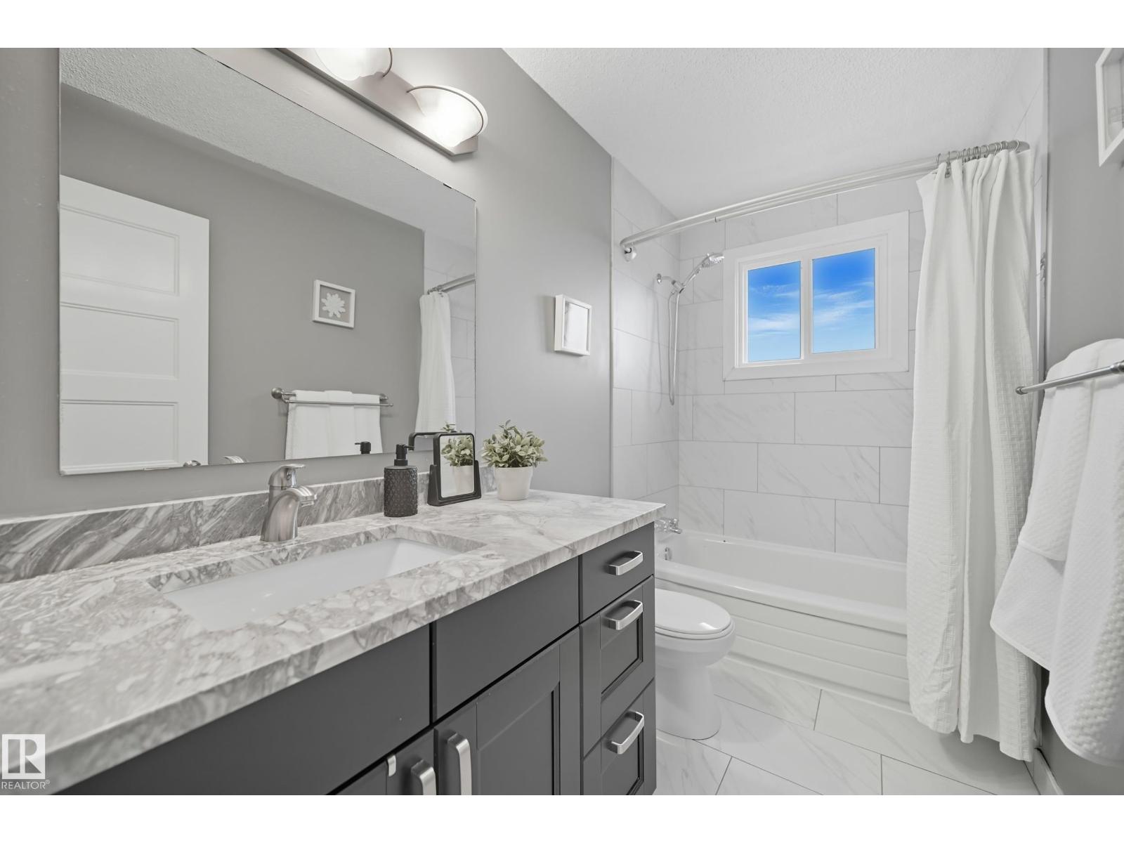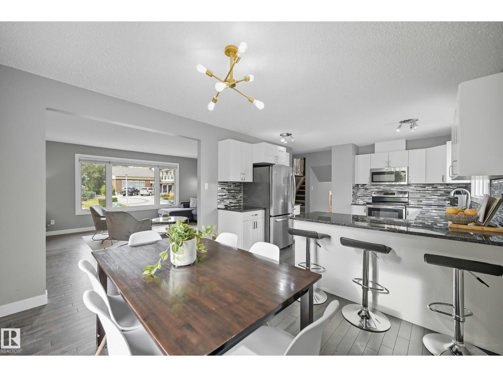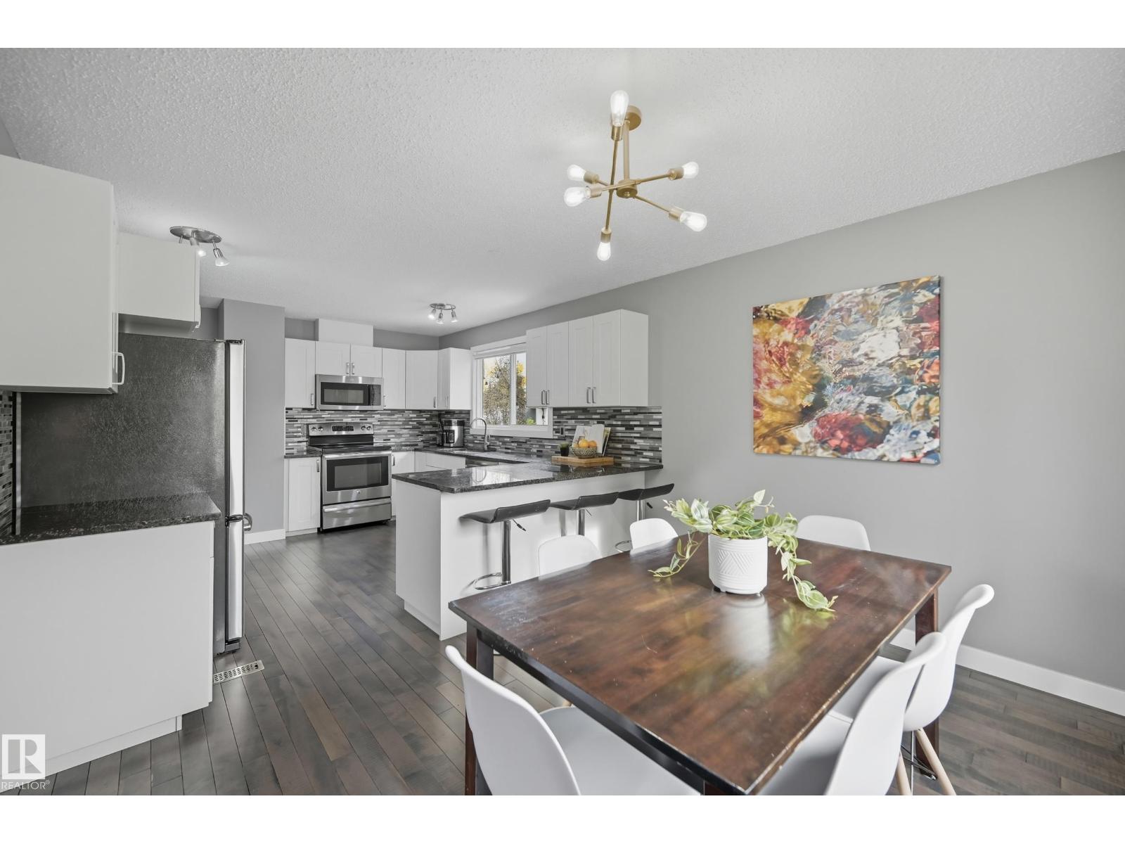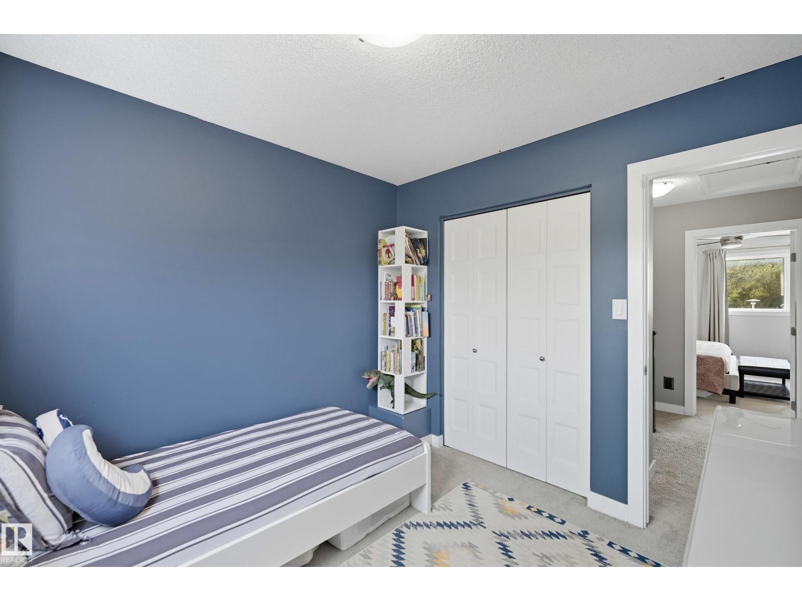 Discover this stunning 1,739 sq. ft. four-level split nestled in the prestigious Broadmoor community of Sherwood Park steps away from the golf course. This meticulously maintained home features an airy, open layout flooded with natural light from expansive windows in the massive living room. The heart of the home is an open-concept kitchen boasting a peninsula island and sleek stainless steel appliances, flowing seamlessly into a generous dining area. Upstairs, find three spacious bedrooms, including a primary retreat with a convenient 2-piece ensuite and a full 4-piece bath. The lower level offers versatility with a cozy family room anchored by a natural gas fireplace, a private office or fourth bedroom, and an additional 3-piece bathroom. Enjoy peace of mind with major updates including a new AC (2022), hot water tank (2022), and shingles (2021). The property sits on a massive, beautifully landscaped pie-shaped lot with mature trees and an attached double garage. A perfect blend of comfort and location! (id:63190)
