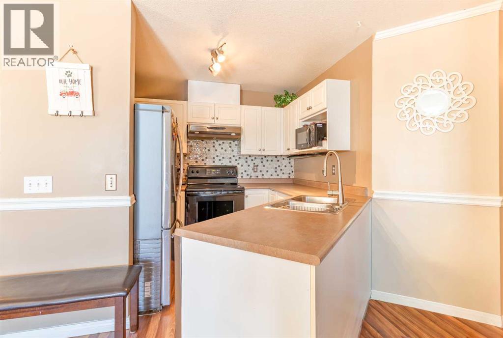 Welcome to this bright and spacious top-floor condo in the welcoming community of Sunshine Meadows! Offering 982 sq ft, this well-designed unit features 2 comfortable bedrooms, a 4-piece bathroom, in-unit laundry, making it a fantastic opportunity for first-time home buyers, downsizers, or investors. The unit is move-in ready and enjoys great natural light and a quiet living environment. The interior offers laminate flooring, freshly painted walls throughout most of the home, and the kitchen offers ample cabinet storage. The home also includes an assigned outdoor parking stall for everyday convenience. (id:63190)