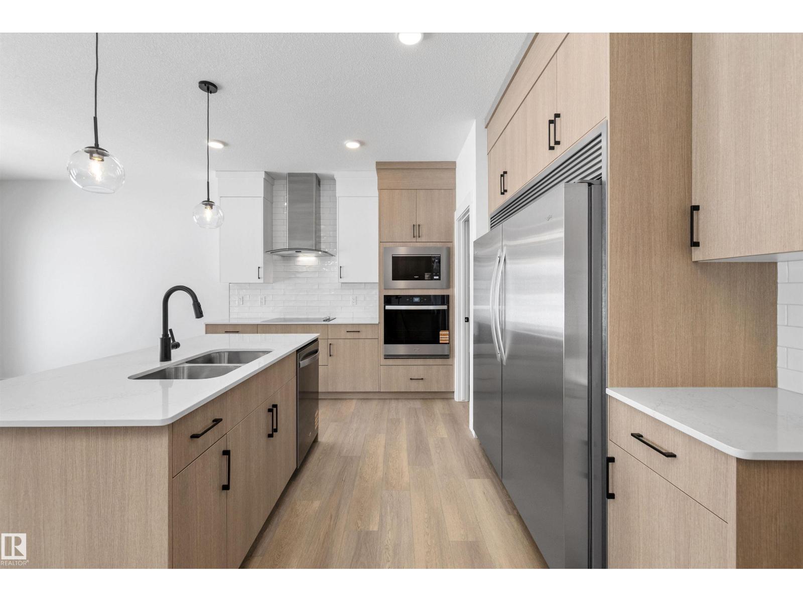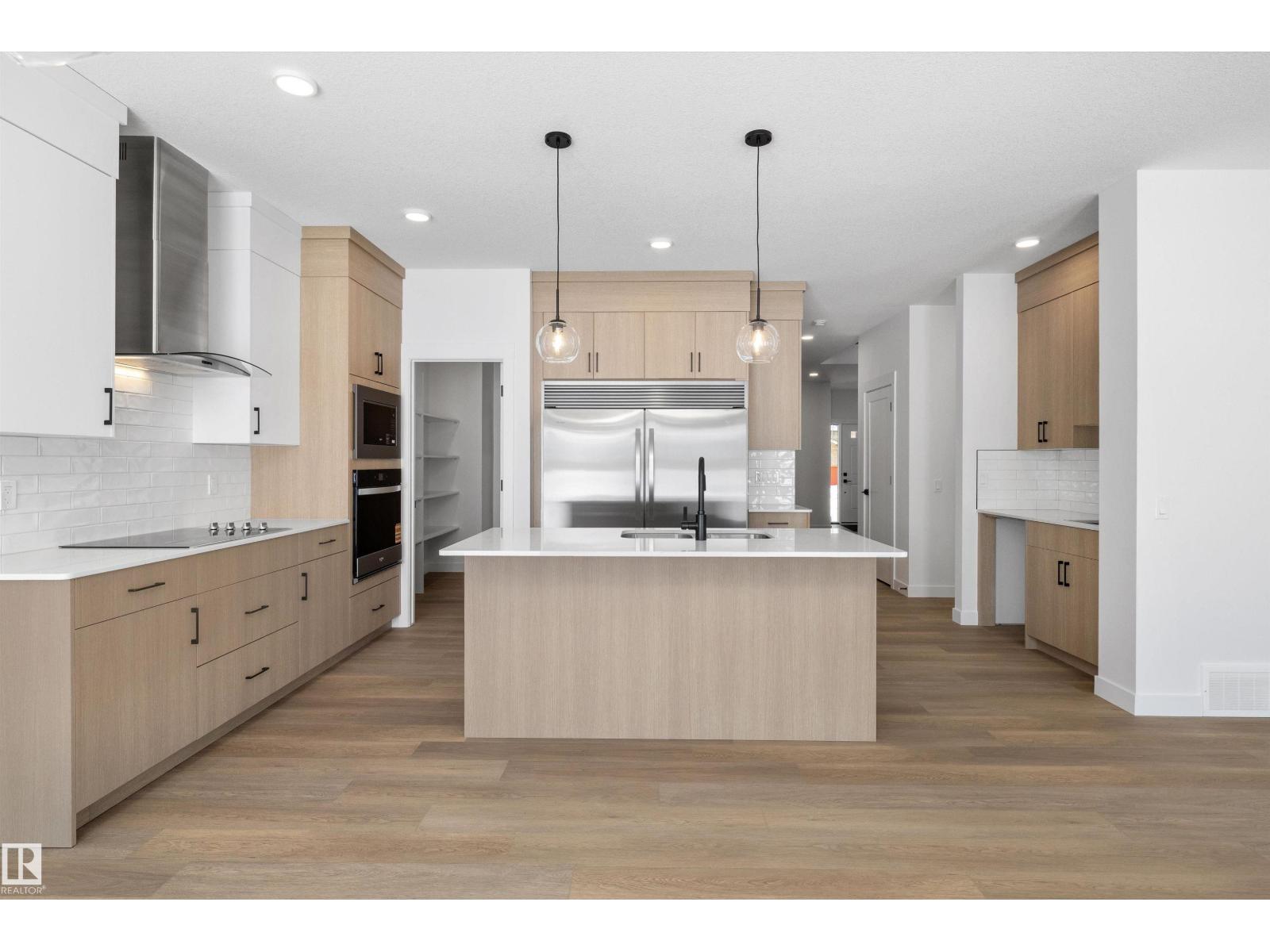 Welcome to Chappelle Gardens and discover the Munich Model built by City Homes—a stunning 2,382 sq ft move-in ready home designed for modern living and effortless style. Featuring 4 spacious bedrooms, this thoughtfully crafted home offers the perfect blend of comfort, functionality, and elegance for growing families. The main floor showcases a bright, open-concept layout anchored by a stylish fireplace that creates a warm and inviting focal point for everyday living and entertaining. The beautifully designed kitchen comes fully equipped with stainless steel appliances and offers ample space for cooking, gathering, and hosting. Thoughtful upgrades elevate the home throughout, including a 9’ foundation, separate side entrance for future legal suite potential, and basement rough-ins, providing incredible potential for future development. Upgraded stain-grade maple railings add a sophisticated touch and enhance the home’s refined interior. (id:63190)