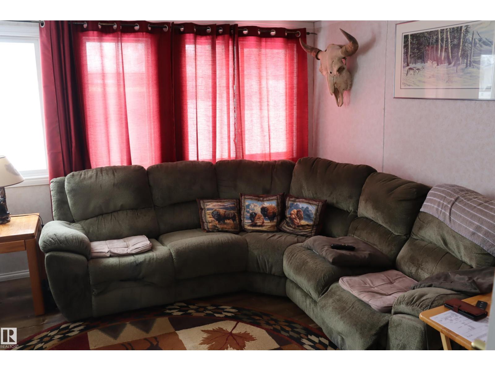 Perfect Starter home or if you're retiring everything on one floor no STAIRS. Very well maintained mobile home with large addition, covered porch, carport, many upgrades over the last few years, Metal roof, newly insulated skirting, new sewer line, new vinyl windows throughout, new furnace 2014,new hot water tank 2024, exterior walls insulation upgraded, Kitchen cabinets remodel, ceiling insulation upgraded, newer vinyl siding. Ready to move in All appliances stay, All windows coverings, electric fireplace and cabinet, dining room table and chairs stay. 3 storage sheds, wood shed. 3 bedrooms, games room/bedroom, living room, dining room, kitchen,4 pce bath, cold storage room. Lot rent $622.85 includes water, sewer and garage. Oversized yard fenced on 3 sides. (id:63190)