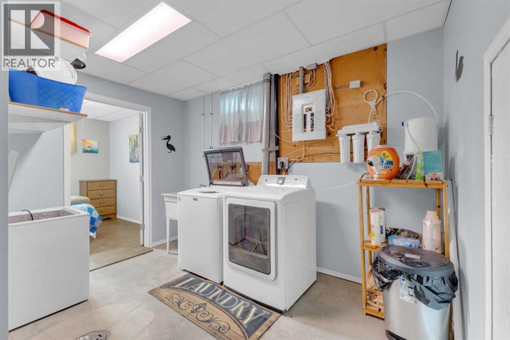 This charming property is tucked away on a private 0.49 acre lot at Pelican Point, surrounded by mature trees, and offering the perfect opportunity for comfort, space, and tranquility AT THE LAKE!! Don't let the reported age of this home fool you! A new basement poured in 2002, with concrete styrofoam block for extra insulation, and infloor heat. A Bungalow was moved on, and then extensively renovated. This well-cared-for home features 5 bedrooms, providing ample room for family and guests alike. As you enter, you’re greeted by a cozy living room complete with a fireplace, and classic hardwood flooring, for an inviting space to gather and relax. The adjoining dining area offers plenty of room for family meals and entertaining, seamlessly connecting to the kitchen, which serves as the heart of the home. The kitchen is equipped with all appliances, attractive maple cabinetry, cork flooring and plenty of counter space for meal prep and creativity. The main floor hosts two spacious bedrooms and a full bathroom. A versatile den adds a unique touch, perfect for an office, reading nook, or additional storage. Downstairs, you’ll find a generous recreation area that can easily adapt to your personal lifestyle, whether as a family room, hobby area, or workout space. Three additional bedrooms and another full bathroom complete the lower level, along with a laundry area conveniently located in the utility room. Central air conditioning is an added feature that you will love in the summer. Outside, the newer covered rear deck offers a peaceful retreat to unwind and take in the natural surroundings. The landscaping goes above and beyond! It literally feels like a park with so many perennials, shrubs, and groomed flower beds. There is also a tarped shed, storage shed, and play centre included in the fenced backyard. This property is only a 5 minute walk to the playground and beach, and 10-15 minute walk to the boat launch. You are also only 15 minute to the lovely town of Bashaw w hich boasts two grocery stores, liquor stores, police station, fire department, school and a vibrant business core. Neighboring cities including Camrose, Wetaskiwin and Stettler are all within an hour to Pelican Point. Recent updates include the replacement of 2 hot water tanks in February 2026. This amazing turn key, 4 season property, combines privacy, practicality, and a great opportunity for year round living or a fantastic summer home! (id:63190)