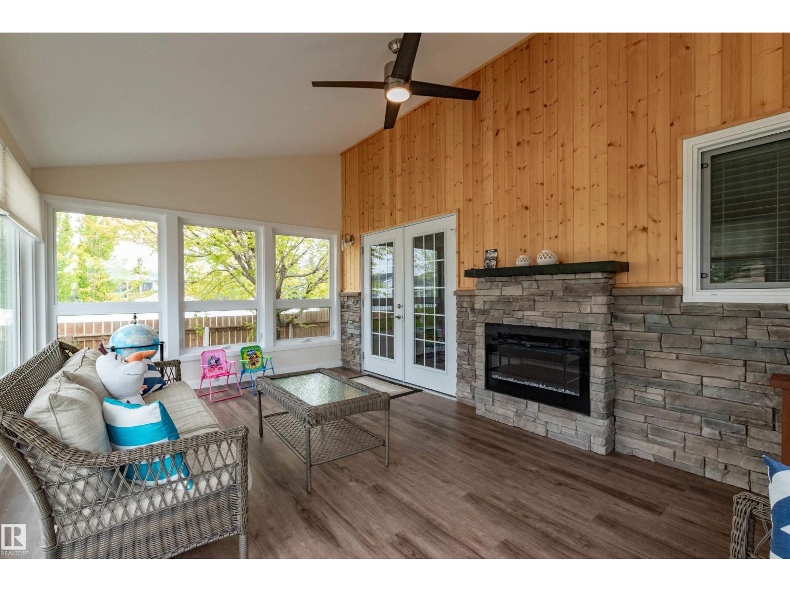THIS SOUTH SIDE BEAUTY IS BURSTING WITH UPGRADES... Situated on a Corner Lot with back alley access. Boasting 2500 sq. ft of living space on the upper two floors plus a fully finished basement and a newly added 4 season room With a cozy fireplace to enjoy (2019) PLUS central AIR!! . ALL 4 bedrooms are on the upper storey with two newly renovated bathrooms. The Main floor has a family room, living room, kitchen with quartz counter tops, dining room, and office ( all having new flooring, and new windows) The back yard has an new fence in 2022 and new deck off the beautiful sunroom. The Main floor laundry is just off the double car garage with new doors and stone work in 2018. All appliances and custom blinds stay. ALL THIS IN THE EVER GROWING TOWN OF VEGREVILLE an easy commute to Sherwood Park. (id:63190)
