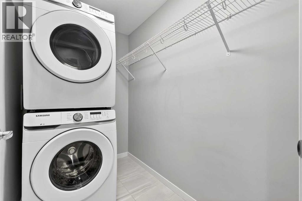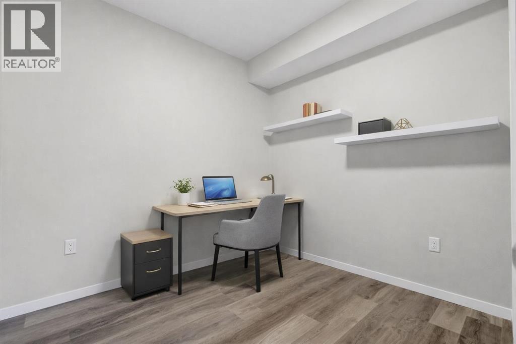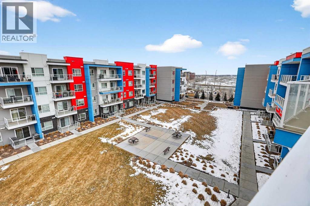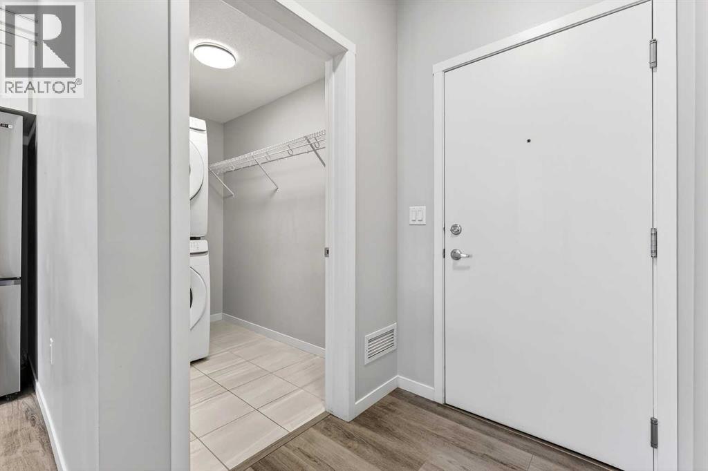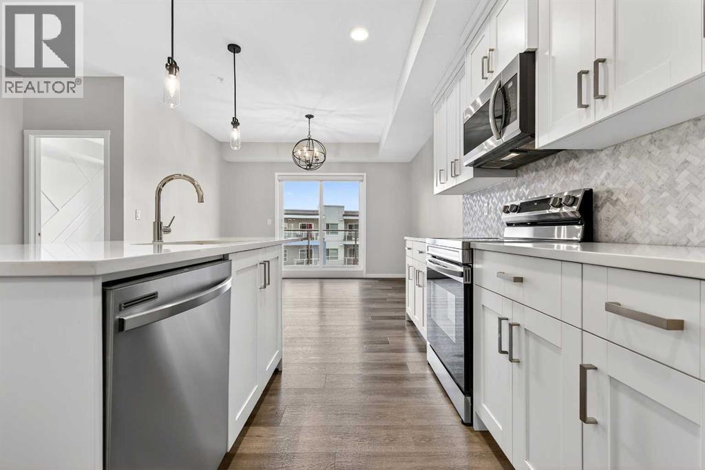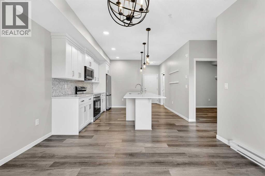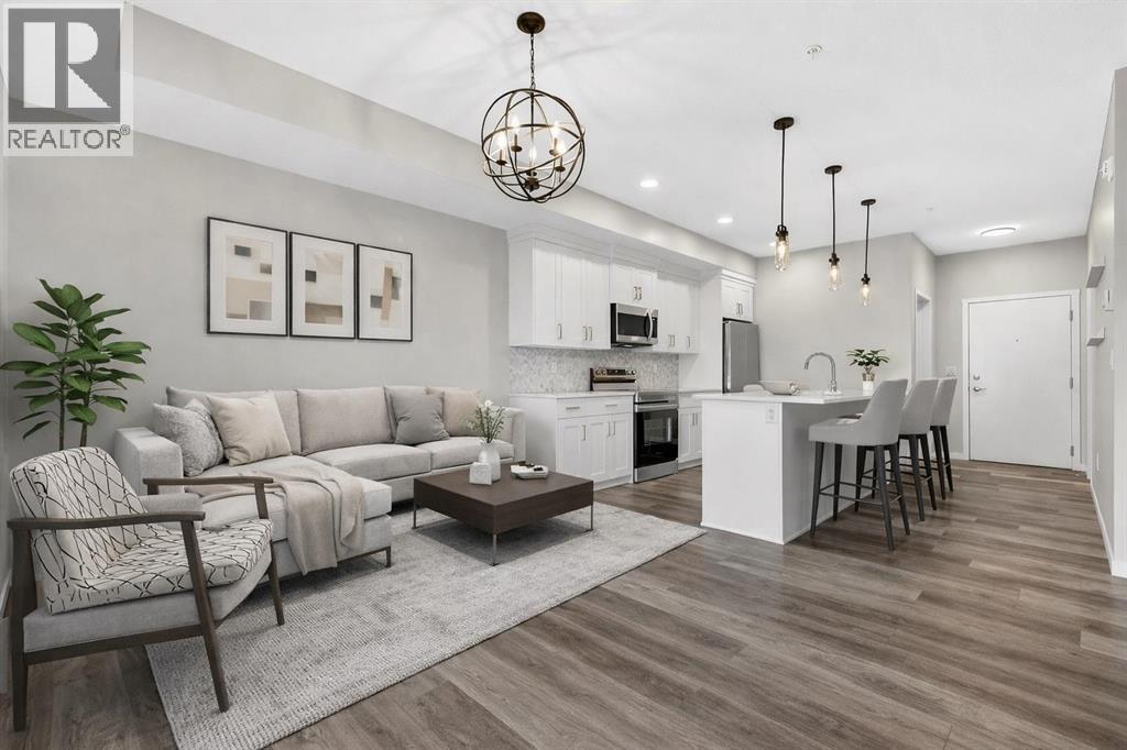 Welcome to Seton Park Place III, where style, convenience and value come together in this beautifully upgraded TOP-FLOOR 2-bedroom condo in Building 2000. Overlooking the peaceful courtyard, this bright and thoughtfully designed 639 sq ft unit offers an open-concept layout enhanced by 9-foot ceilings, large windows and modern finishes throughout, creating a space that feels both comfortable and contemporary. Durable vinyl plank flooring runs throughout the unit complementing the sleek kitchen featuring a massive quartz island that anchors the living space- perfect for entertaining or everyday living. The kitchen flows seamlessly into the living area and out to the private balcony, where upgraded roller blinds on the patio door provide both style and privacy. The primary bedroom is highlighted by a custom feature wall, while the second bedroom offers flexibility for guests, a home office or roommate living. The well-appointed bathroom showcases a full-height tile tub/shower surround, adding a touch of elevated design. Additional upgrades include enhanced lighting and rough-in for future air conditioning, giving you the option to add extra comfort in the years ahead. This home also features in-suite laundry, TWO titled underground parking stalls and an assigned storage locker, offering exceptional convenience rarely found in a condo of this size. Seton Park Place III is a professionally managed, secure building with cameras, low condo fees and a pet-friendly policy (with board approval). Located in the heart of one of Calgary’s most vibrant and walkable communities, you are just steps from South Health Campus, the world-class YMCA, public library, Cineplex, Superstore, restaurants, shops and countless amenities. With quick access to Deerfoot Trail and Stoney Trail, commuting anywhere in the city is effortless. Whether you’re a first-time buyer, investor or downsizer, this top-floor courtyard-facing condo with two titled parking stalls is a rare opportunity to own in o ne of Calgary’s most sought-after urban communities. *3 of the photos are virtually staged* (id:63190)
