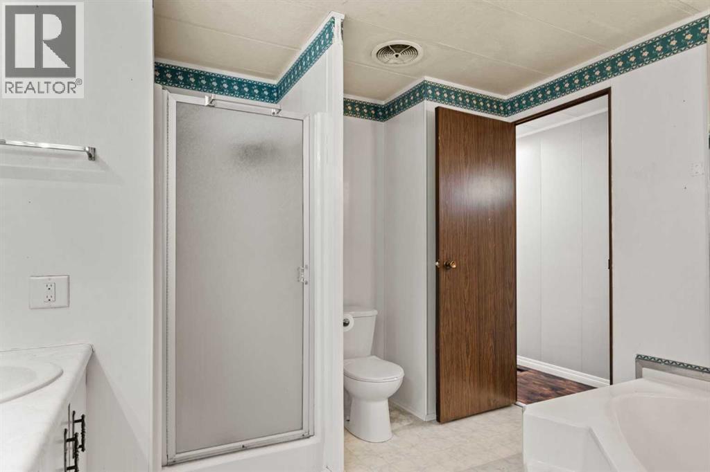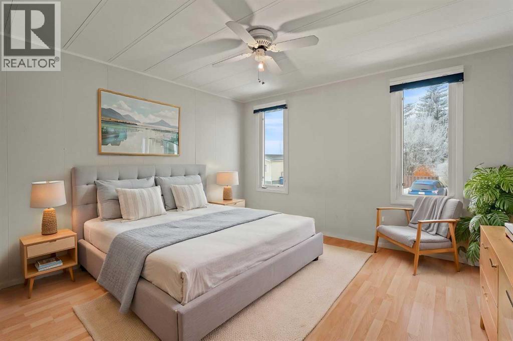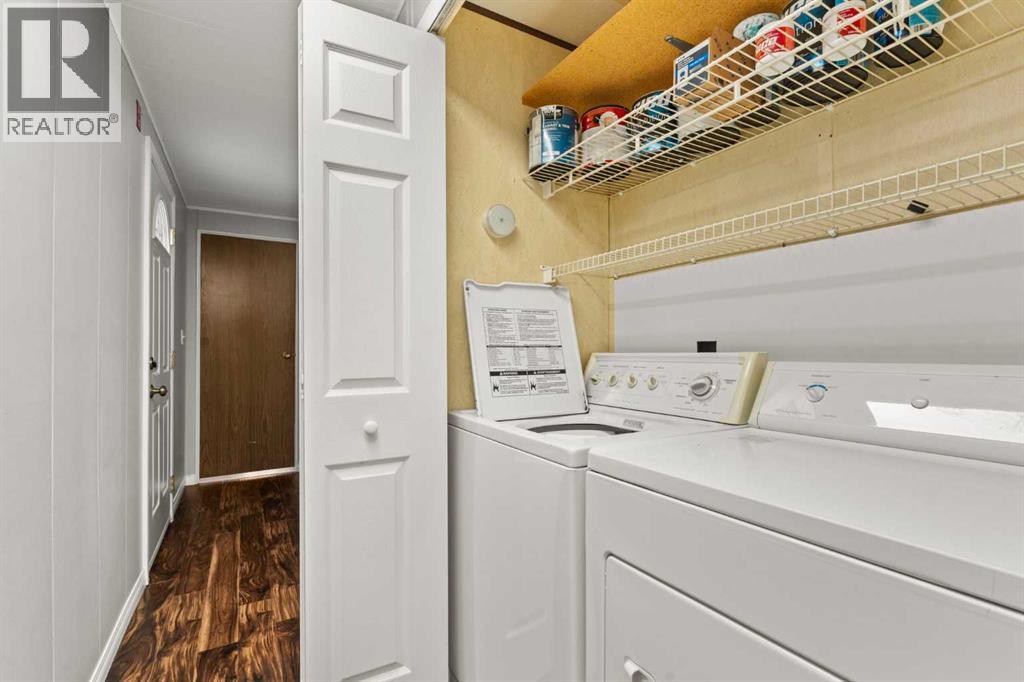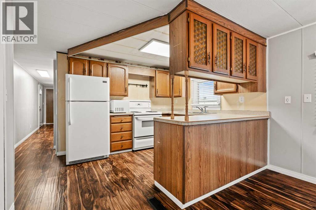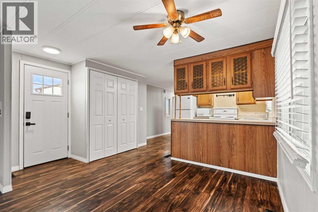 Affordable Living in Diamond Valley! This renovated 2-bedroom mobile home is located in the quiet and well-maintained Trails West Mobile Park and offers 949 sq. ft. of comfortable living space. The bright and open layout features a spacious living room and kitchen with a peninsula counter, creating a functional space for everyday living and entertaining. Enjoy your morning coffee on the front porch or relax on the back deck overlooking the nicely sized yard. Conveniently located within walking distance to pathways, playgrounds, schools, shops, the skating and curling arena, and just minutes from the golf course, swimming pool, library, and Oilfields Hospital. Outdoor enthusiasts will also appreciate the easy access to Kananaskis Country. Lot rent is $550/month and includes water, sewer, garbage collection, and common area maintenance, making this an excellent opportunity for affordable home ownership. (id:63190)