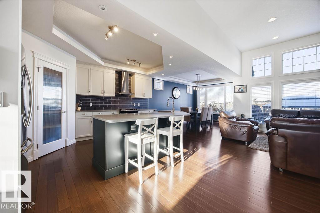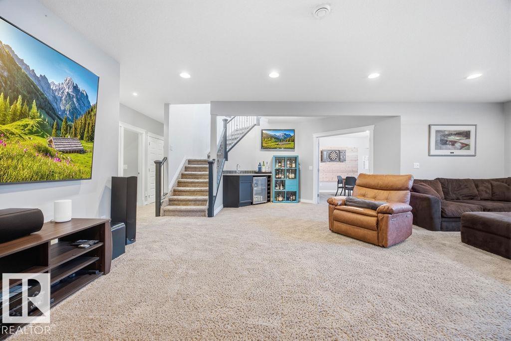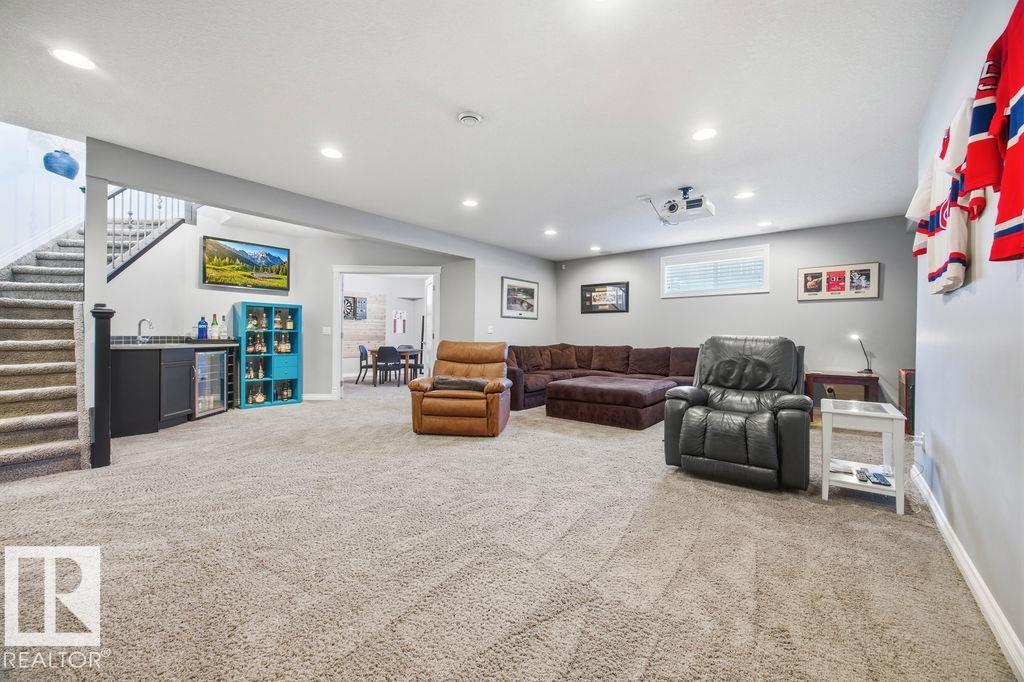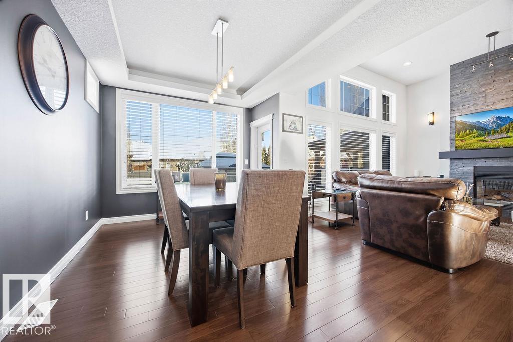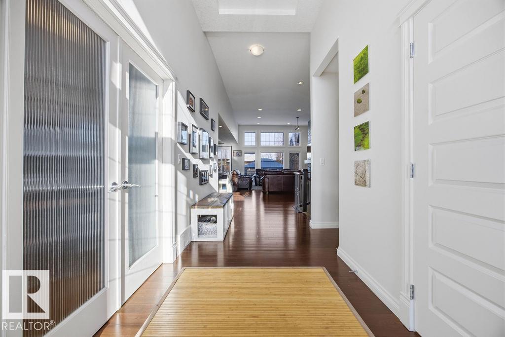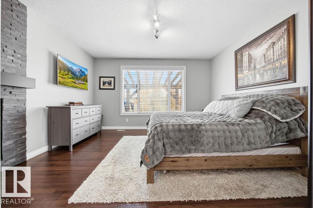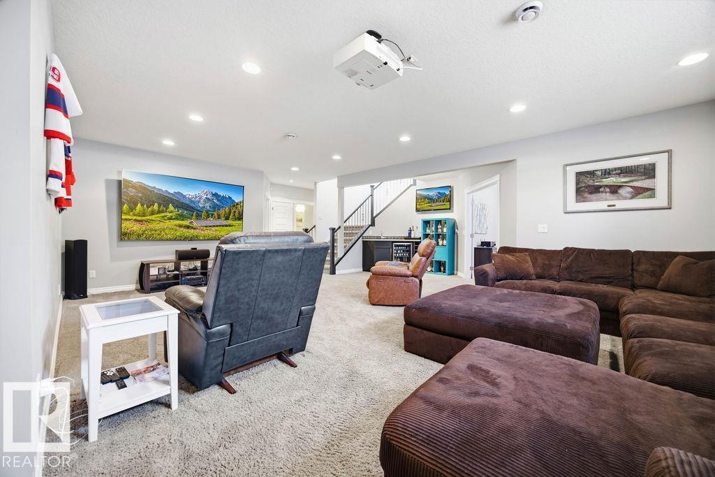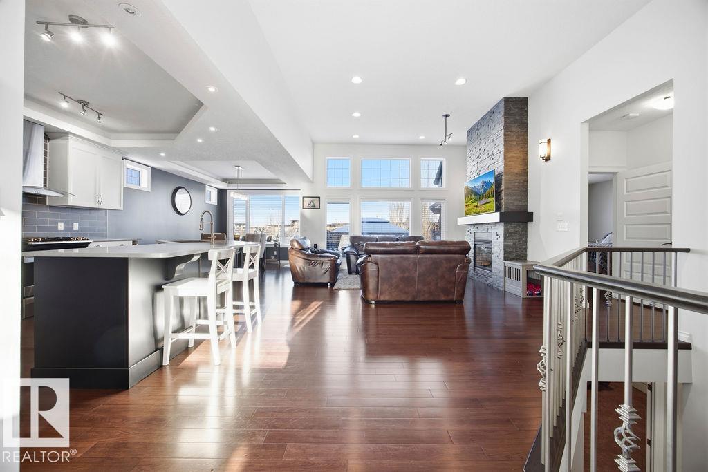 Lovely 1902 sq ft Bungalow with DREAM CAR TRIPLE GARAGE and fully fin basement located in Place Chaleureuse.Bright open design with coffered ceilings and hardwood galore on your main floor.Enjoy your dream kitchen with high end appliances,corner pantry,large center island,quartz tops and elegant back splash.Your dining overlooks a large mtce free deck with glass rail and enormous back yard with underground sprinkler with gazebo,pergola,hot tub and stamp concrete patio.Your living room has a showcase stone fireplace and there is also a double door executive den.Your primary bdrm has a fireplace and gorgeous ensuite with his & her sinks and glass shower.There is a 4 pce bath and 2nd bedroom with convenience of main floor laundry.Down stairs has in floor heat,2 additional bdrms,4 pce bathroom and a large recroom with wet bar and a 120 in screen with projector for movie nights.Other features include central air,water softner,water filtration system,heater in garage and aggregate driveway. A must SEE. (id:63190)