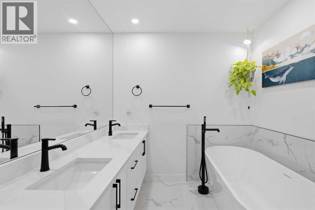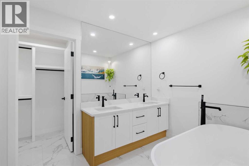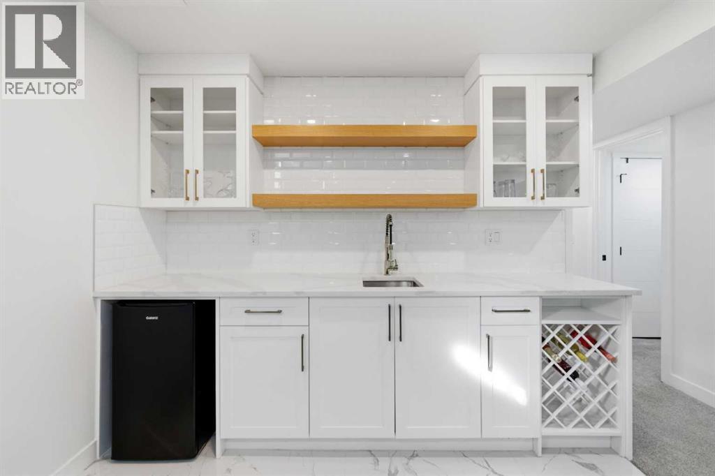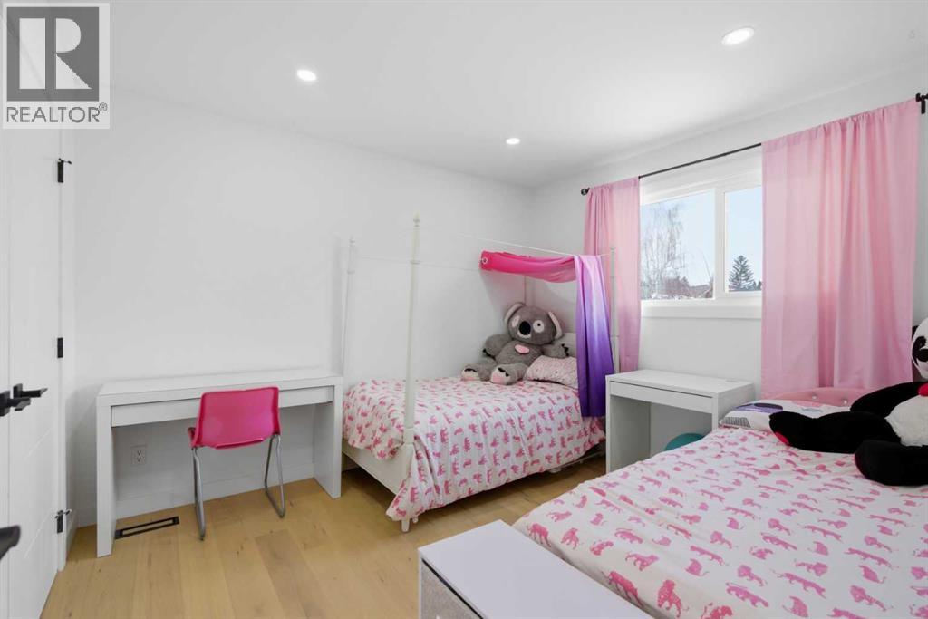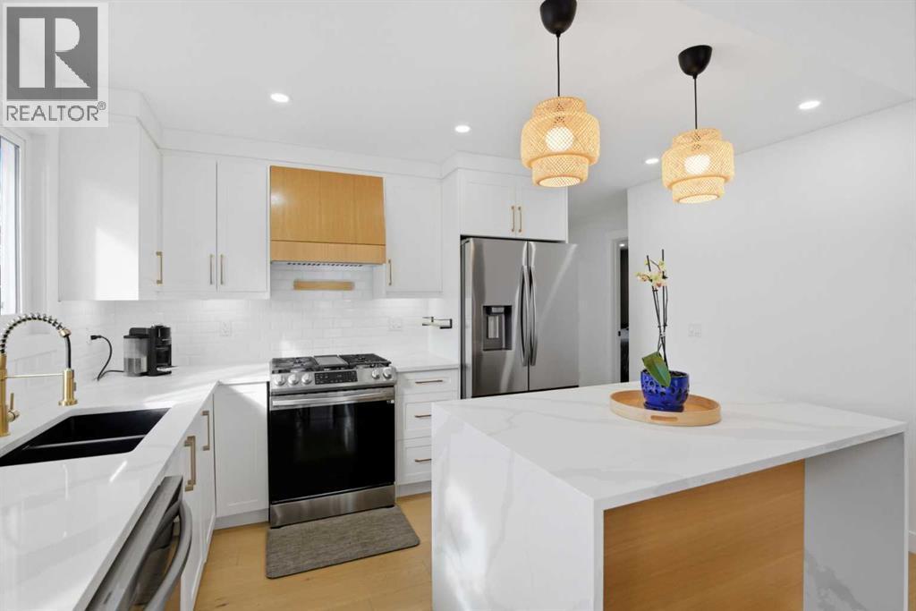Welcome to this exceptionally renovated 4-bedroom home situated on a premium corner lot inthe established community of Queensland, which is framed by mature trees adding a feeling ofnatural charm. Thoughtfully upgraded throughout, this home blends modern design withtimeless comfort. You’ll feel the warm, inviting atmosphere the moment you step inside,highlighted by bright recessed lighting, natural Light, high vaulted ceilings, and custom in-ceiling speakers.On the main floor, the spacious primary retreat with a striking feature wall truly stands out! Thespa Inspired ensuite features a walk-in glass shower, deep soaker tub, a double vanity withelegant finishes and a dream walk-in closet. Paired with a second bedroom and a seamless flowfrom the kitchen to the living room, which is filled with bright south-facing sunlight. The fullydeveloped lower level creates the perfect gathering space, complete with a stylish wet bar and cozy lounge area ideal for hosting family & friends. Finishing off the basement with 2 fullbedrooms, laundry and storage.Step outside to your covered outdoor oasis, a peaceful extension of the home- perfect forenjoying Calgary’s summer evenings. The expansive corner lot provides additional yard spacefor recreation and outdoor living, all enclosed by a brand-new fully fenced backyard with anoversized double gate for easy trailer or small equipment access.The home’s exterior showcases Hardie board siding, providing exceptional durability along witha clean, upscale aesthetics designed to stand the test of time. Inside all major appliances,drywall, windows, spray foam insulation, HVAC, hot water tank, plumbing pipes, electricalwiring, and roof have been updated within the past two years offering peace of mind andmodern efficiency. Those hot Alberta summers are no match for the recently installed central AC!Families, car enthusiasts and hobbyists will appreciate the rare garage configuration that offer's adouble oversized de tached garage plus a single attached garage, both featuring durable epoxyfloors. The single attached garage offer's the added convenience of a functional boot room entryinto the home. With its proximity located just a short walk from a dog park, Fish Creek Provincial Park, schools,pathways and everyday amenities, this home delivers the perfect balance of nature,convenience, and refined living in one of Calgary’s most welcoming communities. Beautifully upgraded, perfectly located, and thoughtfully designed, this is a rare opportunity toown a truly standout home in Queensland. (id:63190)