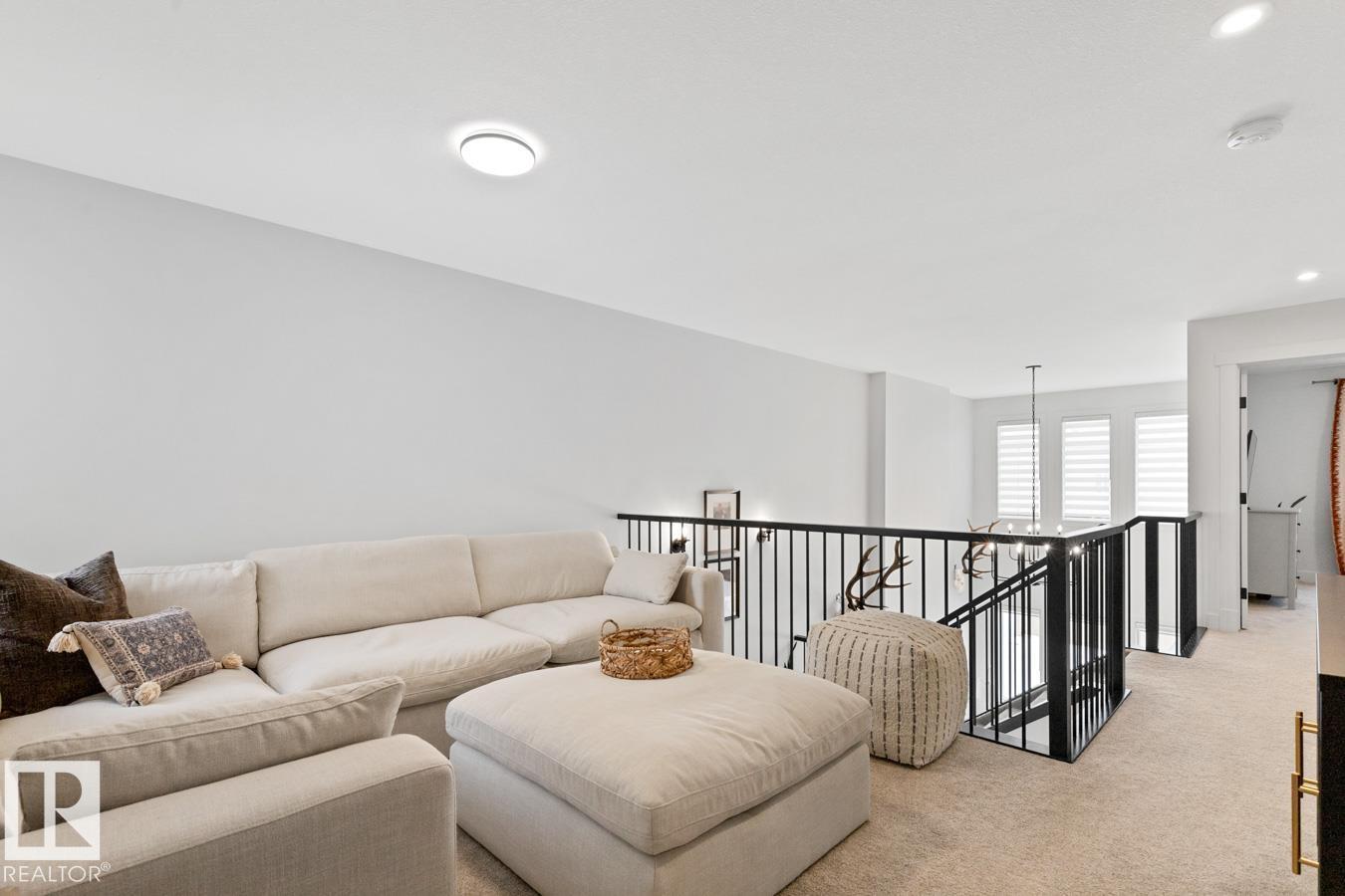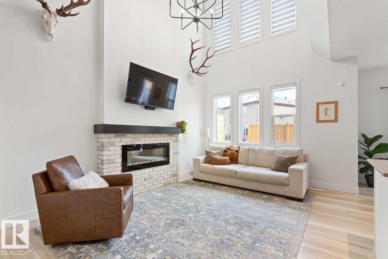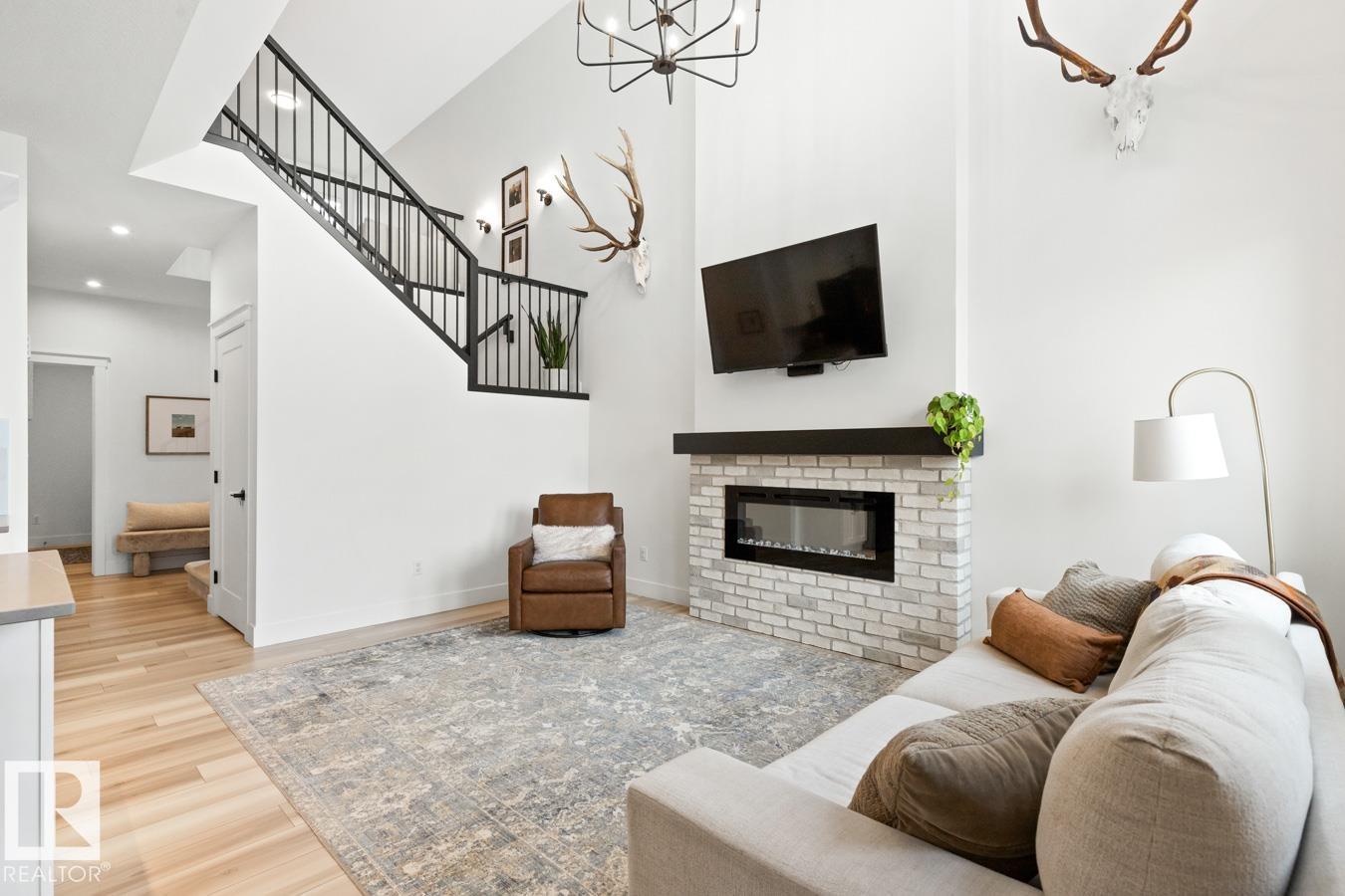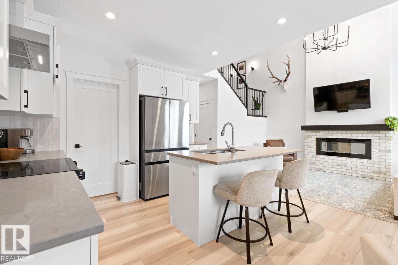 This IMMACULATE, SHOWSTOPPING home offers A/C, 4 bedrooms (including one on the main floor) & 3 full baths, the perfect blend of style and function. Step inside this Salerno model by Montorio Homes to discover vinyl plank flooring throughout a bright, open-concept layout. The stunning kitchen showcases white cabinetry, S/S appliances, walk-through pantry & quartz island overlooking the dining area and living room, where soaring two-storey windows and a cozy fireplace create an unforgettable focal point. A main floor bedroom & 3-piece bath add exceptional flexibility for guests or multigenerational living. Upstairs, enjoy a spacious bonus room, a king-sized primary retreat with walk-in closet & luxurious ensuite, plus two generous bedrooms, full bath & convenient laundry room. As you go to the basement their is a side entrance, basement is unspoiled. Pet and smoke free. Fenced with an entertaining-sized deck. Located close to parks, trails, schools & shopping. This BETTER-THAN-NEW home truly shines! (id:63190)