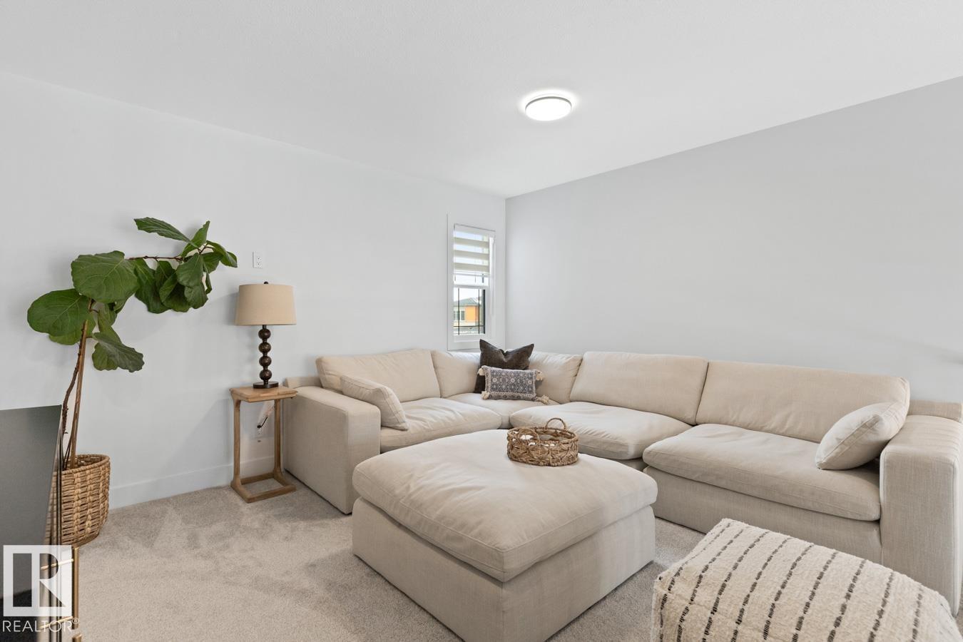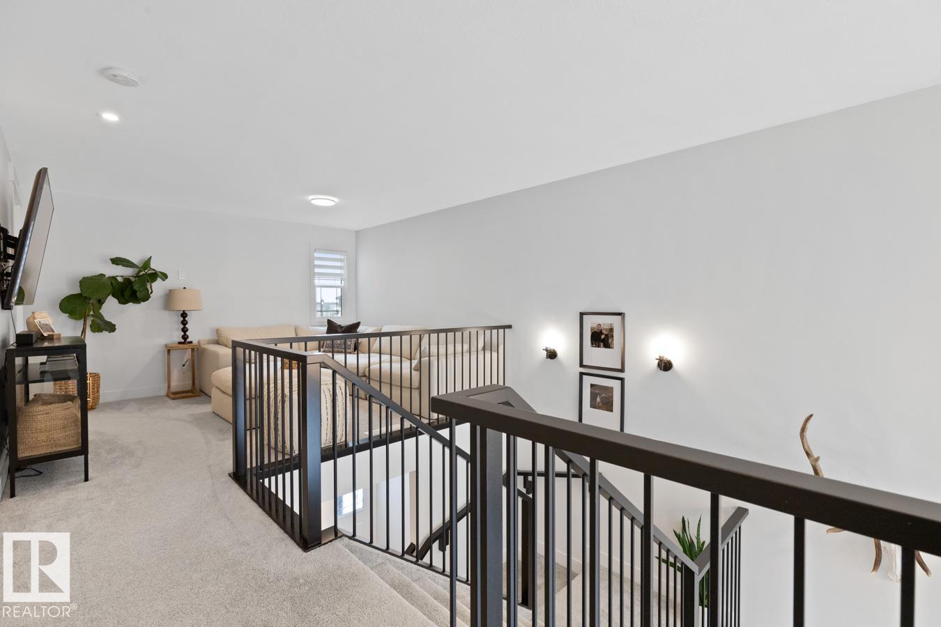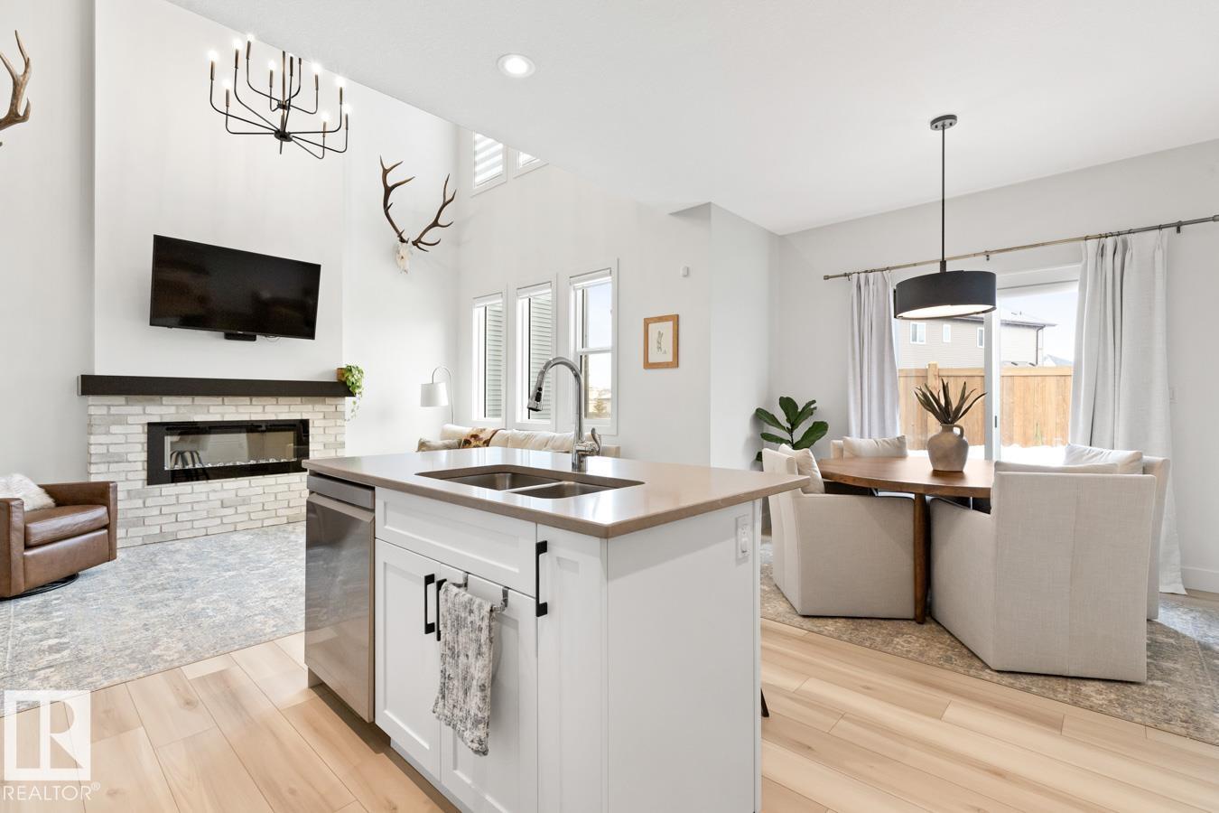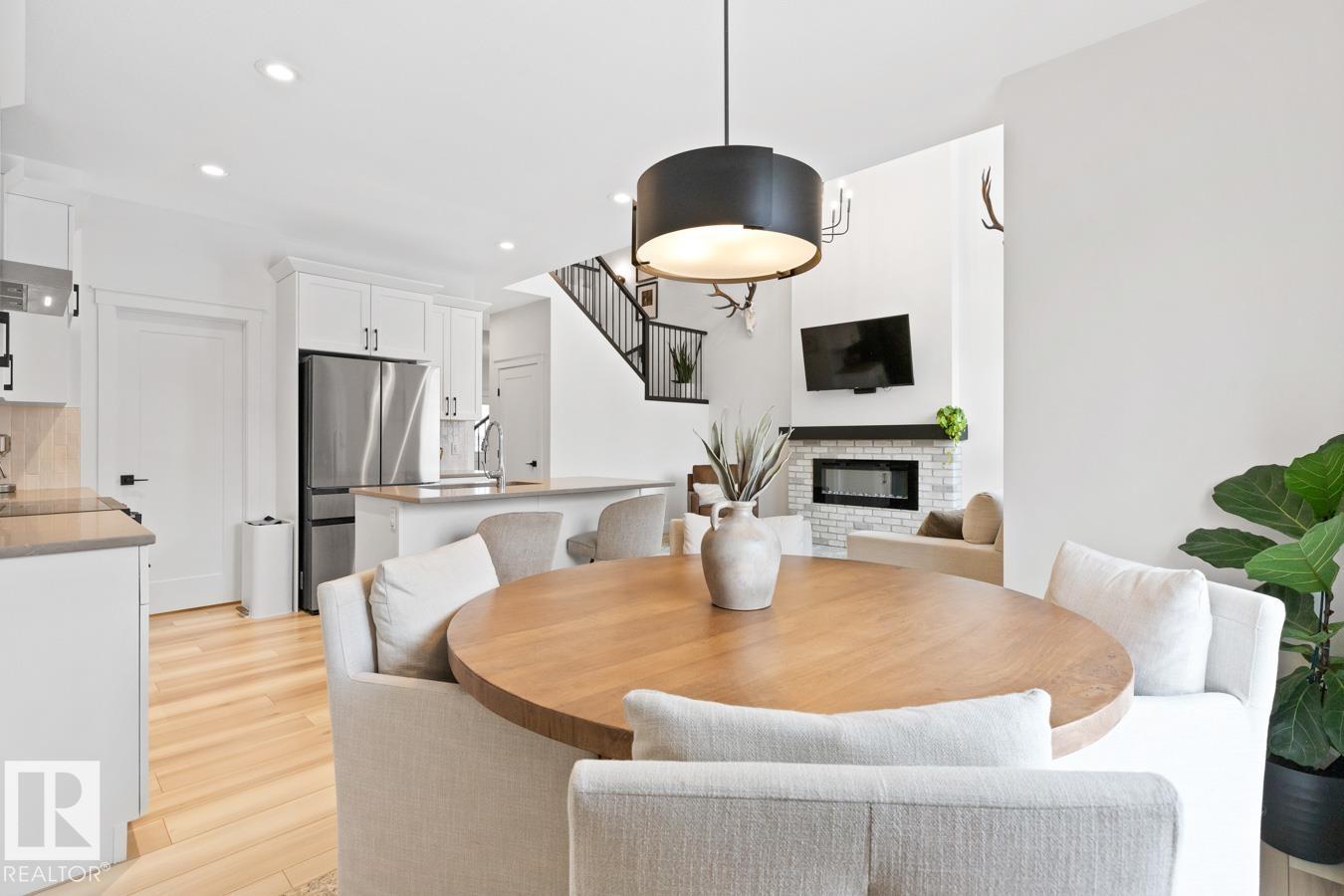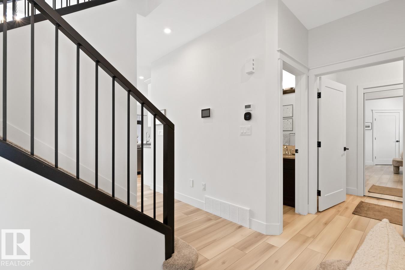This IMMACULATE, SHOWSTOPPING home offers A/C, 4 bedrooms (including one on the main floor) & 3 full baths, the perfect blend of style and function. Step inside this Salerno model by Montorio Homes to discover vinyl plank flooring throughout a bright, open-concept layout. The stunning kitchen showcases white cabinetry, S/S appliances, walk-through pantry & quartz island overlooking the dining area and living room, where soaring two-storey windows and a cozy fireplace create an unforgettable focal point. A main floor bedroom & 3-piece bath add exceptional flexibility for guests or multigenerational living. Upstairs, enjoy a spacious bonus room, a king-sized primary retreat with walk-in closet & luxurious ensuite, plus two generous bedrooms, full bath & convenient laundry room. As you go to the basement their is a side entrance, basement is unspoiled. Pet and smoke free. Fenced with an entertaining-sized deck. Located close to parks, trails, schools & shopping. This BETTER-THAN-NEW home truly shines! (id:63190)